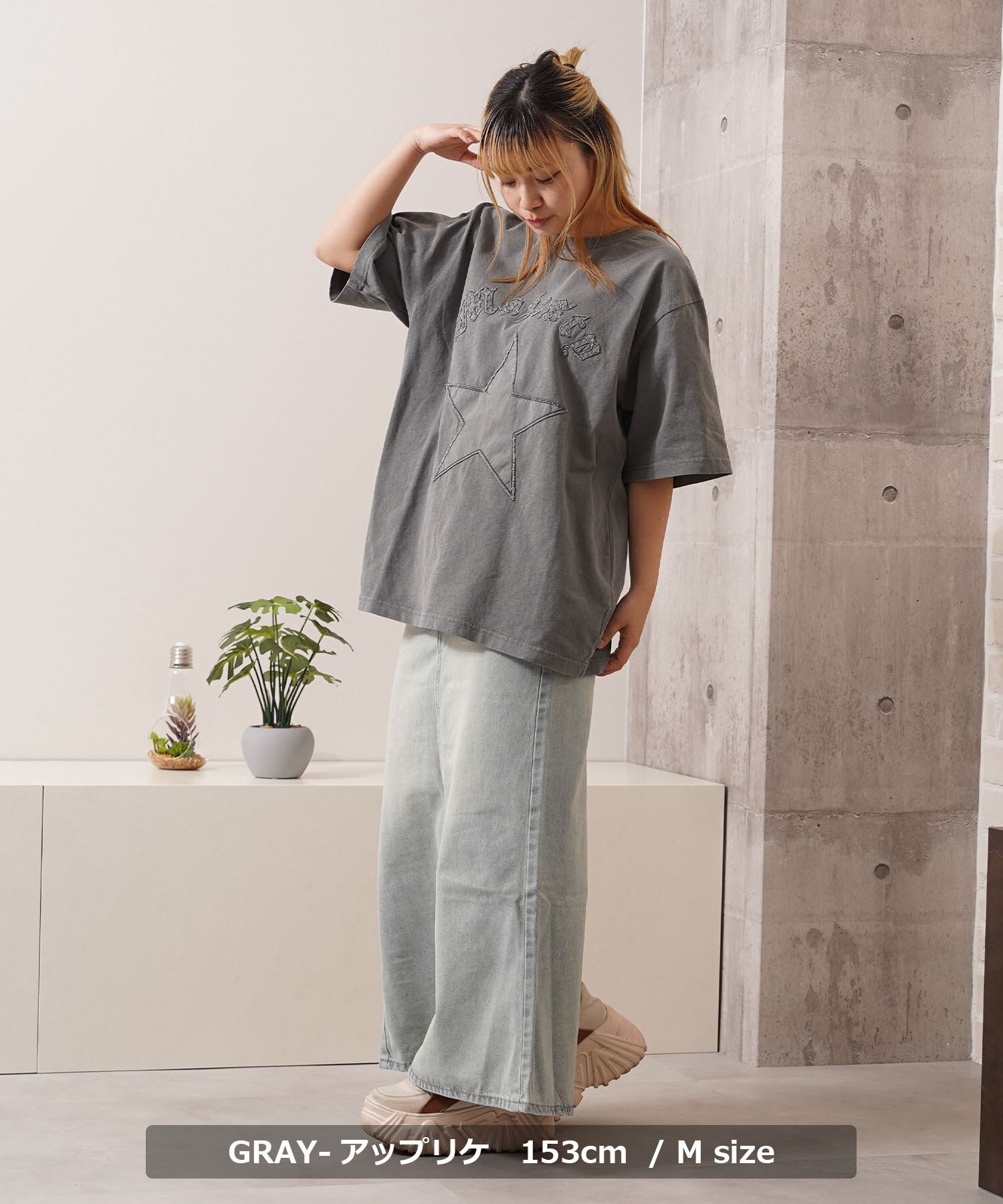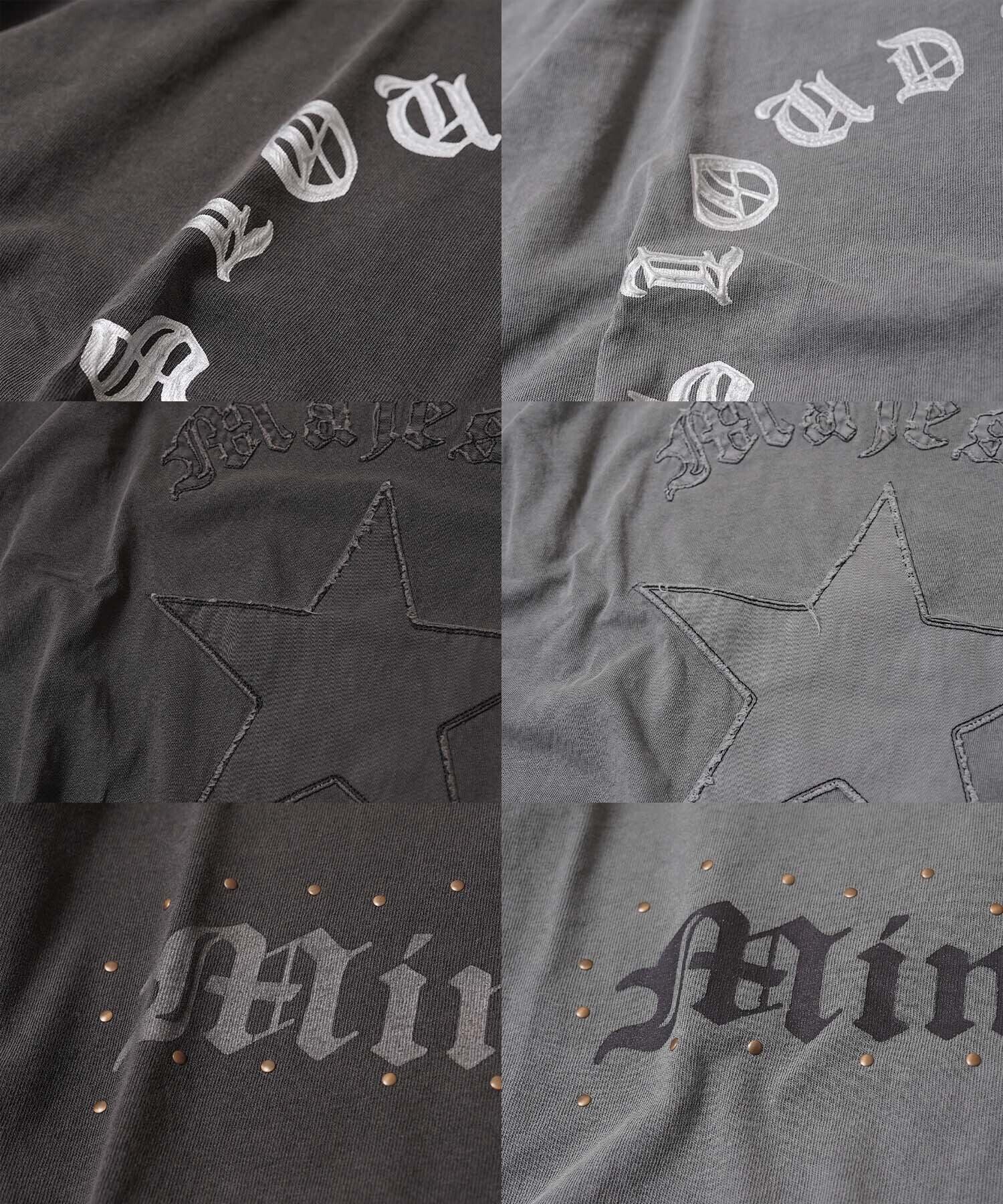 BLACK-アップリケ/GRAY-アップリケフリンジが特徴のアップリケ刺繍で表現したロゴ+スターモチーフ。