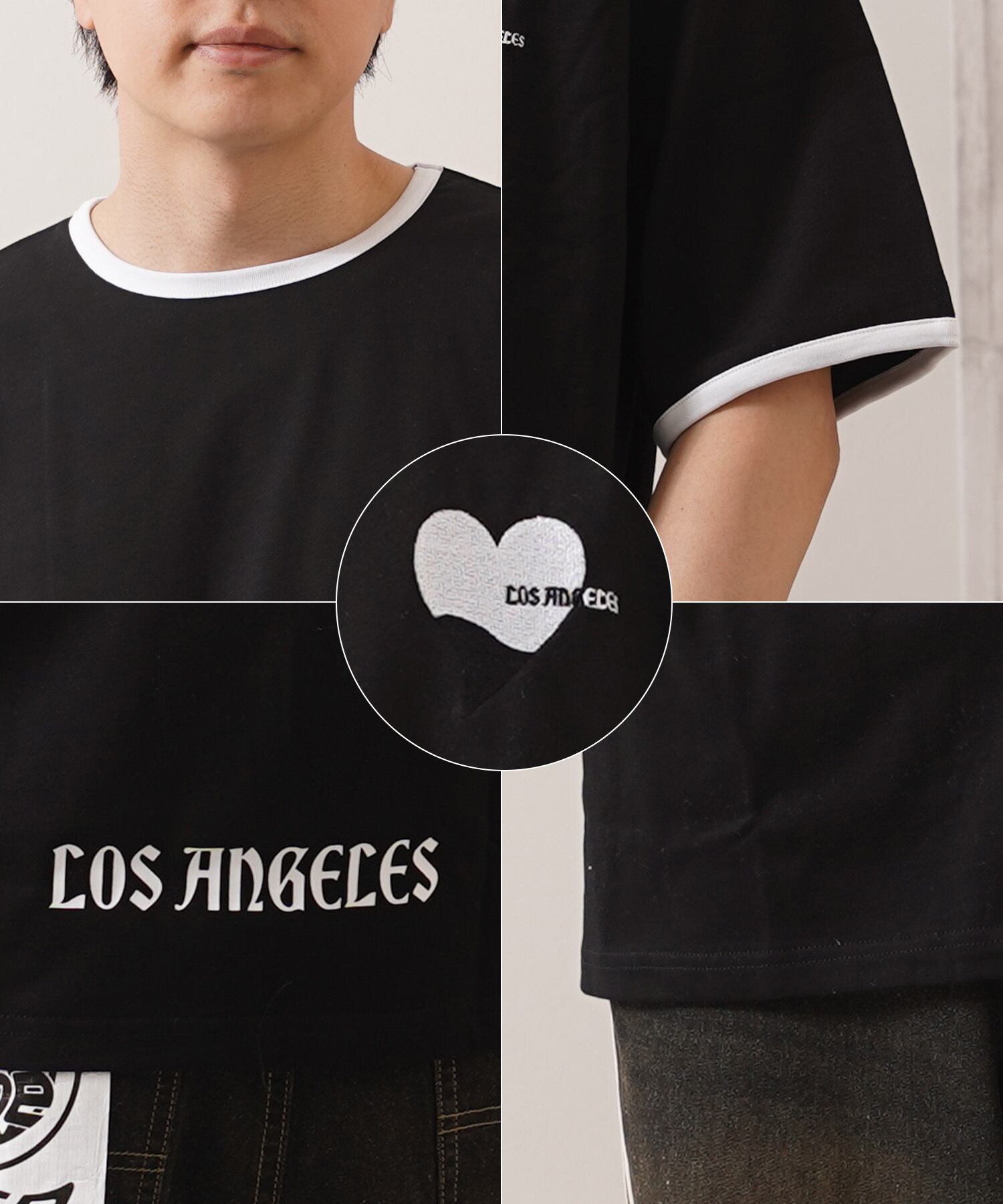 ◆ハート刺繍 リンガーネックTシャツ◆ng-55215