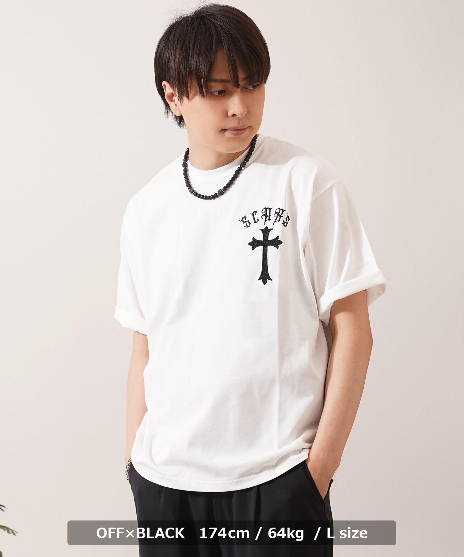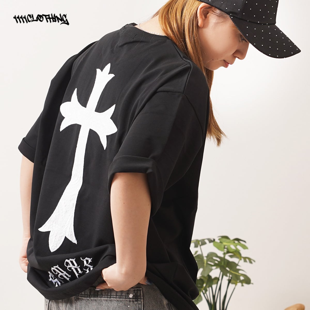 バックプリント クロス 十字架 クール スクリプト アルファベット 英語 刺繍 ペーズリー アップリケ 白Tシャツ 黒Tシャツ シャツ Tシャツ カットソー オーバーサイズ ワンポイント 夏 夏服 新作