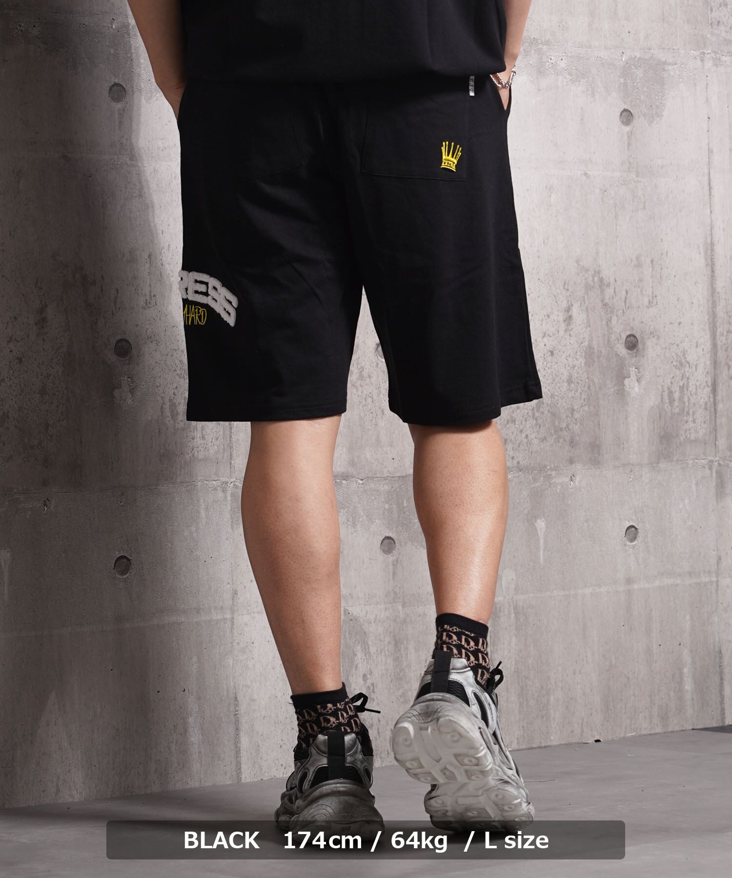 ショーツ ショートパンツ ハーフパンツ スウェットパンツ スエットパンツ ワンポイント ヒップポケット ピスポケット サガラ刺繍 刺繍 夏 夏服 新作 2025年SS 王冠 クラウン アルファベット 英語