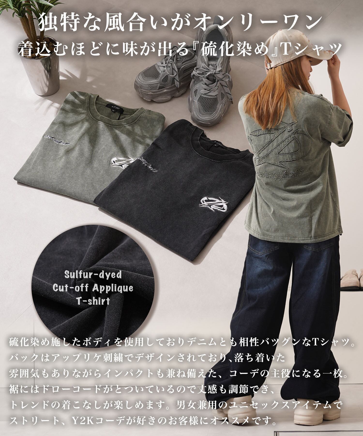 ◆硫化染め カットオフアップリケ Tシャツ◆ng-96225