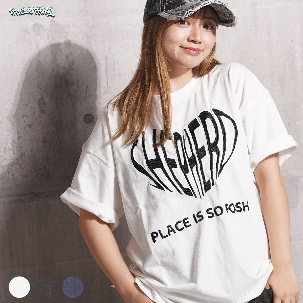 硫化染 流加染め ピグメント ピグメントTシャツ 白Tシャツ ハート ハートロゴ ロゴ アルファベット 英語 キュート 刺繍 Tシャツ カットソー 夏 夏服 2025年SS 新作 オーバーサイズ