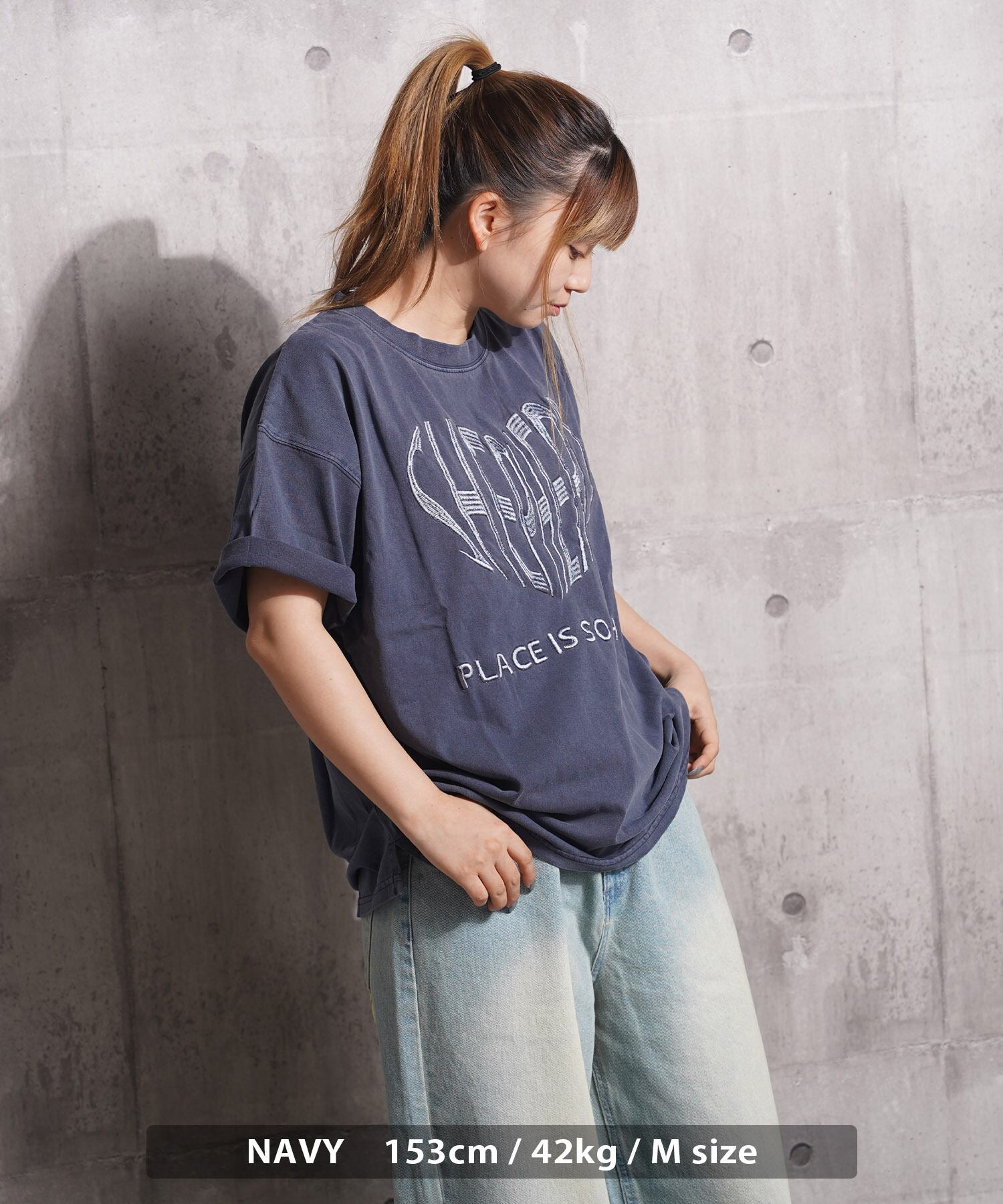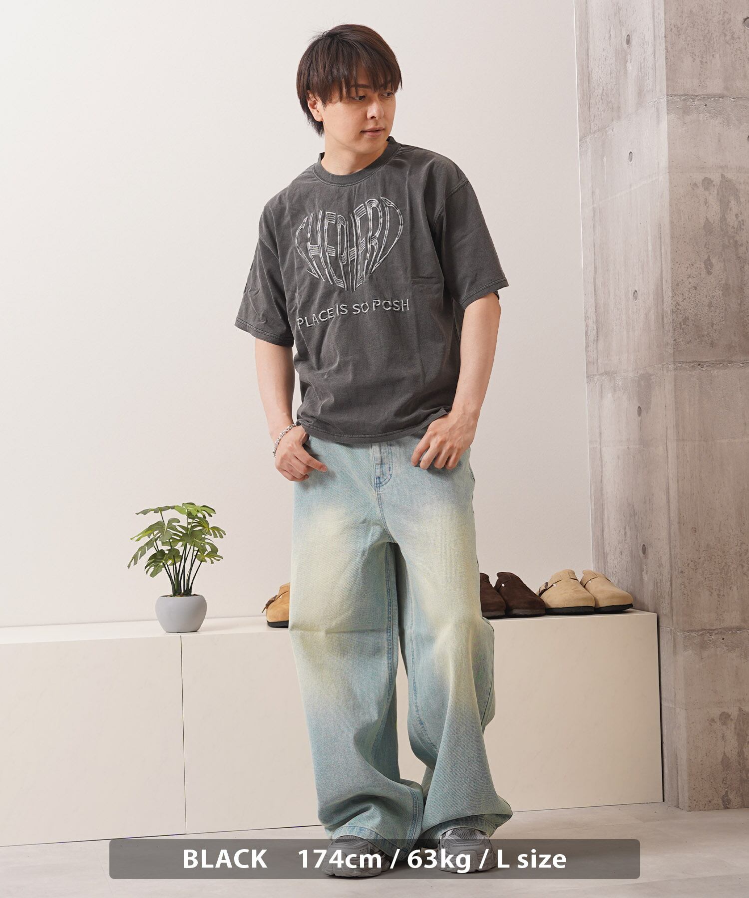 ◆ハート刺繍 ピグメントTシャツ◆ms-8845-122