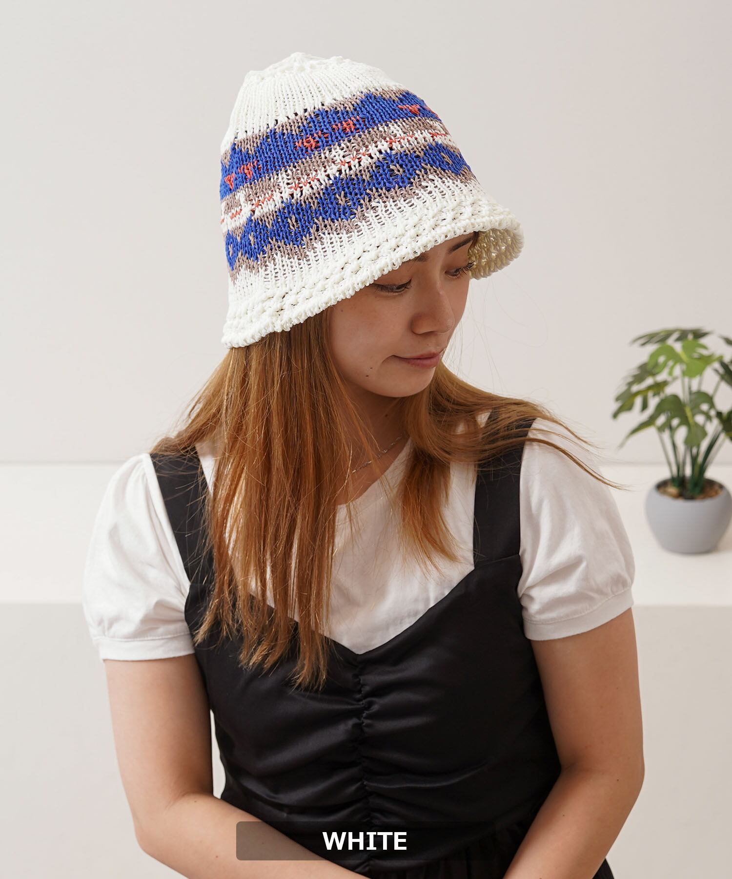 ニットハット バケットハット バケハ ニット帽 ニットキャップ クロシェハット ハット 帽子 オールダウン 新作 柄 ネイティブ柄 部族柄 トライバル柄 エスニック柄