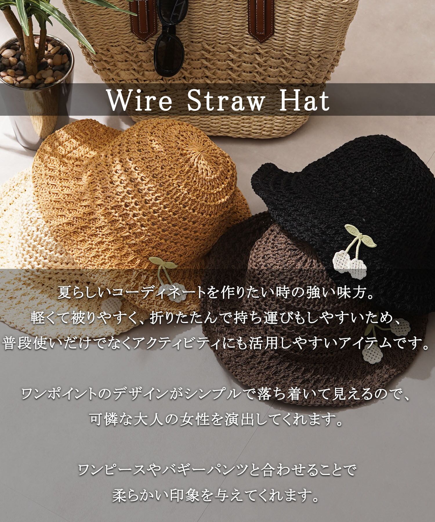 ストローハット ハット 麦わら帽子 帽子 ワイヤー 麦稈帽子 新作