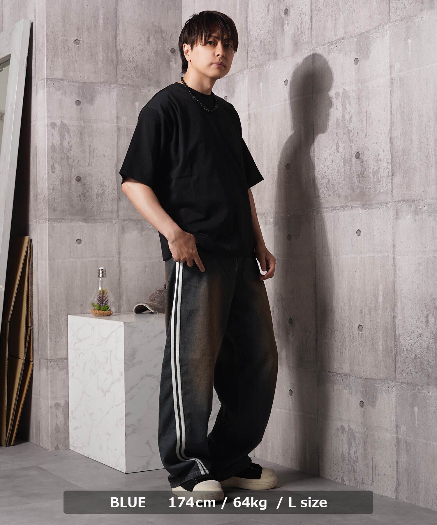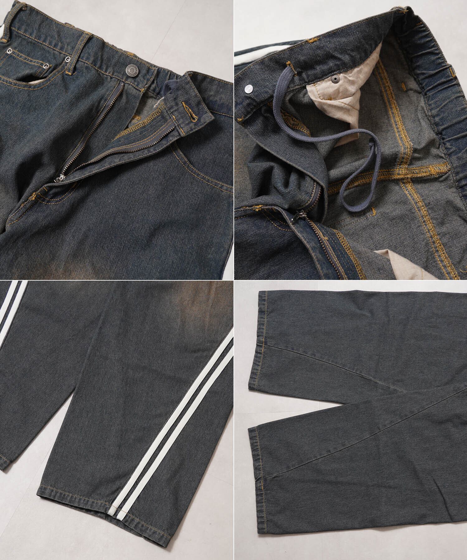 ラインパンツ ラインデニム ツーライン ツイストライン ワイドパンツ ワイドデニム バギーパンツ バギーデニム パンツ デニム ジーンズ ドローコード 紐 紐パン バルーンパンツ バルーンデニム
