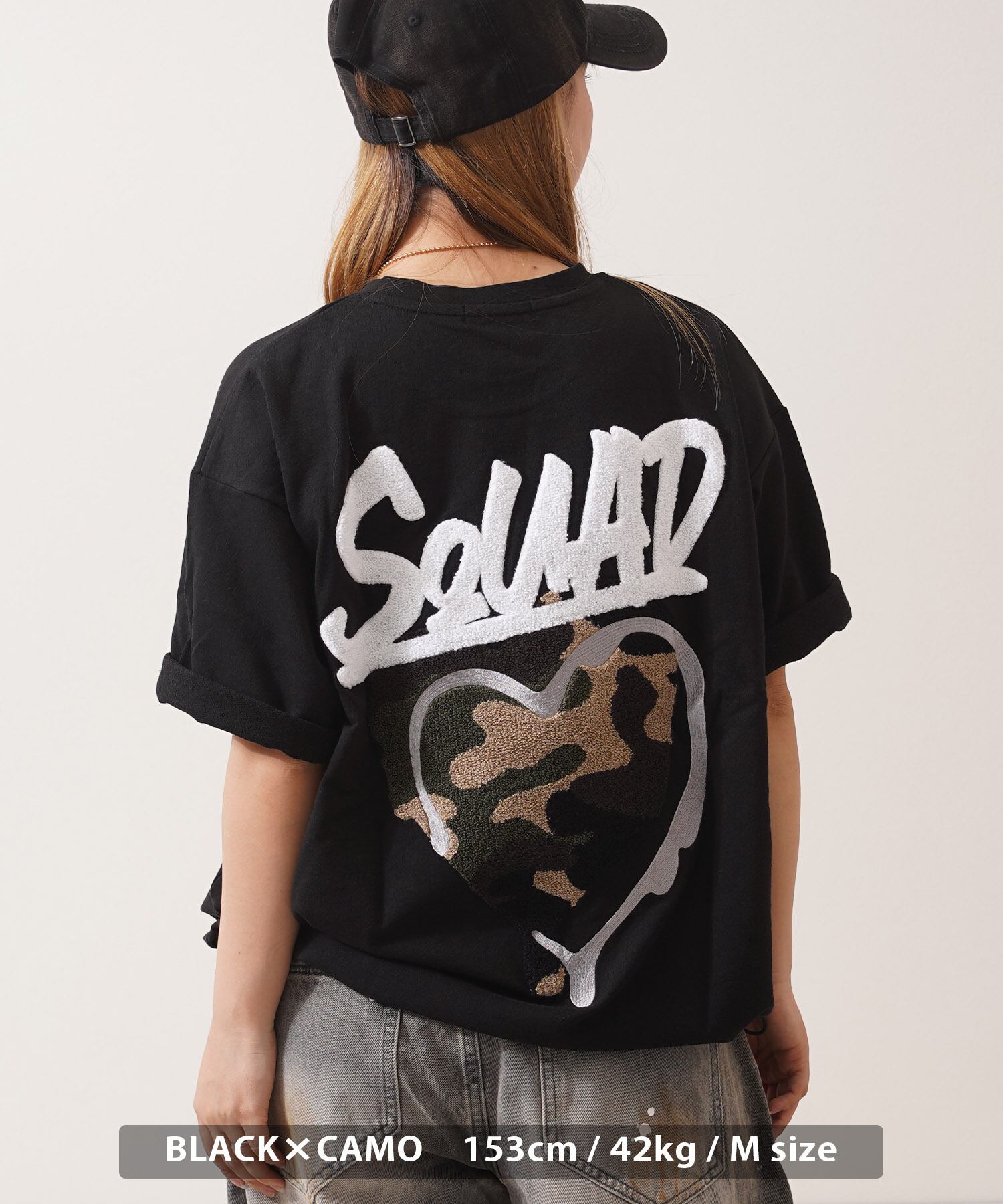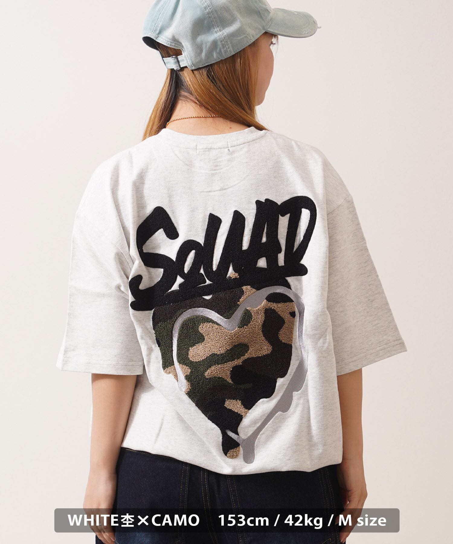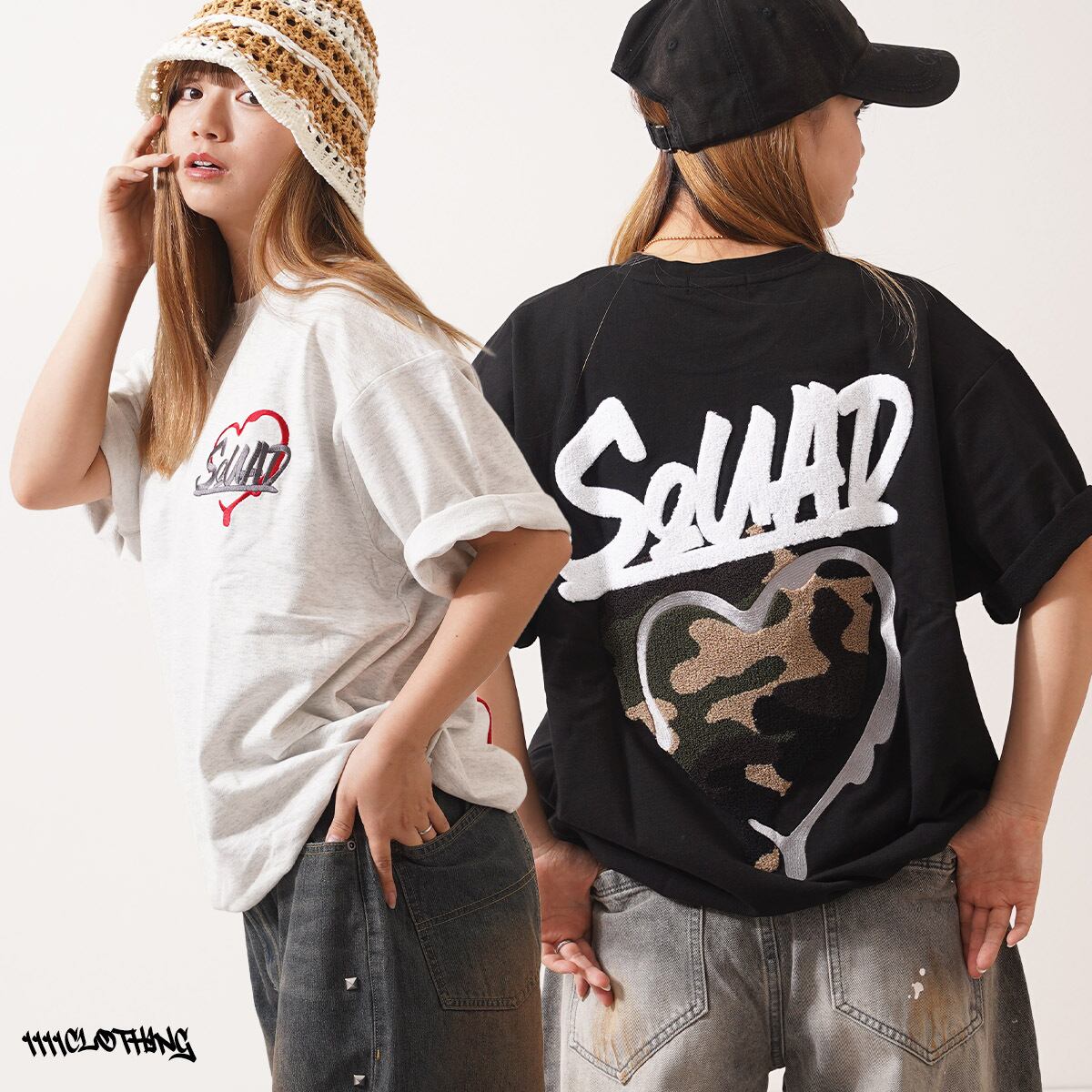 ハート ハートロゴ 刺繍 サガラ刺繍 白Tシャツ 黒Tシャツ 迷彩 カモフラージュ カモ カットソー 夏 夏服 新作 セットアップ スウェット スエット ラフ着 ドローコード