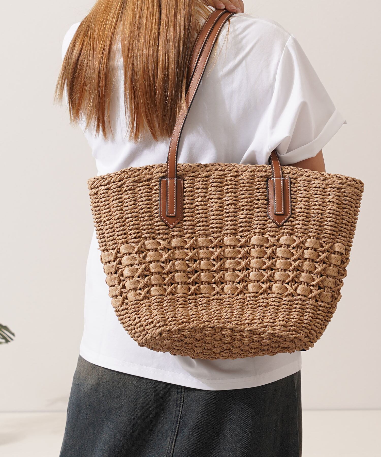 軽くて丈夫なペーパー素材のカゴバッグ。