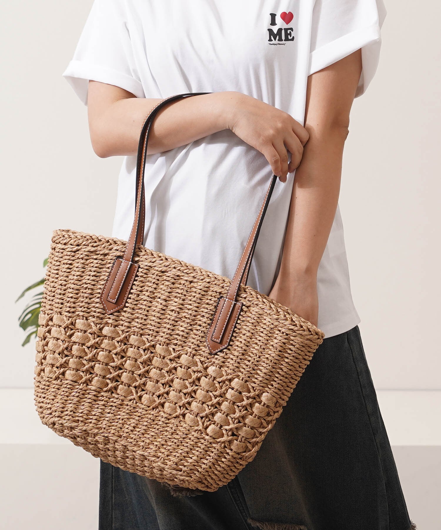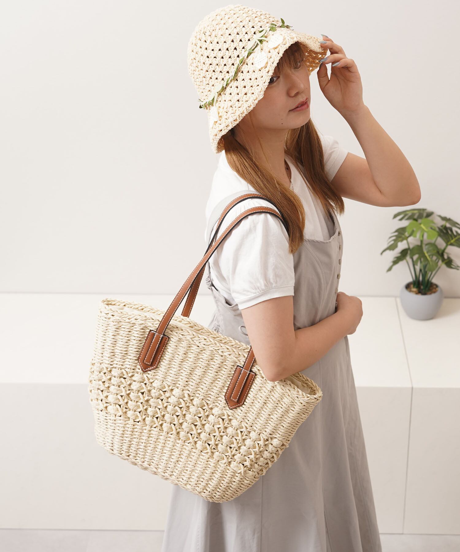 春夏ムードにピッタリなカゴバッグは、季節感のあるコーディネートに仕上げてくれます。