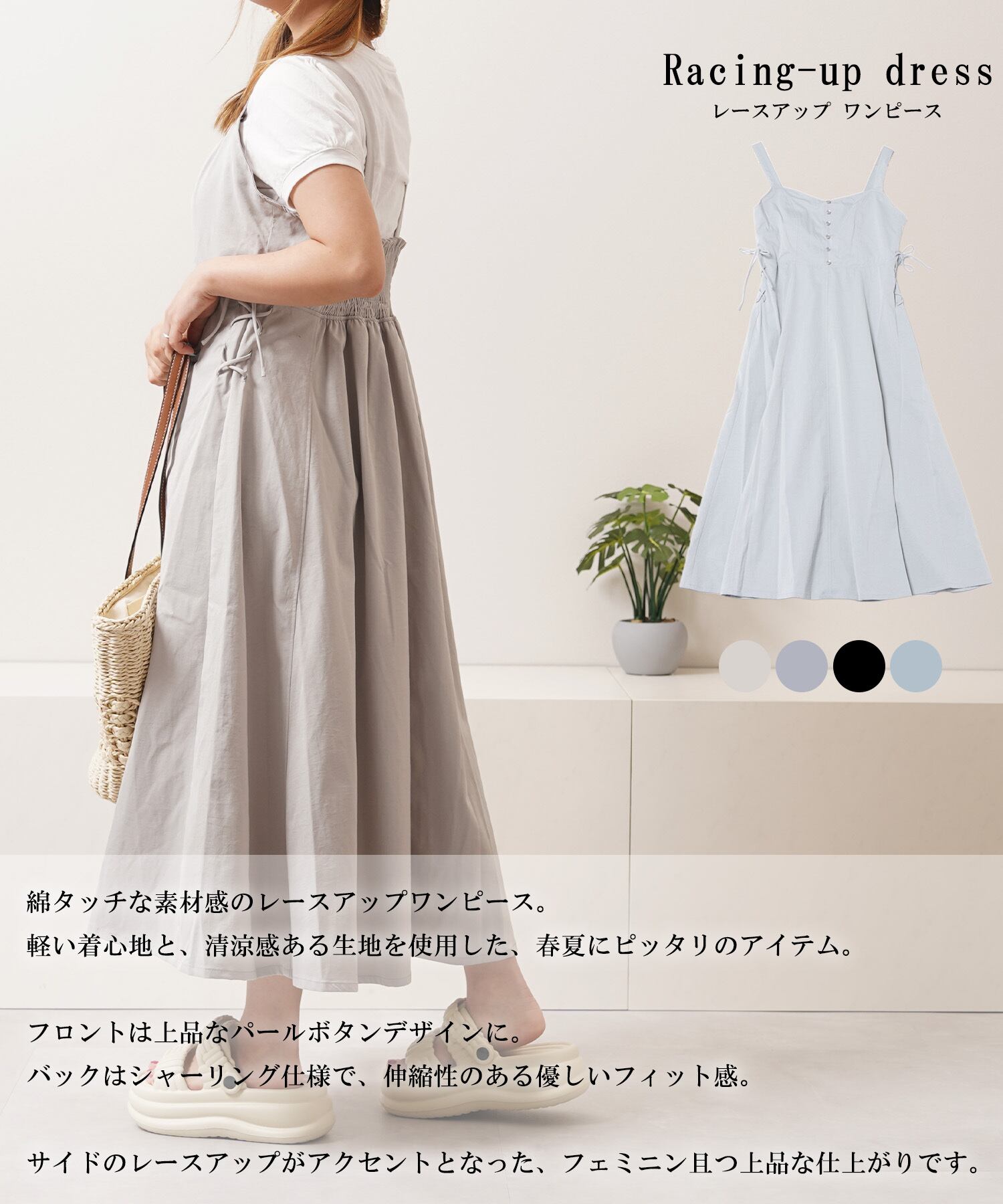 サイドのレースアップがアクセントとなった、フェミニン且つ上品な仕上がりです。