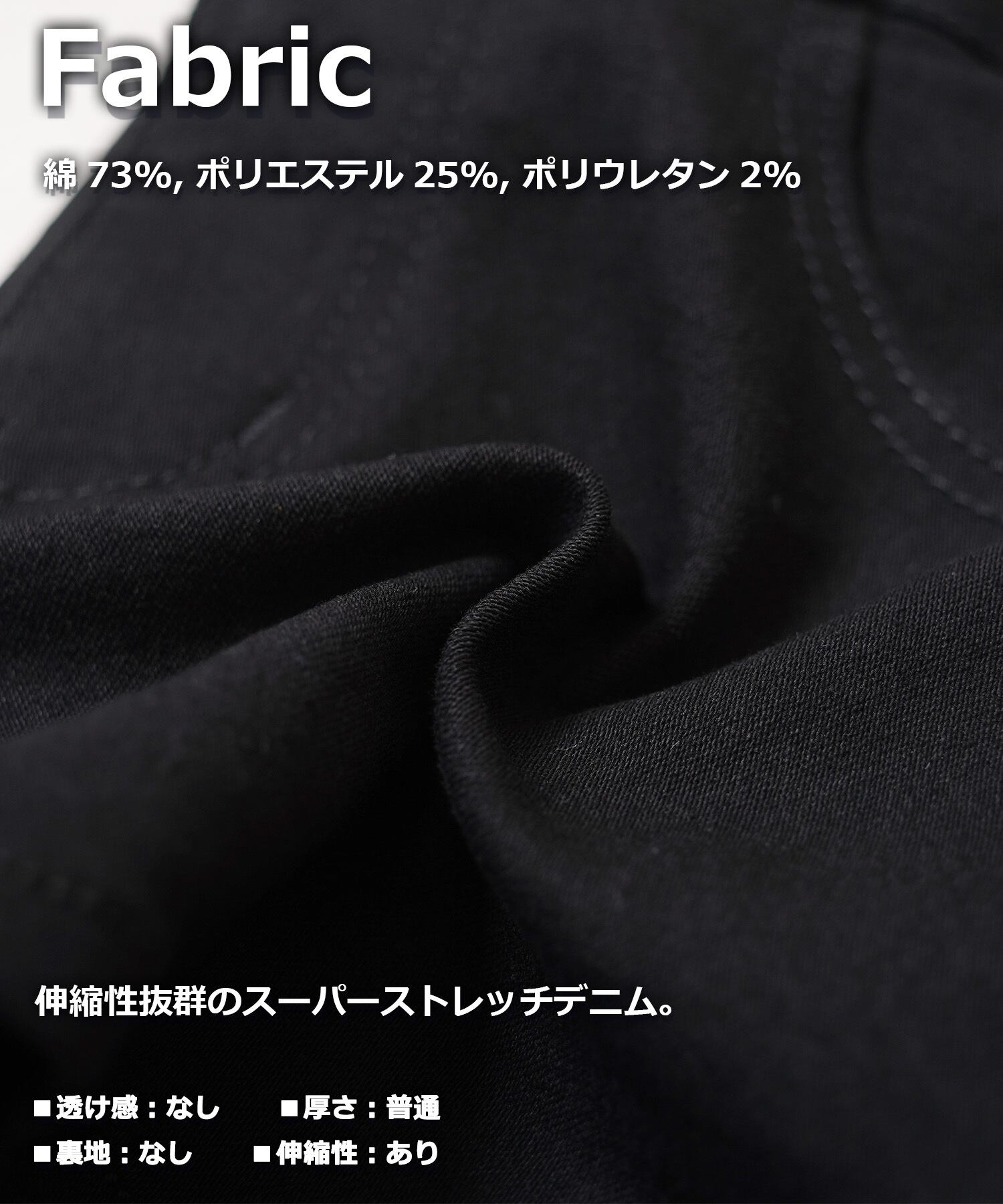 綿73%, ポリエステル25%, ポリウレタン2%
