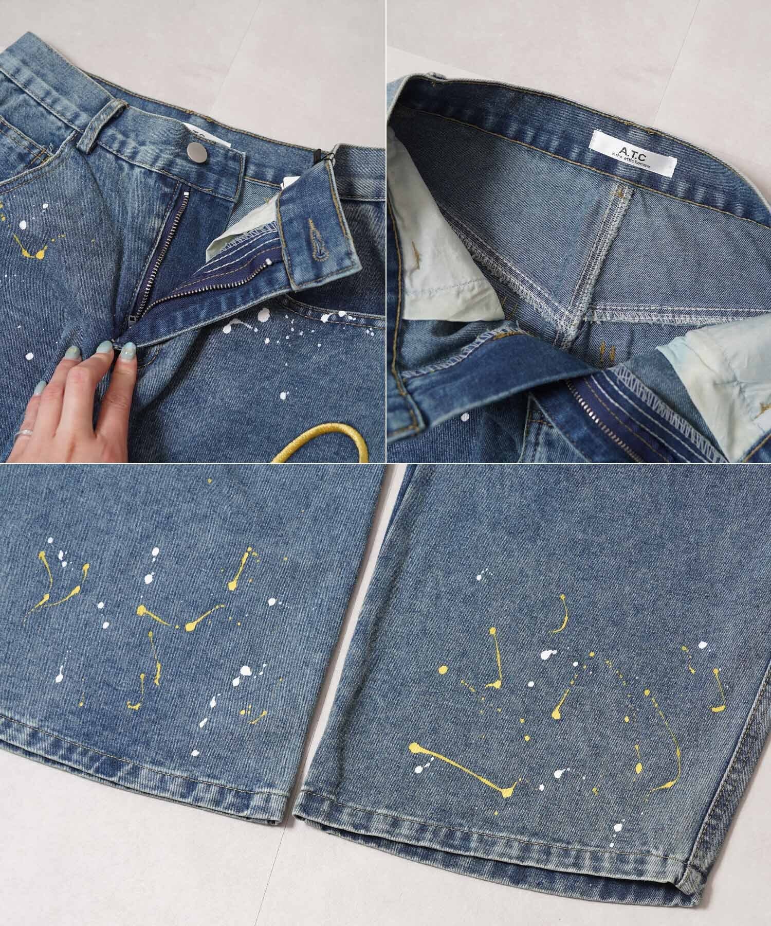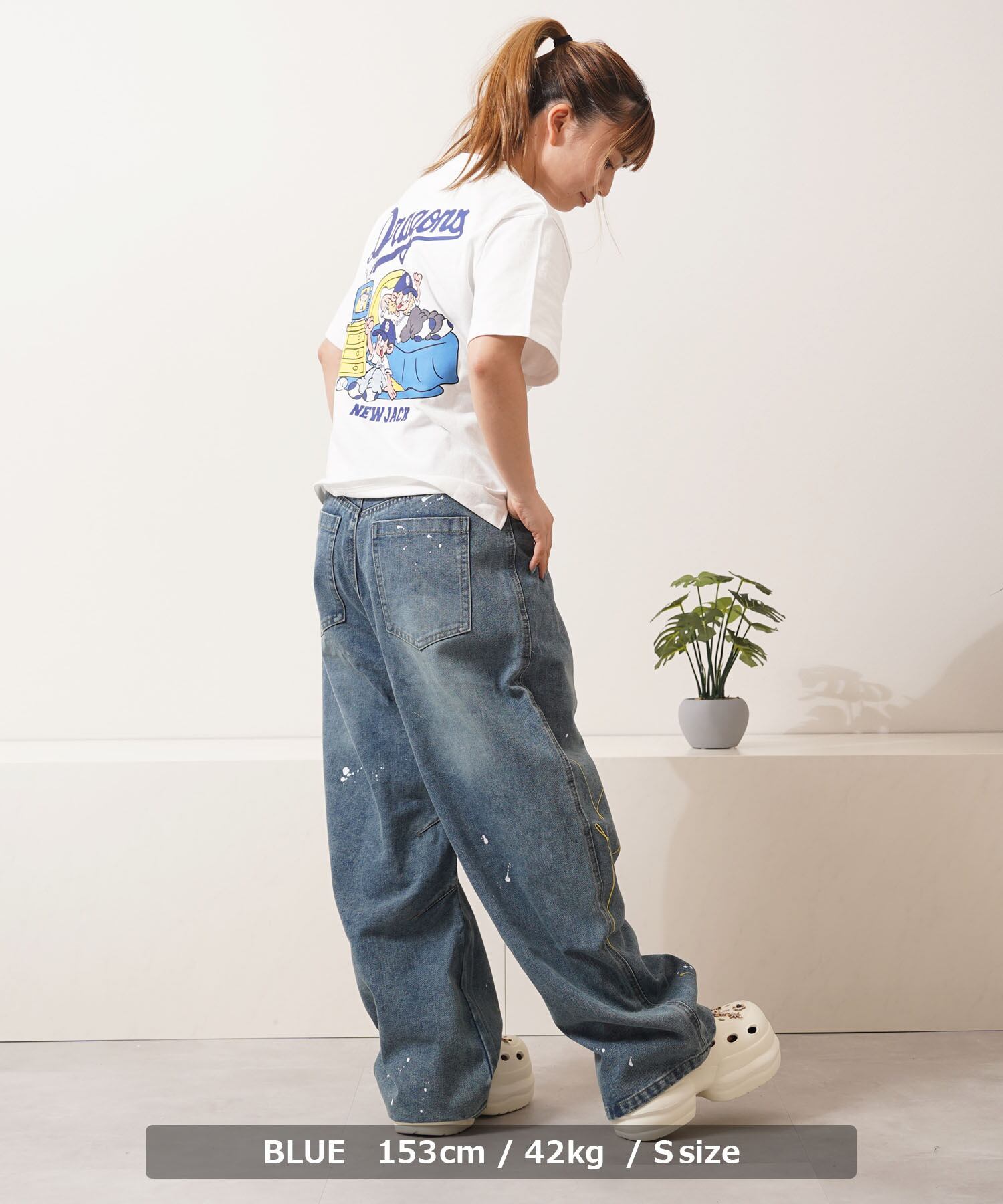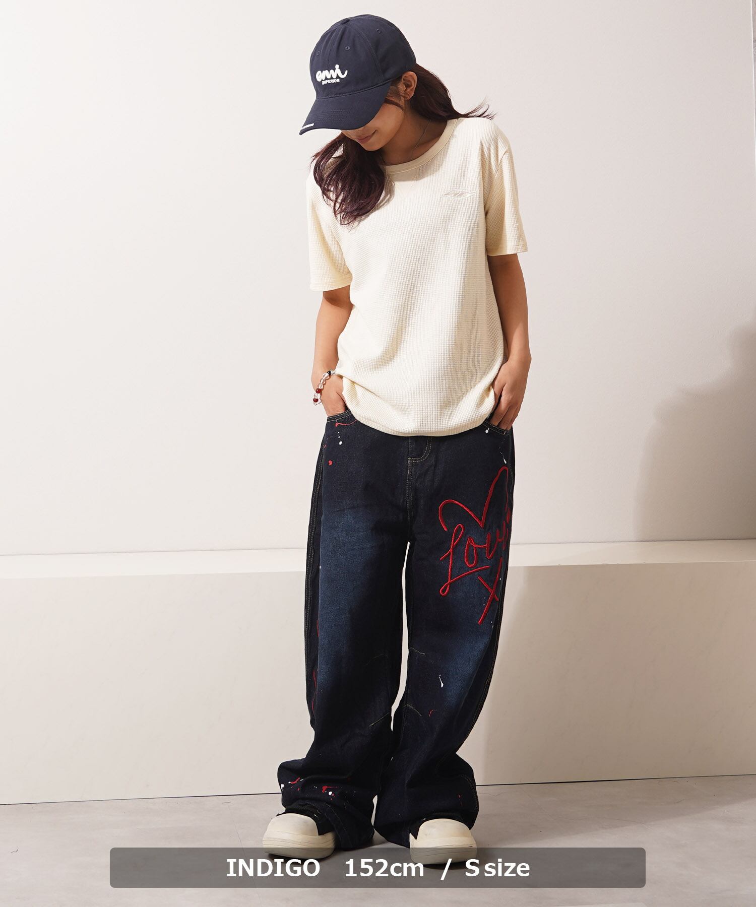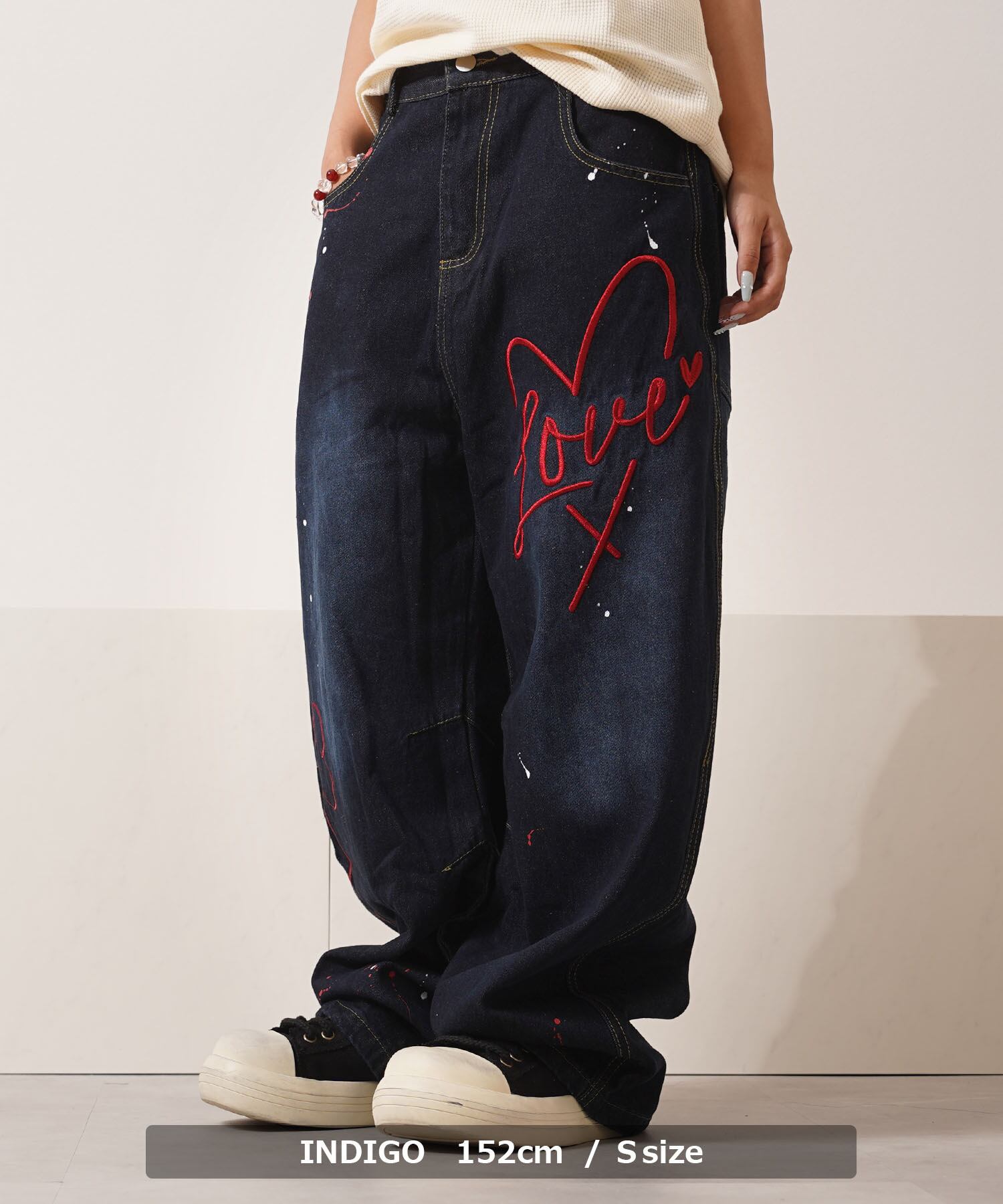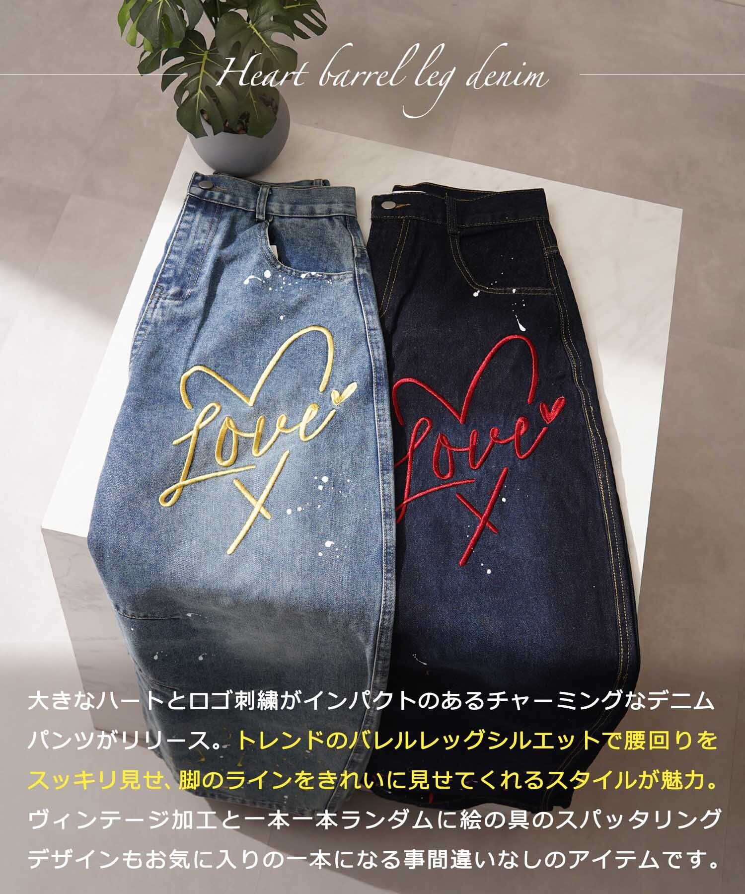 ワイドデニム デニム ジーンズ パンツ バルーンデニム バルーンパンツ 緩めデニム ハート ハートロゴ 刺繍 ペイント ペイントパンツ 新作 オールシーズン 夏 冬 夏服 秋服 冬服 可愛い