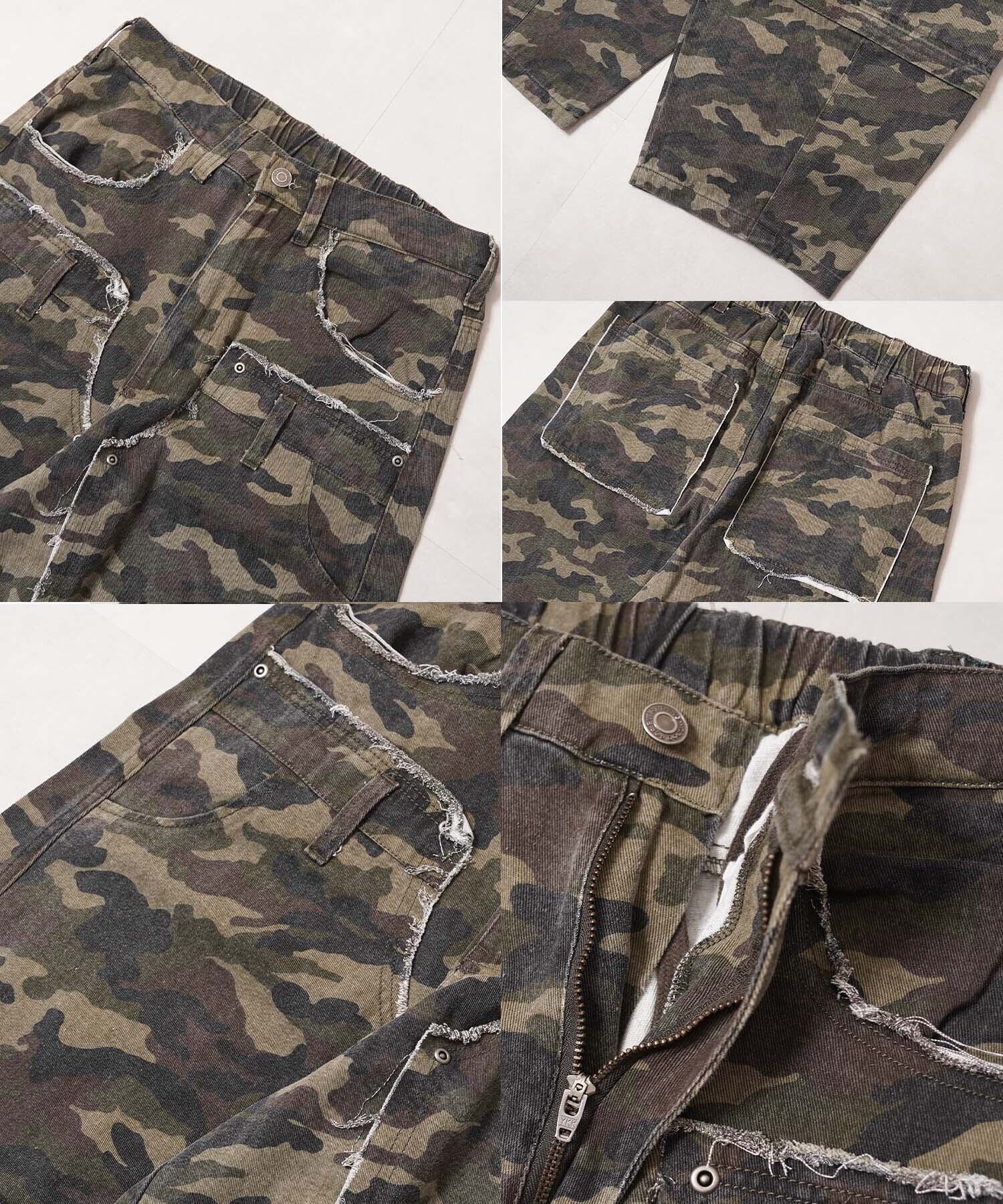 ヴィンテージ加工 ワイドデニム ジーンズ バギーパンツ カーブパンツ 緩めデニム パンツ ボトム ボトムス ピスポケット 後ろポケット 迷彩 カモ カモフラ カモフラージュ デニム 秋冬 新作 秋服 冬服