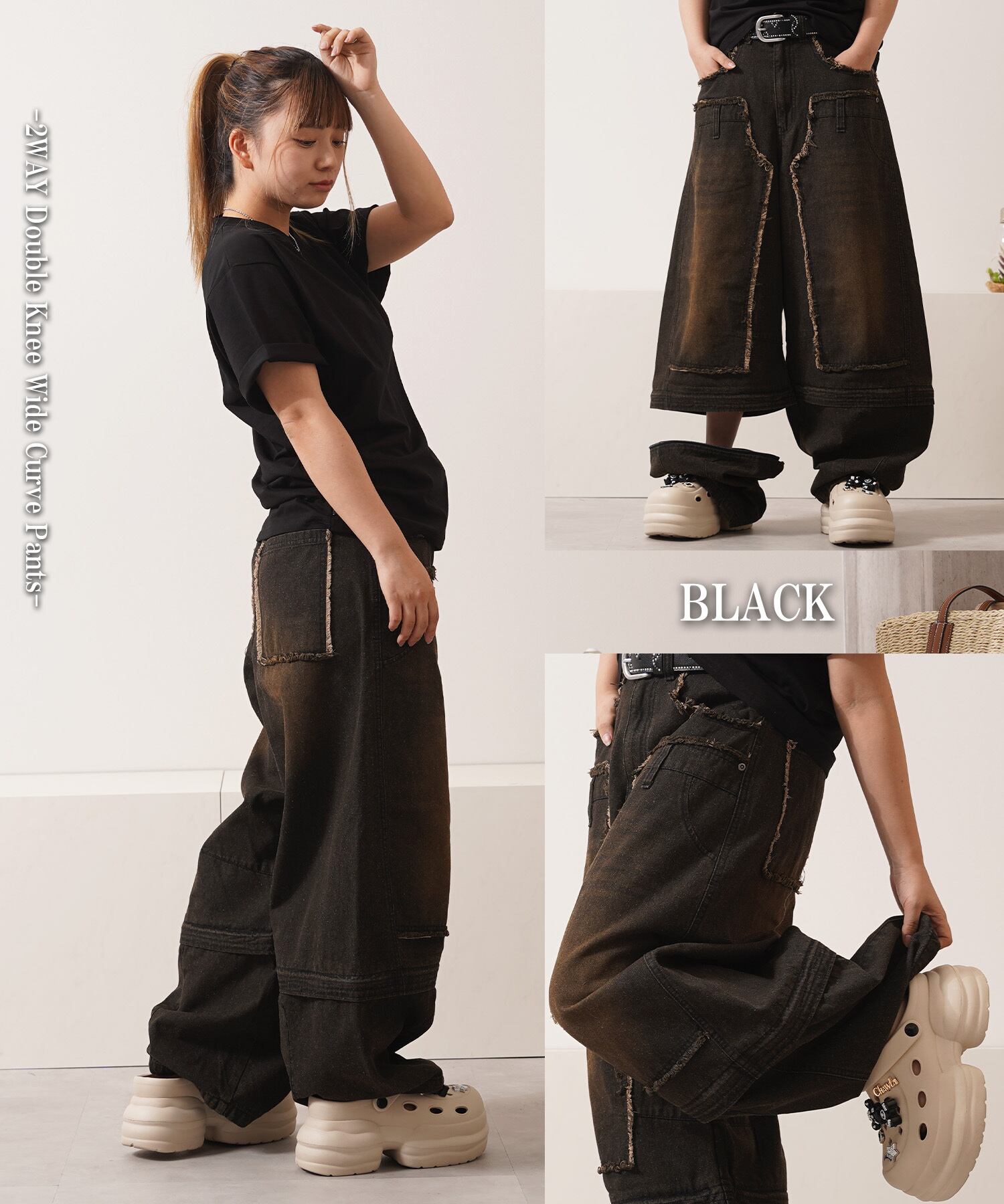 【1111clothing】2WAY Double Knee Wide Curve Pants