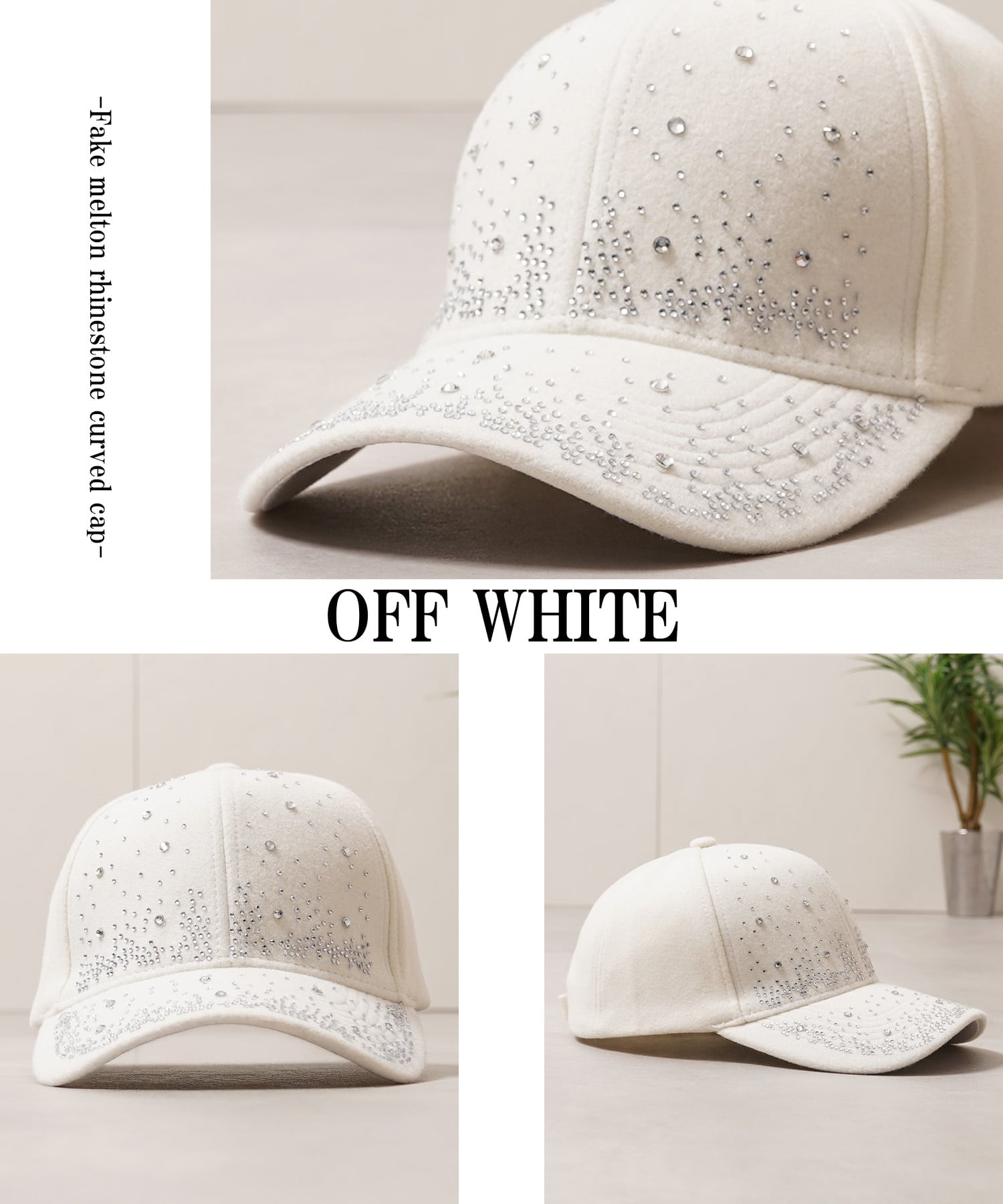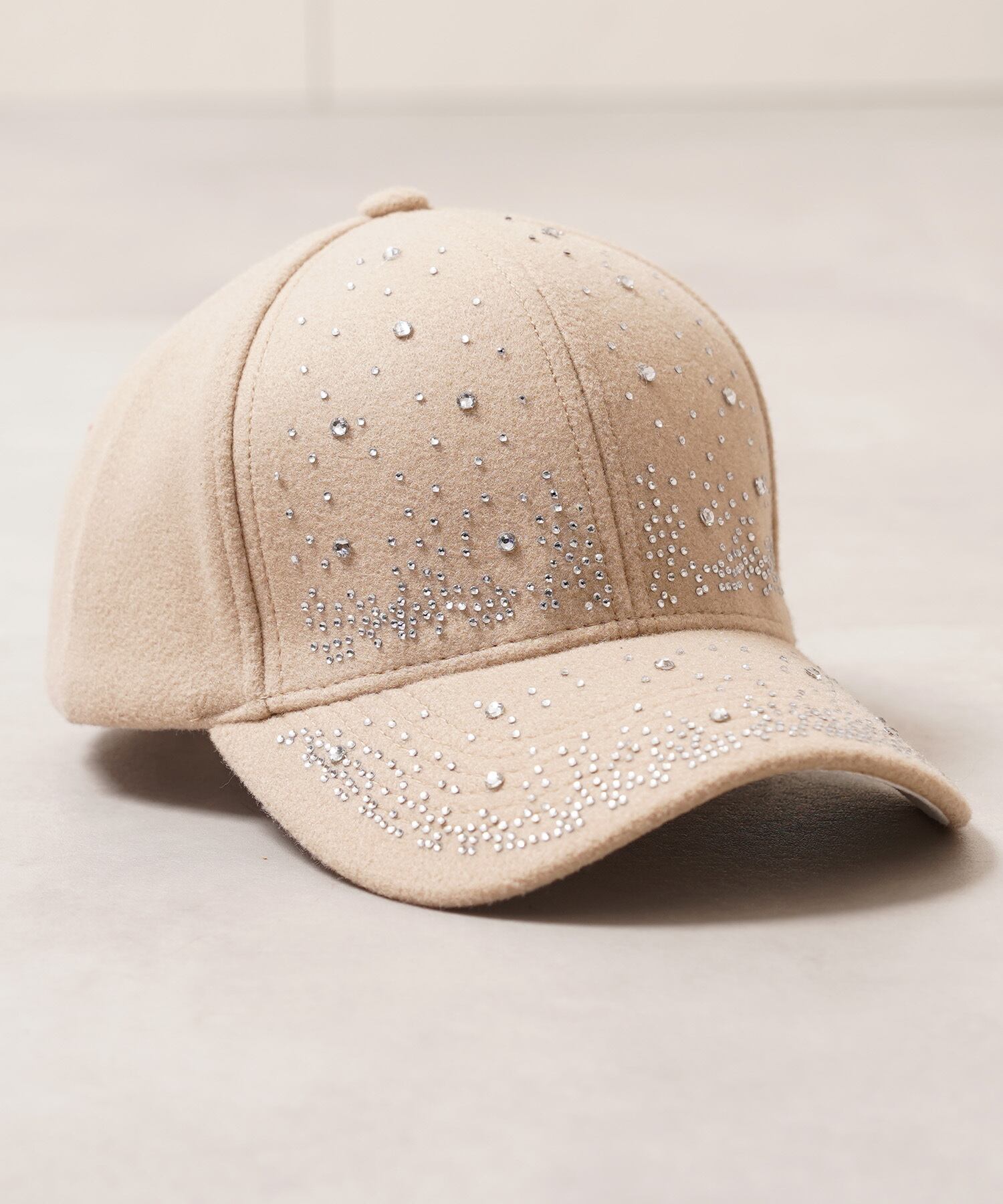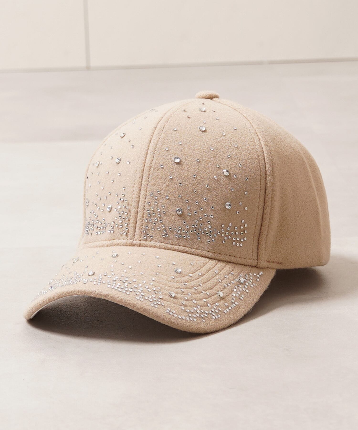 【1111clothing】Fake melton rhinestone curved cap
