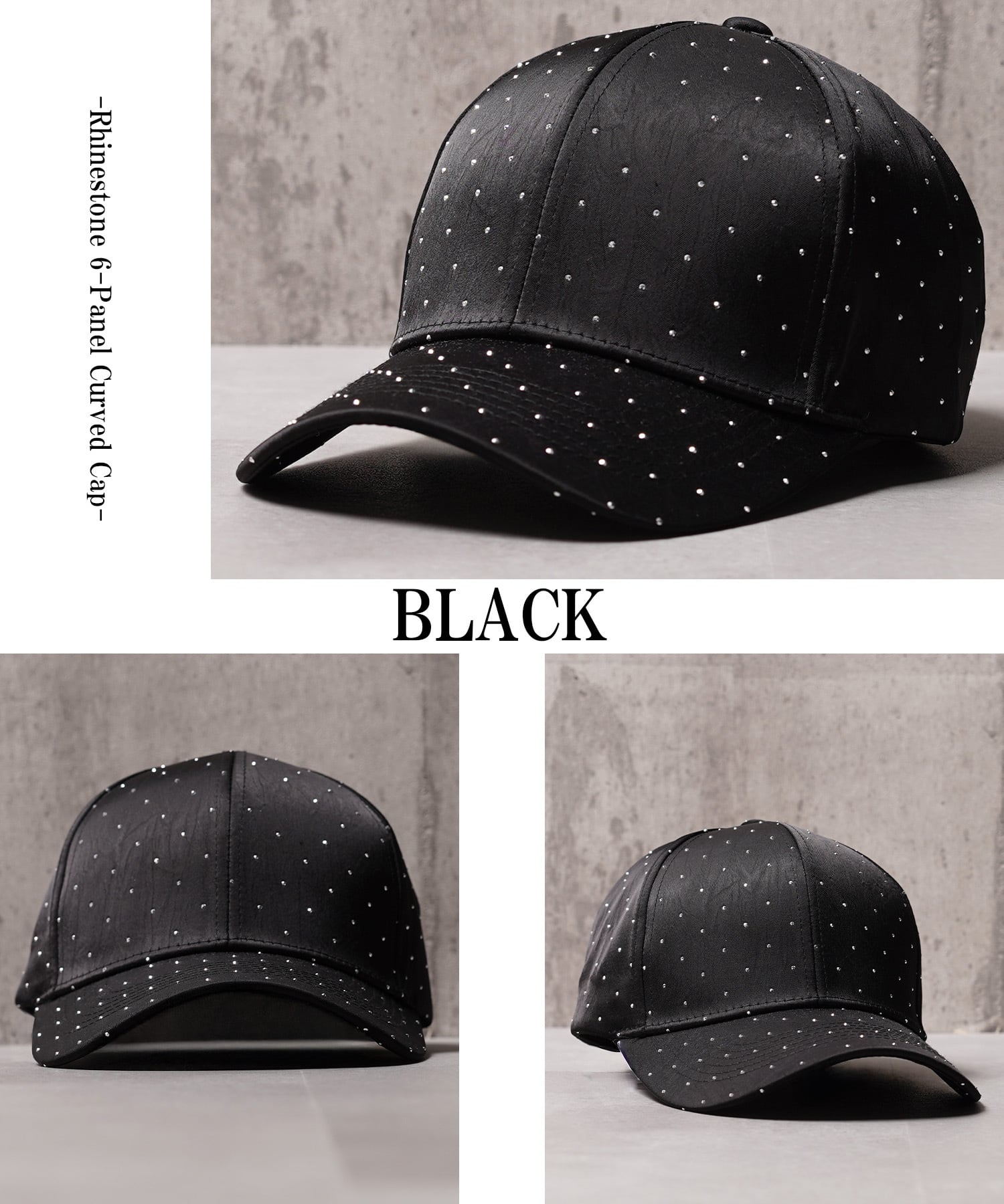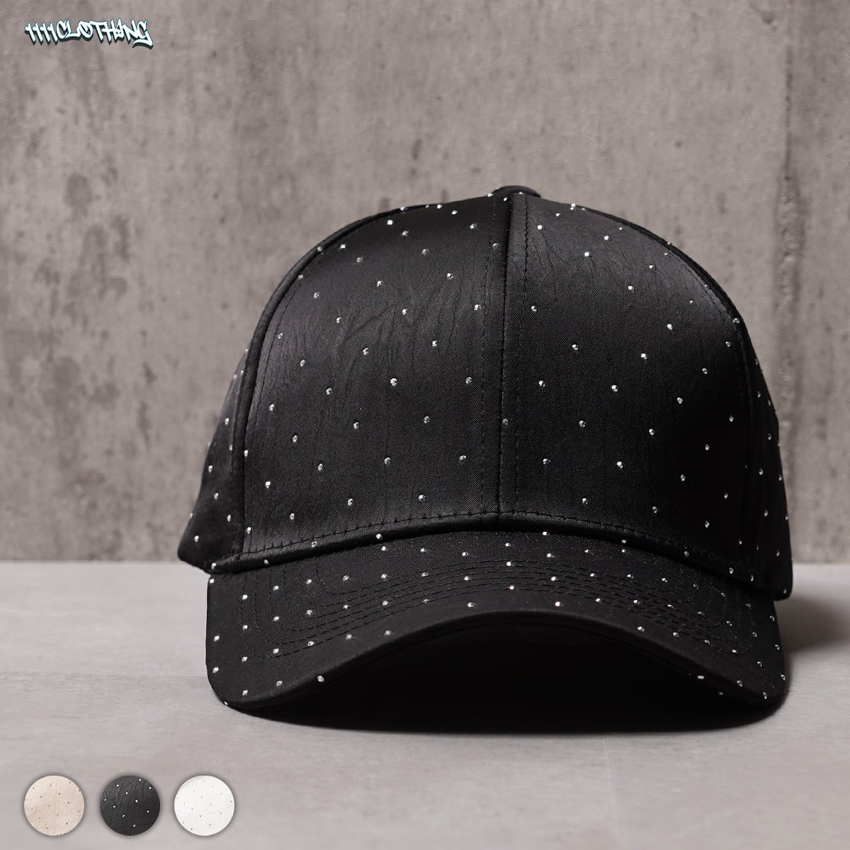 【1111clothing】Rhinestone 6-Panel Curved Cap