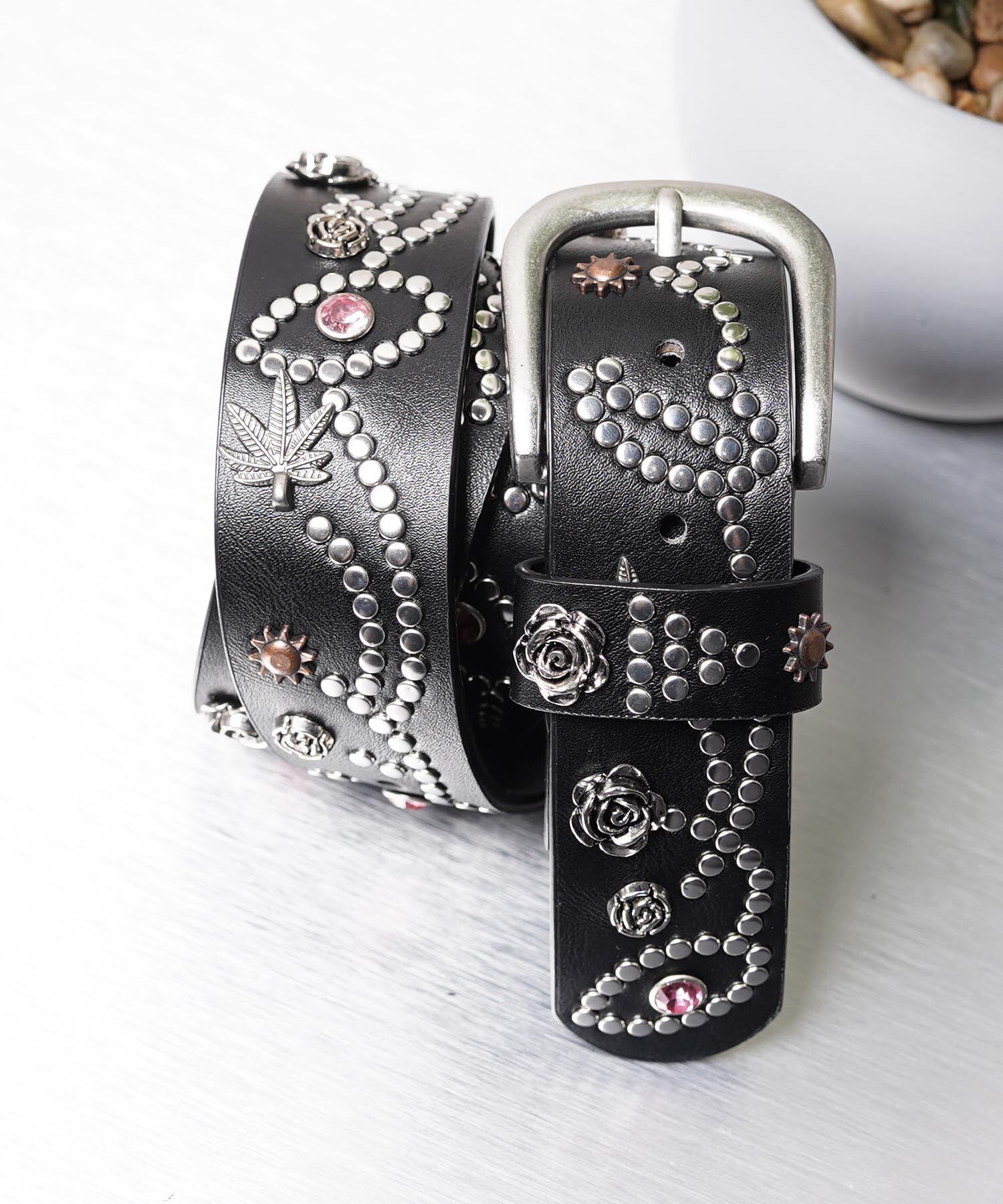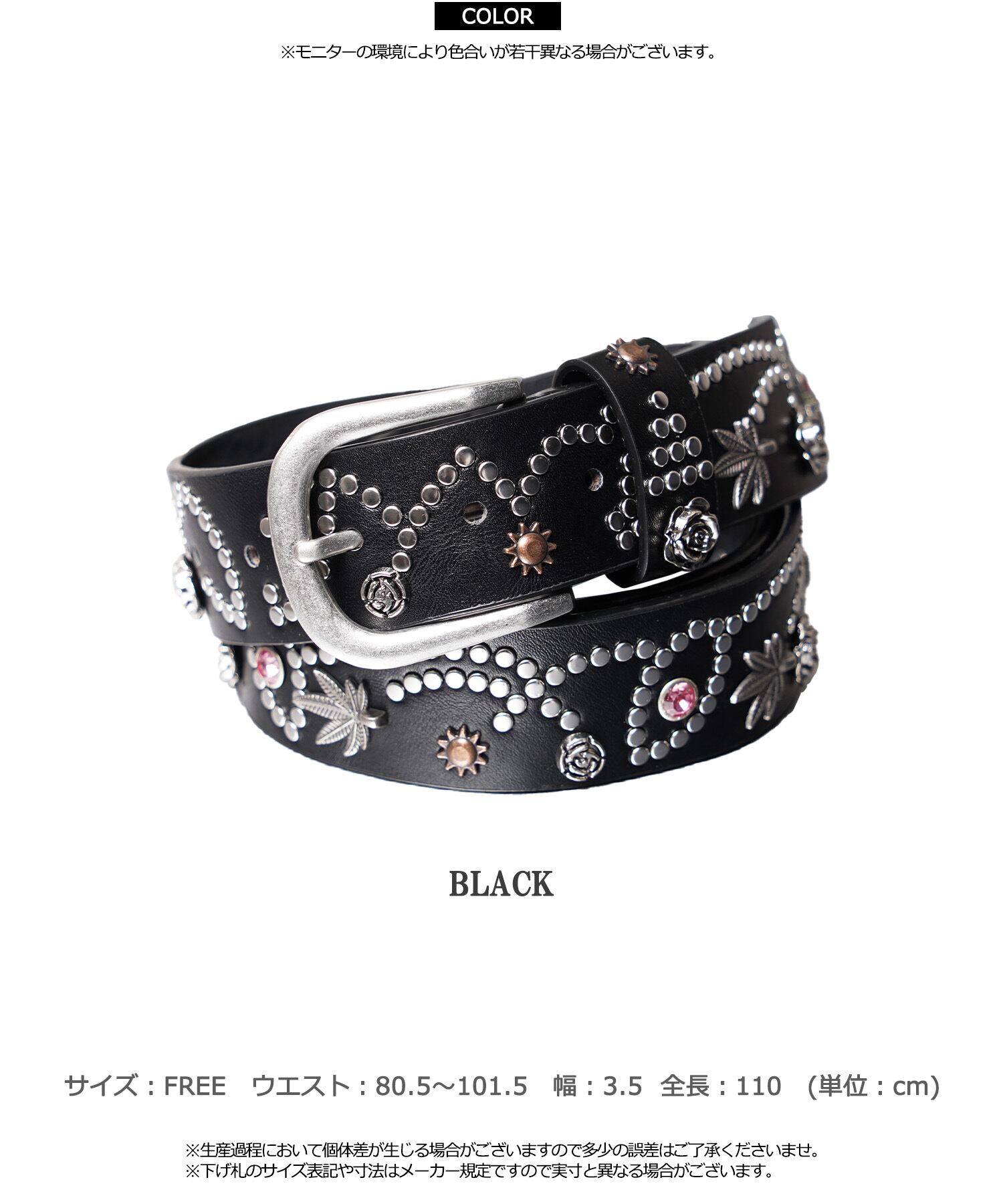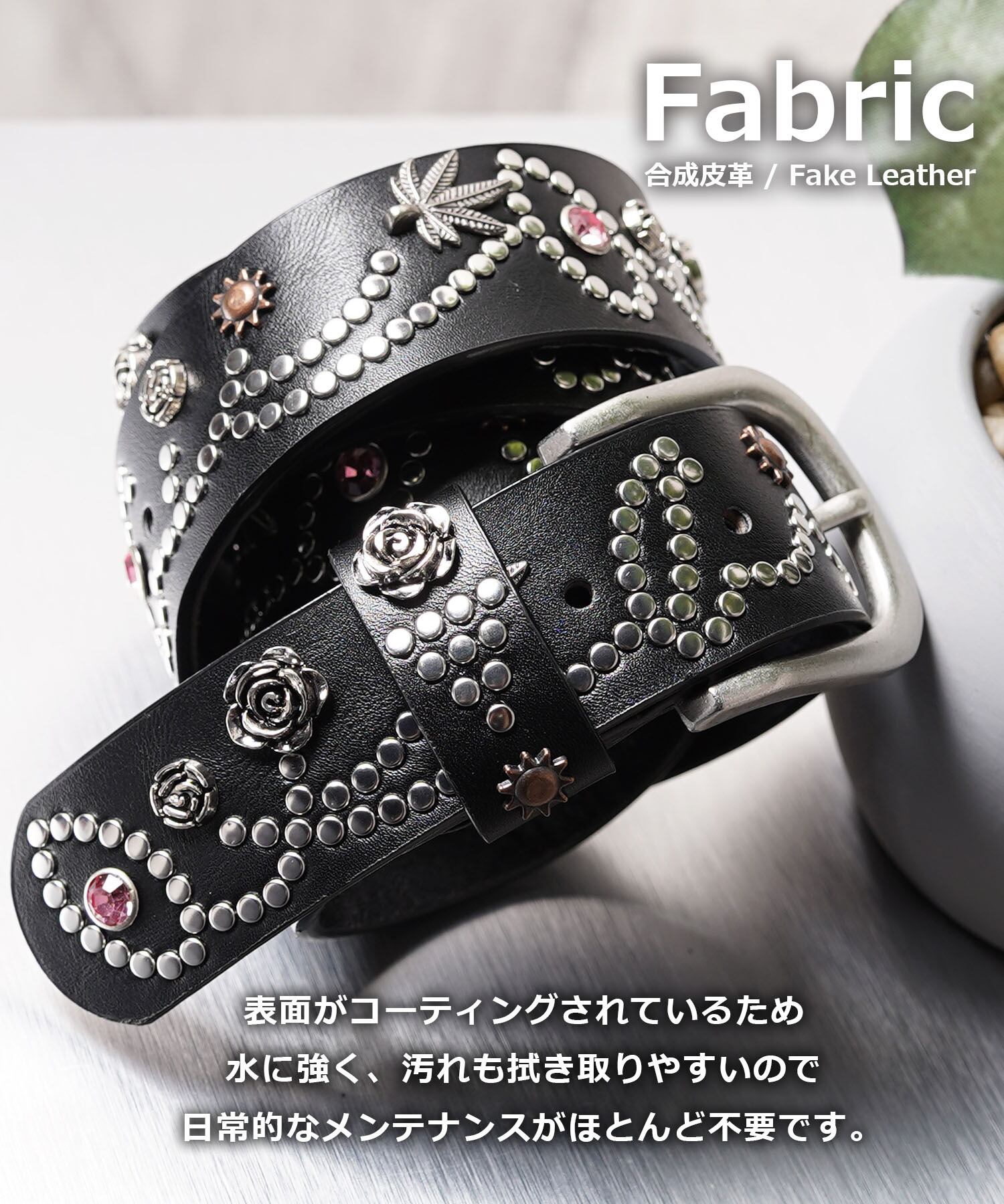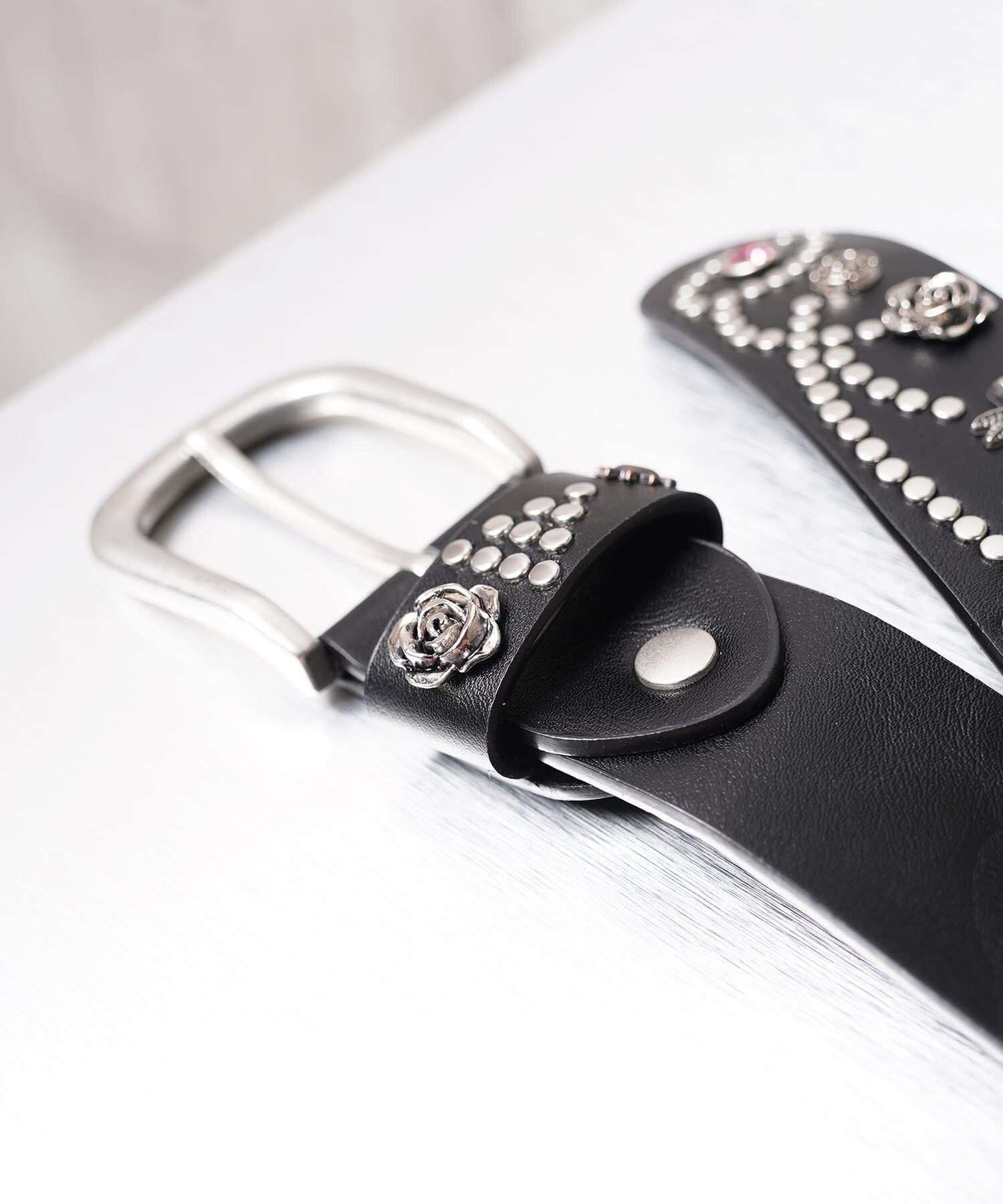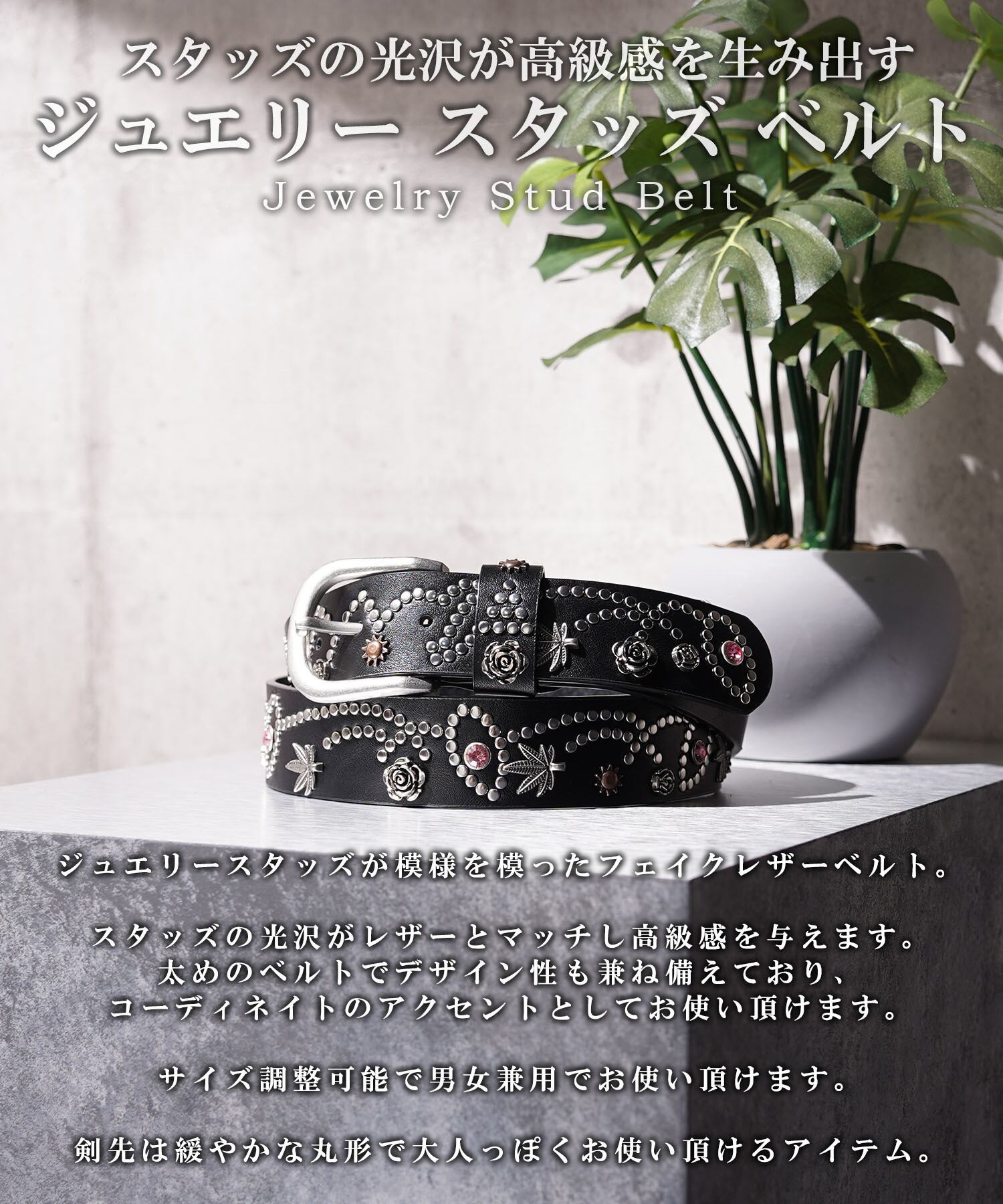 スタッズ ジュエル ジュエリー 装飾 バラ 薔薇 太陽 葉 ベルト 太め フェイクレザー フェイクレザーベルト 帯革 革帯 皮 皮ベルト メンズ レディース 新作