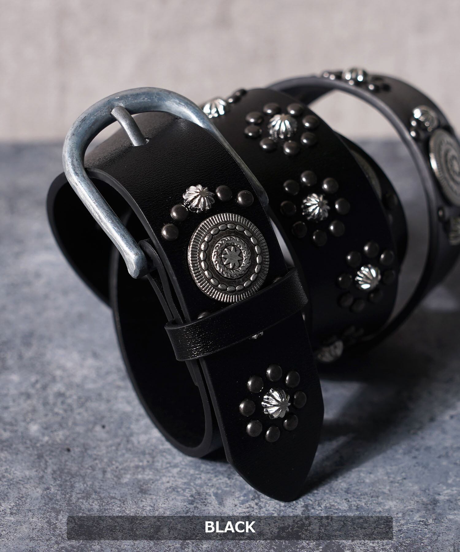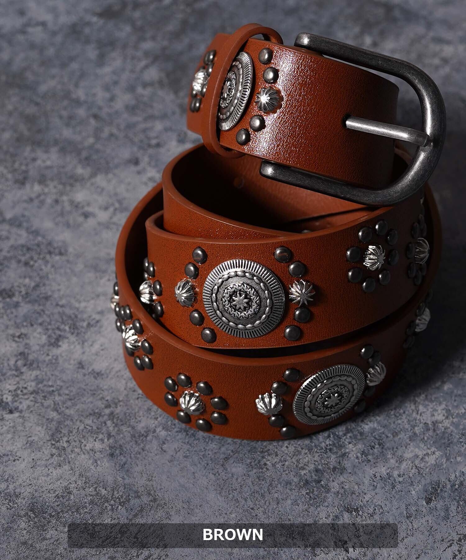 煌びやかなスタッズが輝くフェイクレザーベルト。