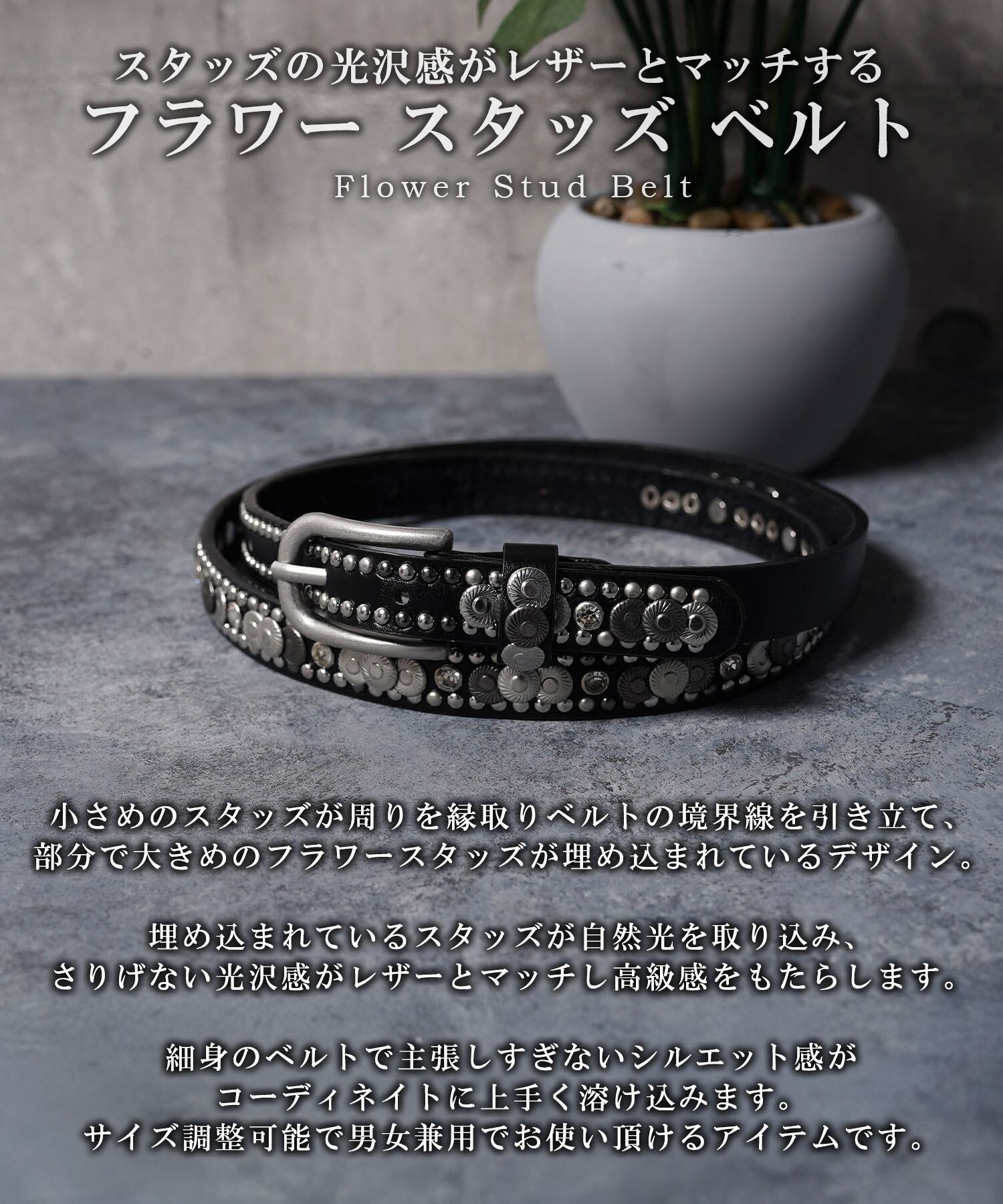 スタッズ 装飾 フラワー 花 フェイクレザー フェイクレザーベルト 皮 皮ベルト メンズ レディース 新作 革帯 帯革 ベルト細め