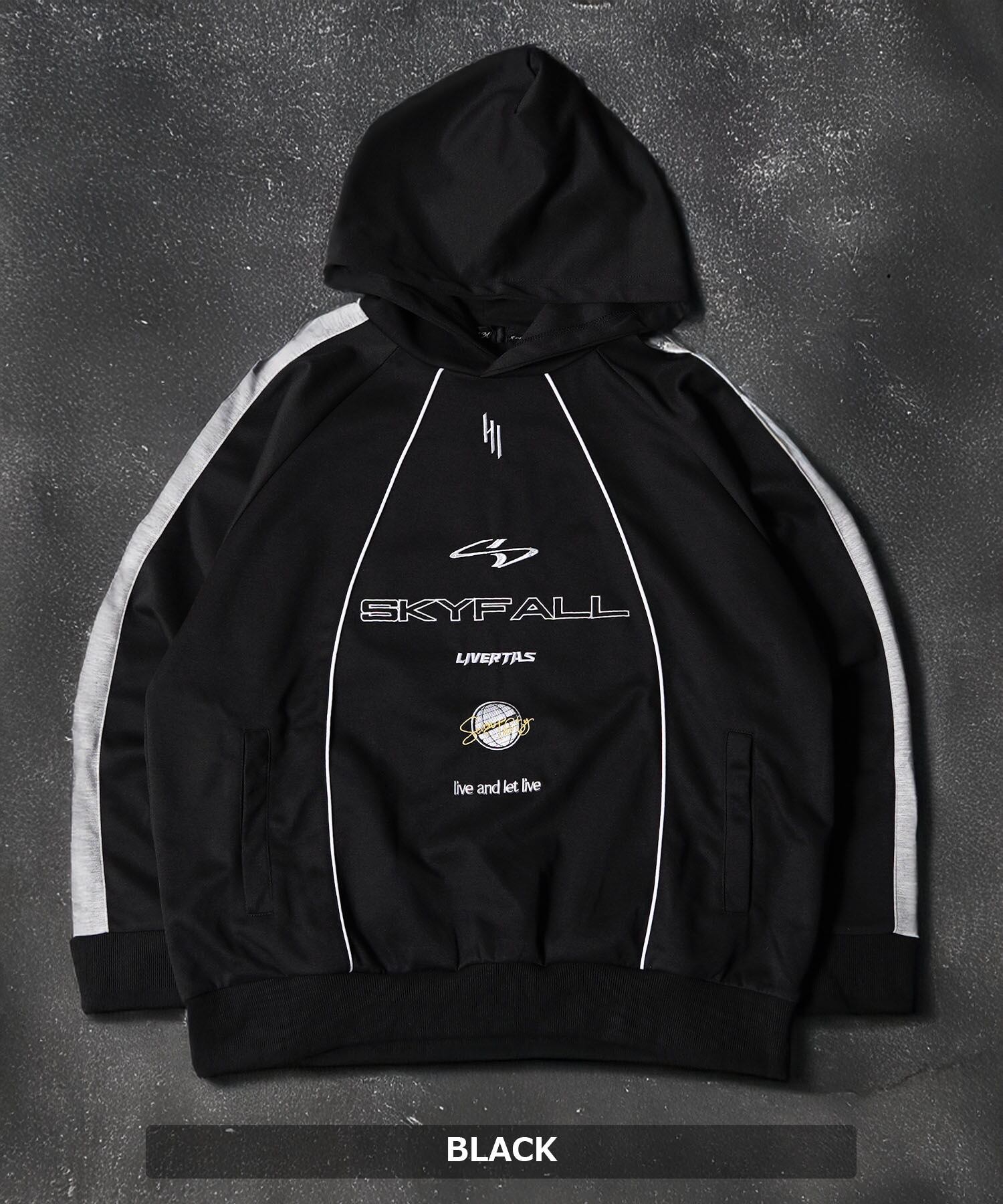 パイピング ライン 刺繍 ロゴ フロントポケット ポケットフーディ フーディー パーカー プルパーカー 新作 オーバーサイズ メンズ レディース 長袖 秋 冬 秋服 冬服