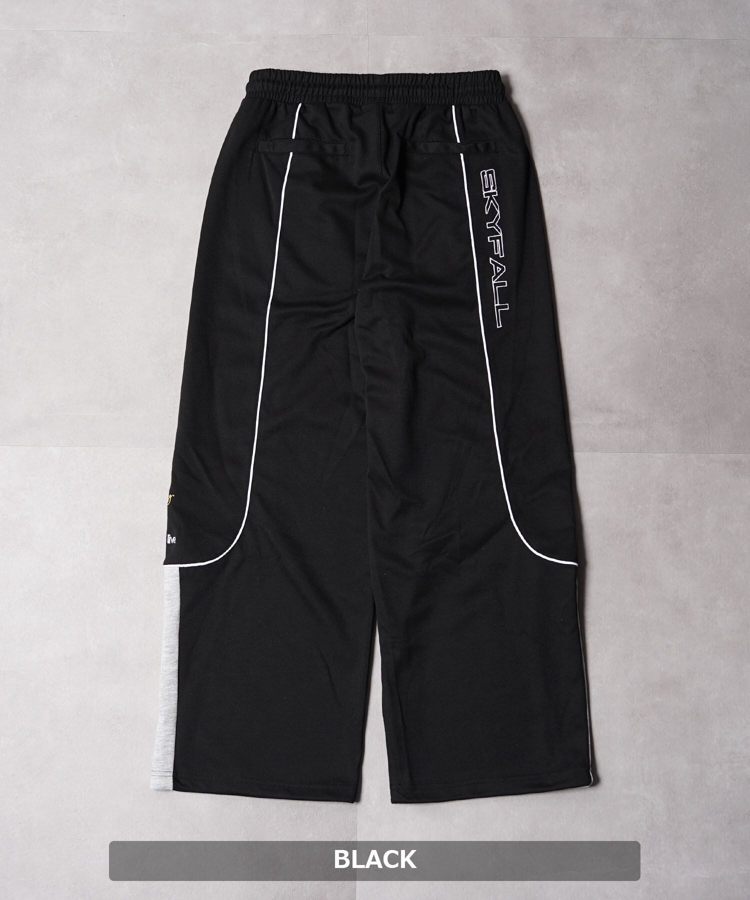 ワイドパンツ スウェットパンツ スエットパンツ スウェット スエット ラフ着 ウエストゴム 紐 紐パン パイプライン ライン ロゴ 刺繍 プリント ピスポケット セットアップ
