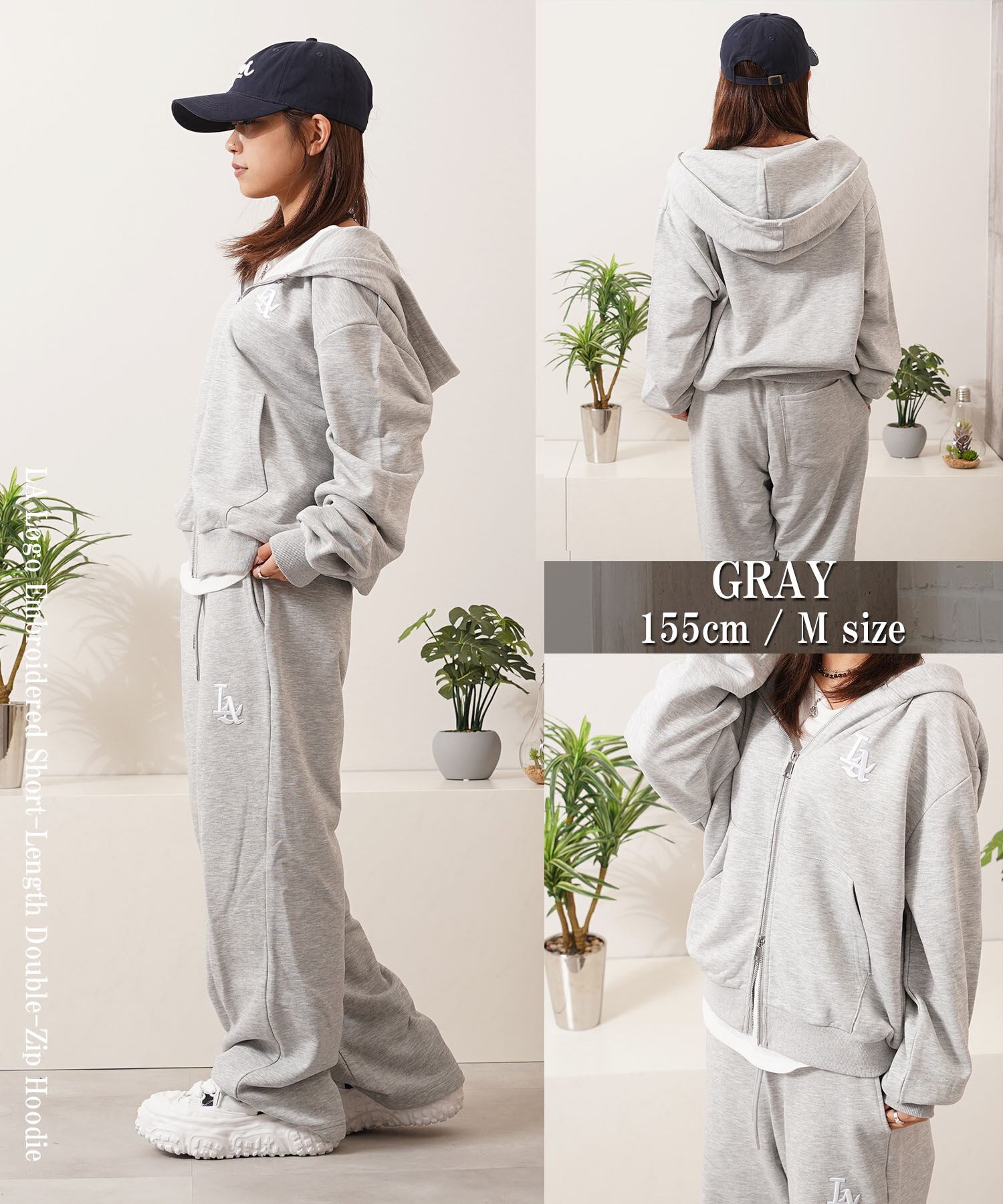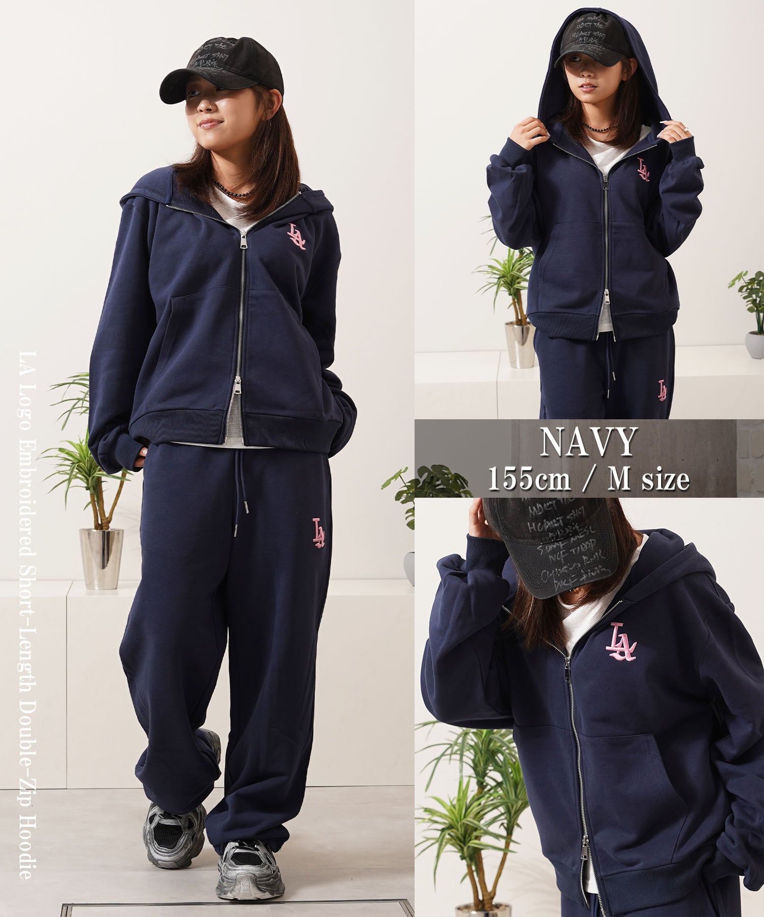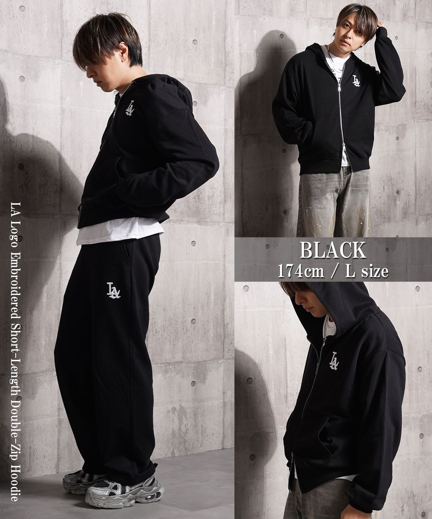 ◆LA ロゴ刺繍 ショート丈 ダブルZIPパーカー◆yo-25001