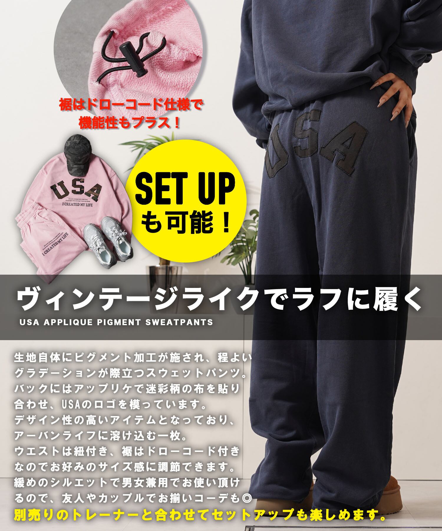 ◆USAアップリケ ピグメント スウェットパンツ◆wi-759029