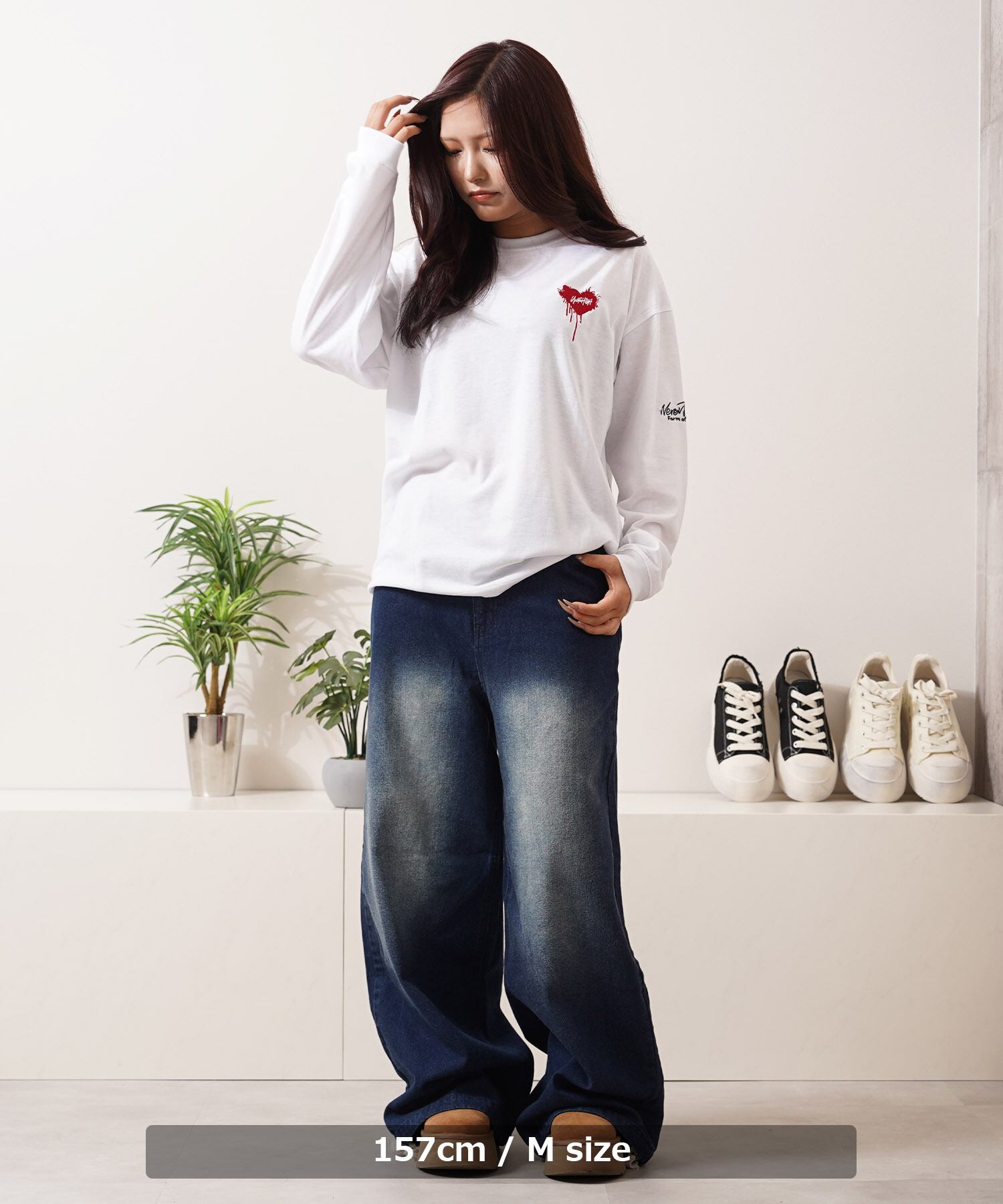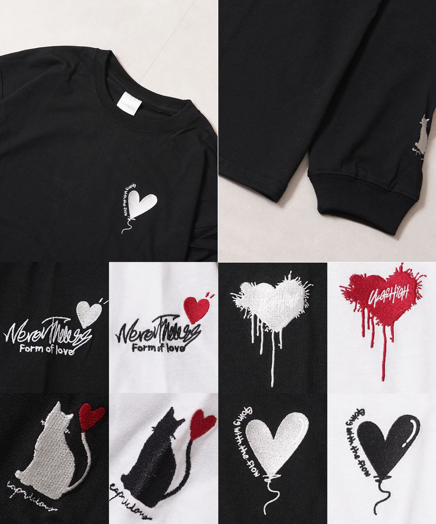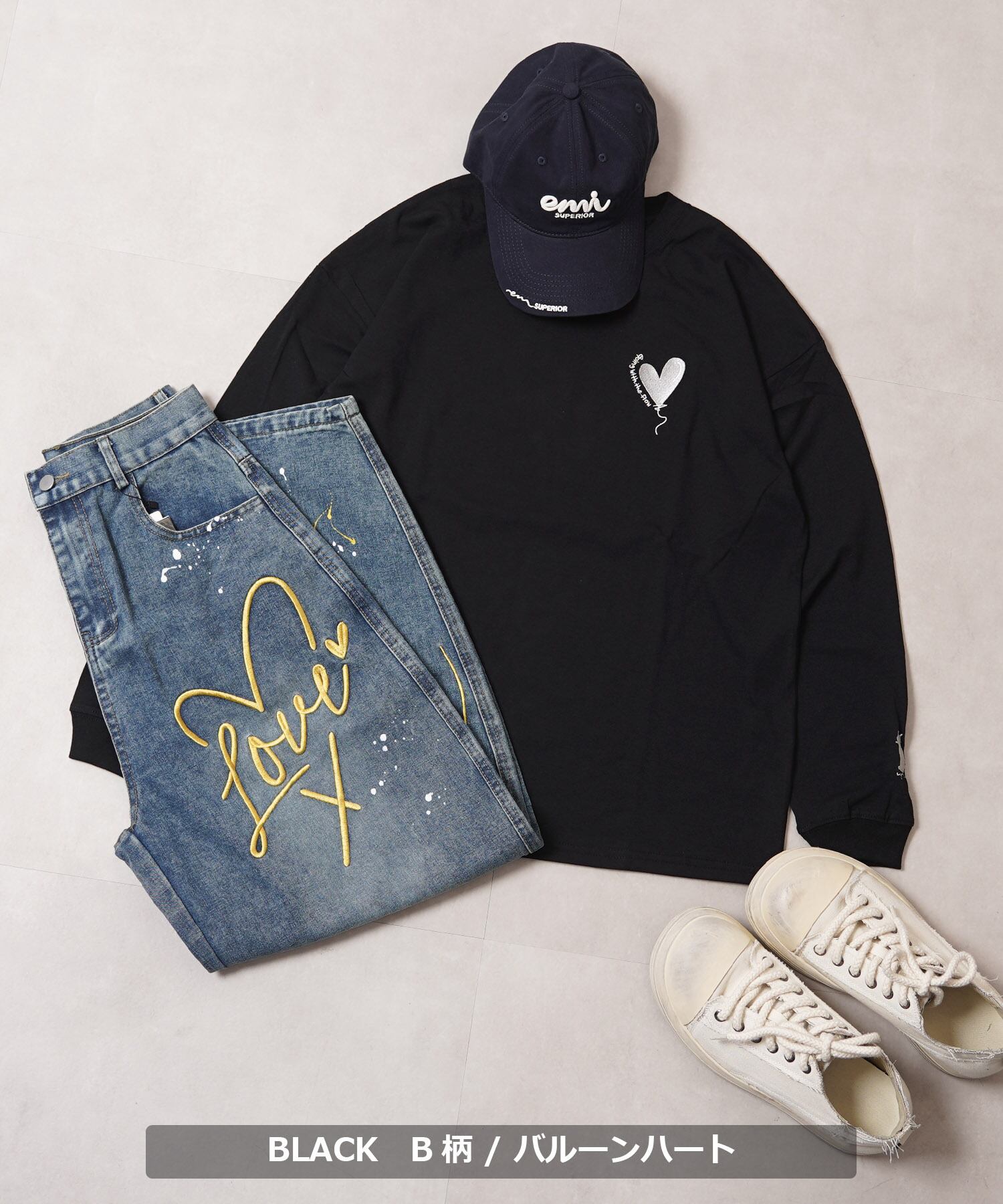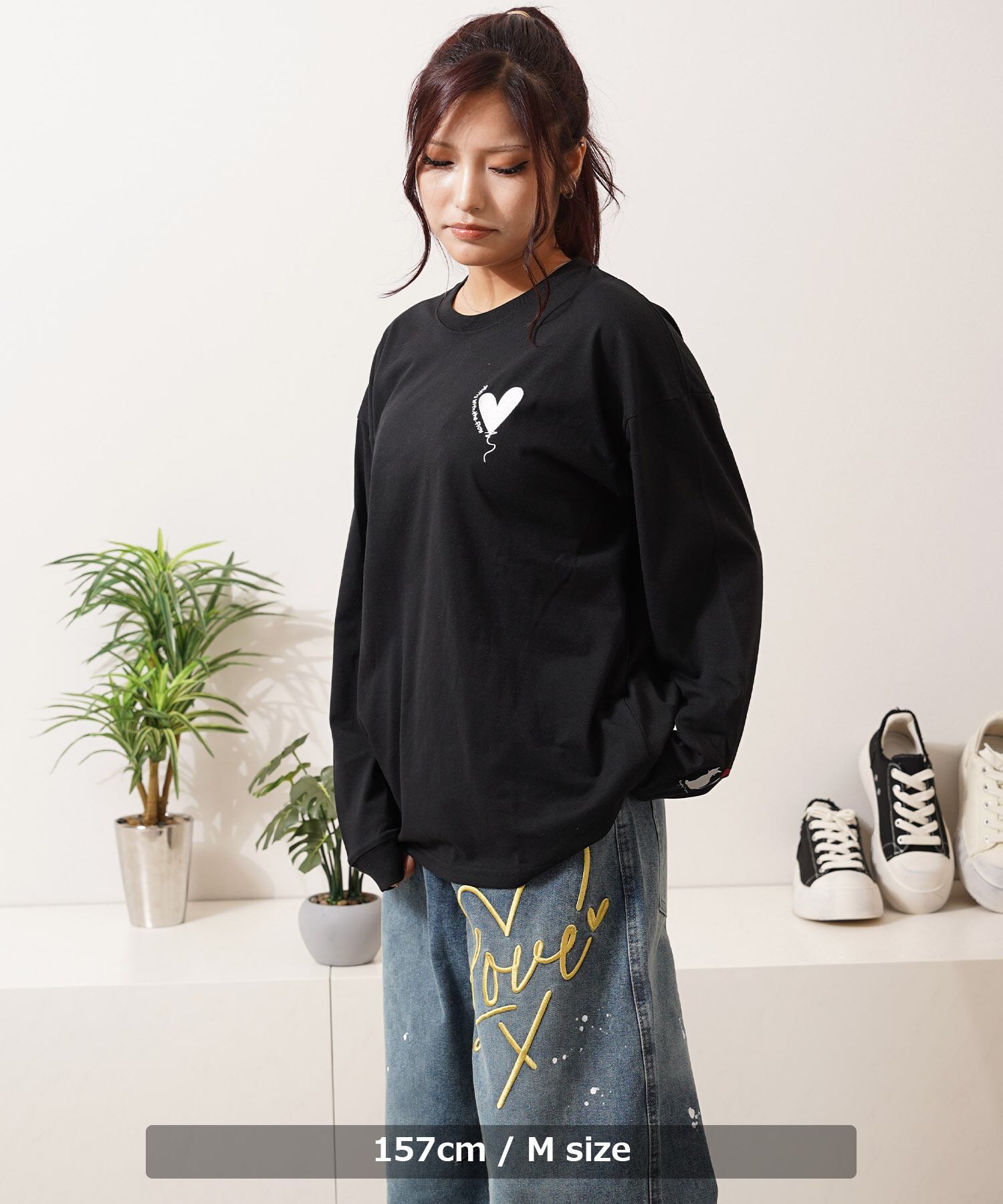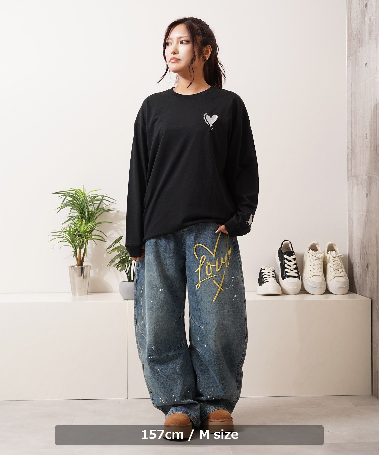 ◆ハート刺繍 ワイドシルエット L/S Tee◆bf-25101