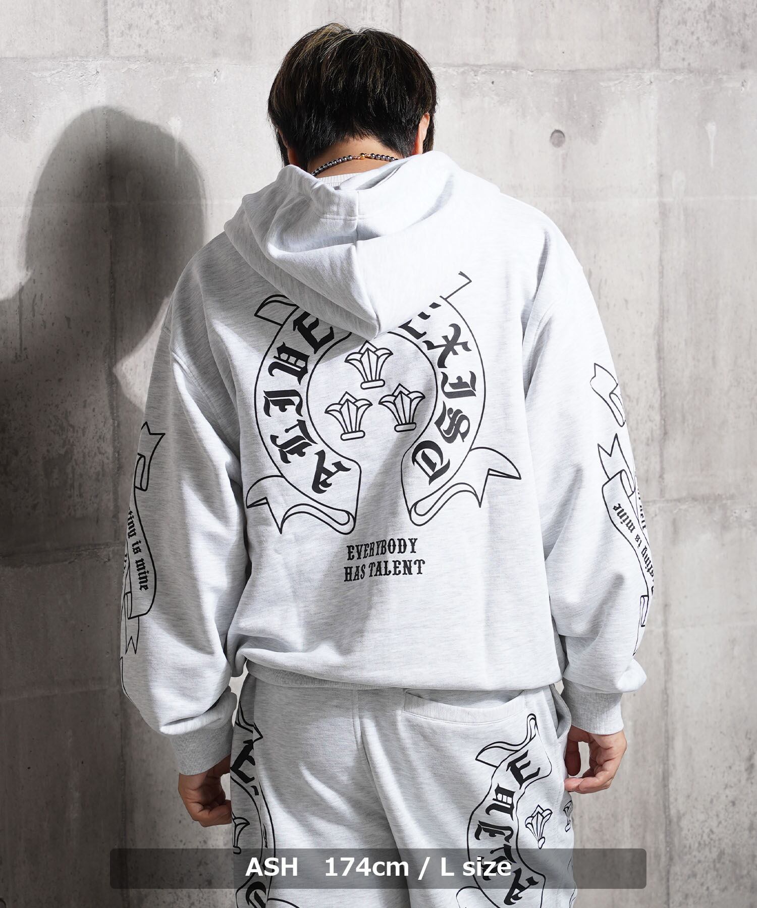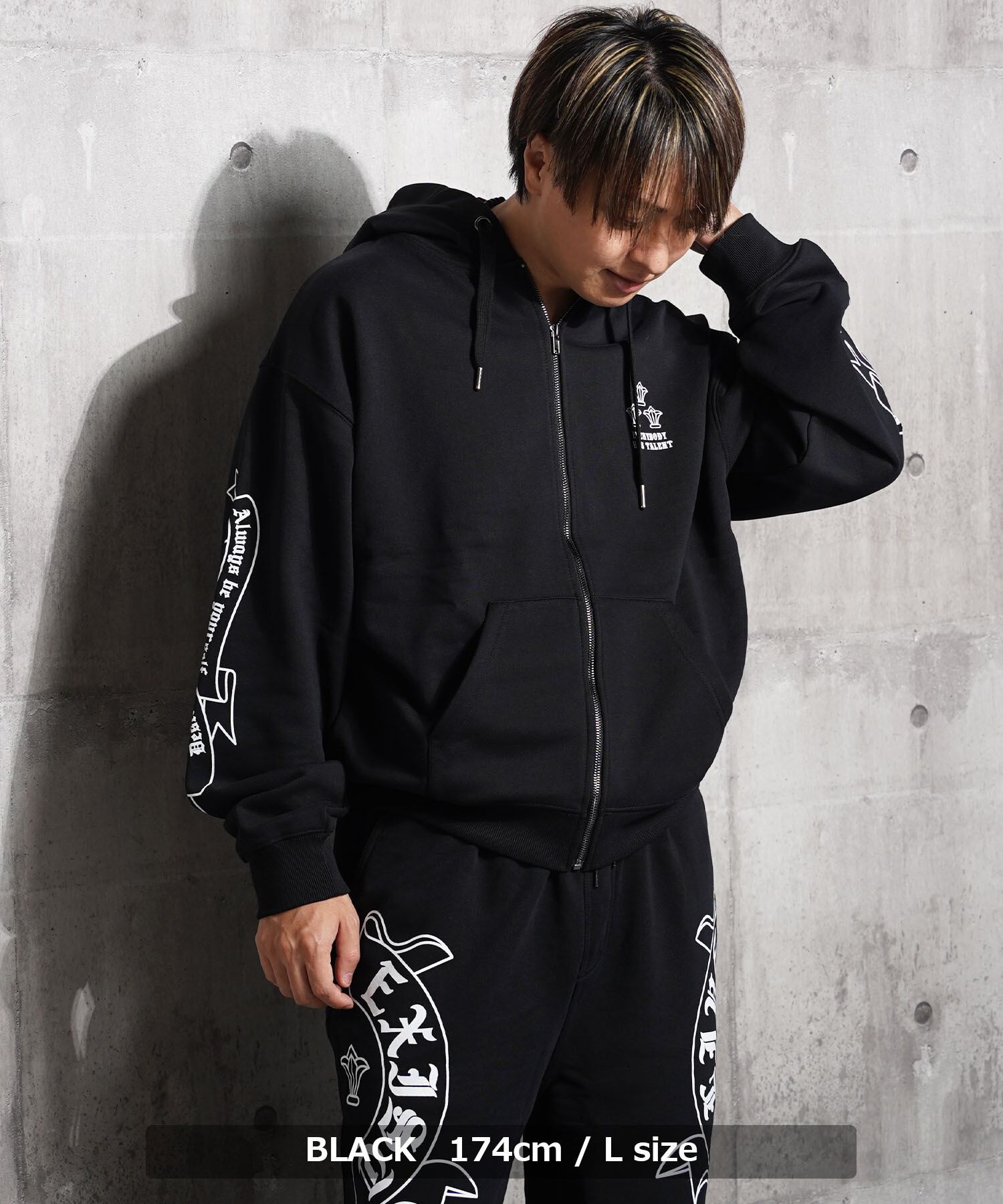 メンズ レディース プリント バックプリント ロゴ LOGO 袖ロゴ 長袖 秋 冬 新作 秋服 冬服 フーディー フーディ ZIP ZIPパーカー ジップ ジップフーディ 上衣 裏毛 セットアップ