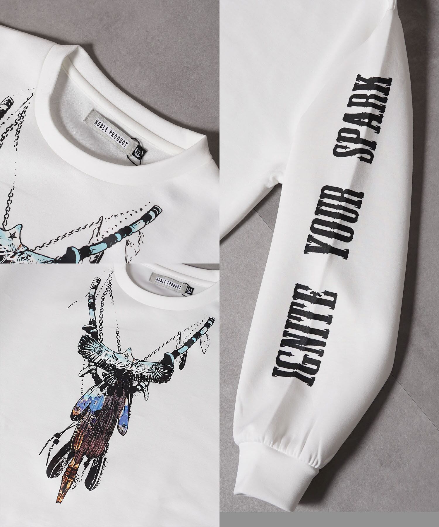 フロントにはアクセサリーを催したプリントが施されておりインパクトもあります。