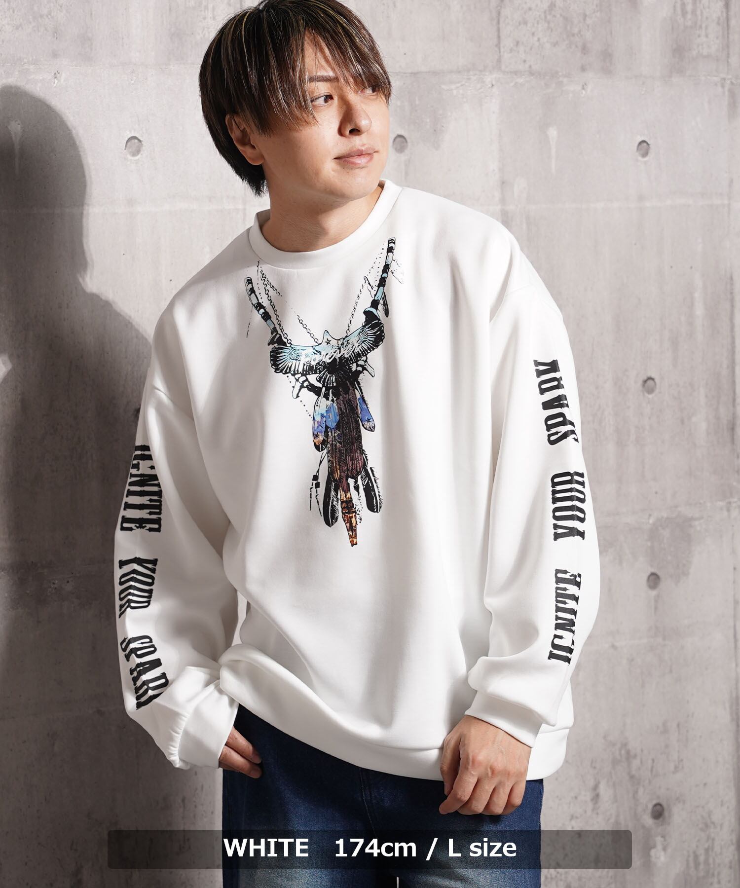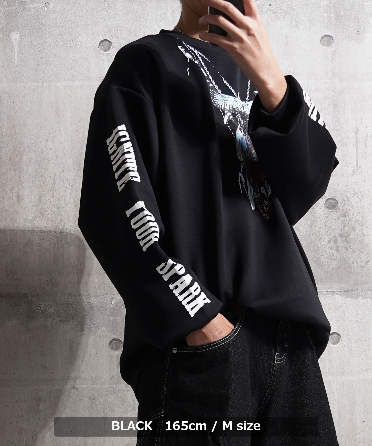 プリント アクセサリー アクセ 袖ロゴ ロゴ LOGO 英語 アルファベット 白 黒 長袖 オーバーサイズ スウェット スエット ビッグシルエット トレーナー 秋服 冬服 秋 冬 新作