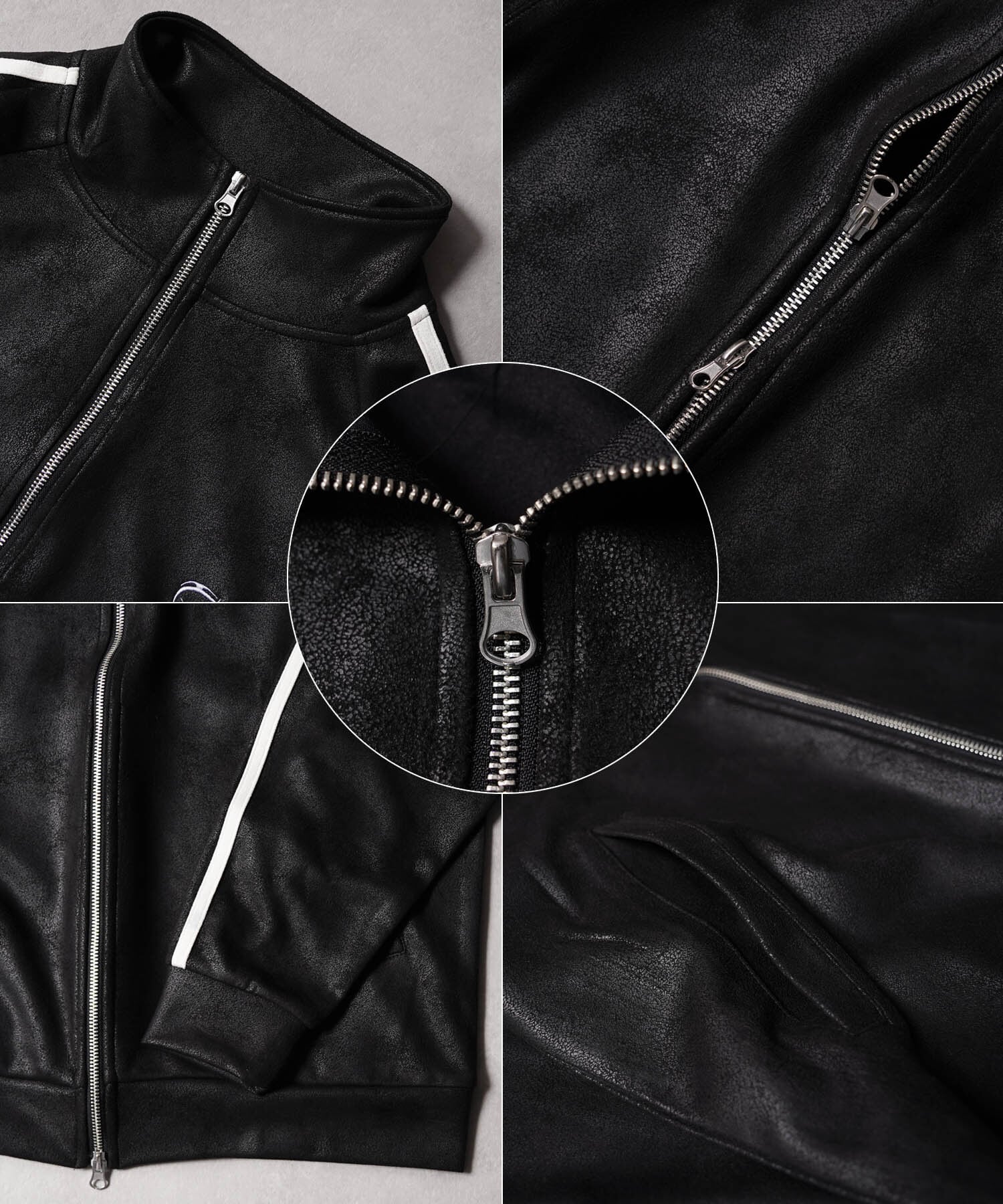 レザーのような上品な仕上がりのクールなトラックジャケット。