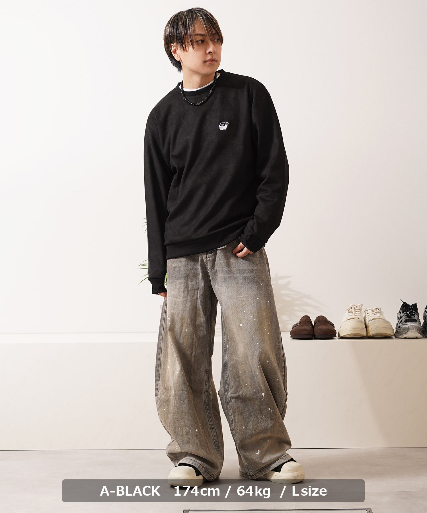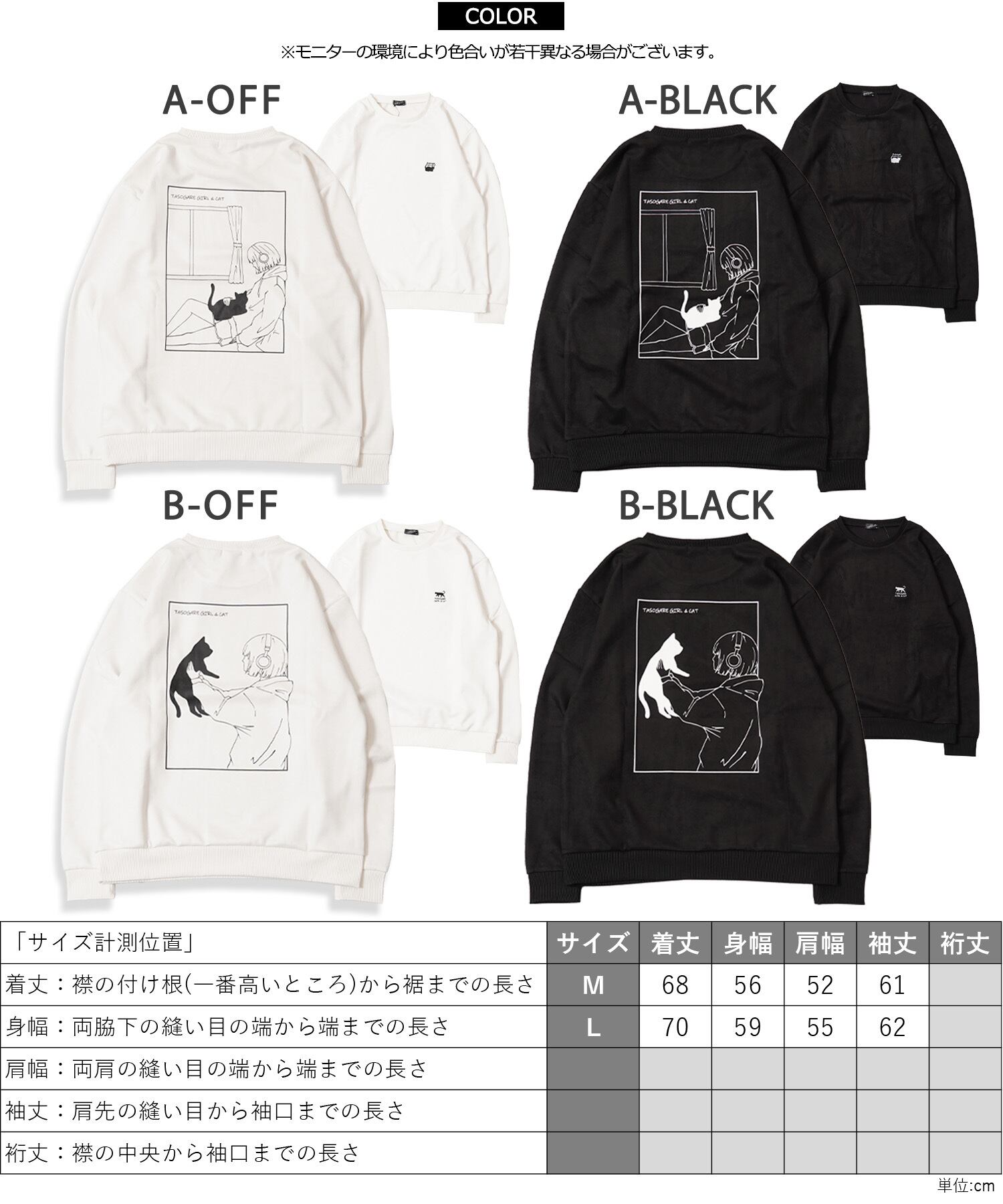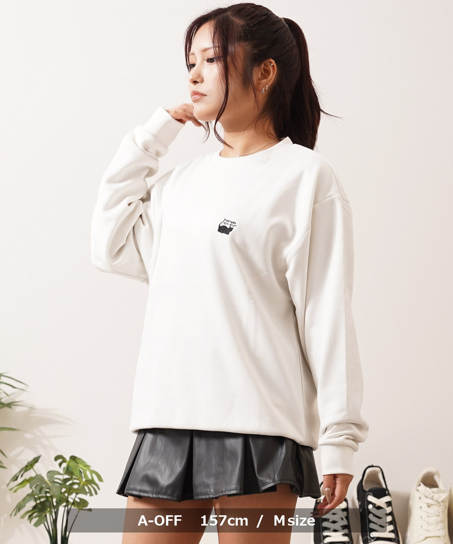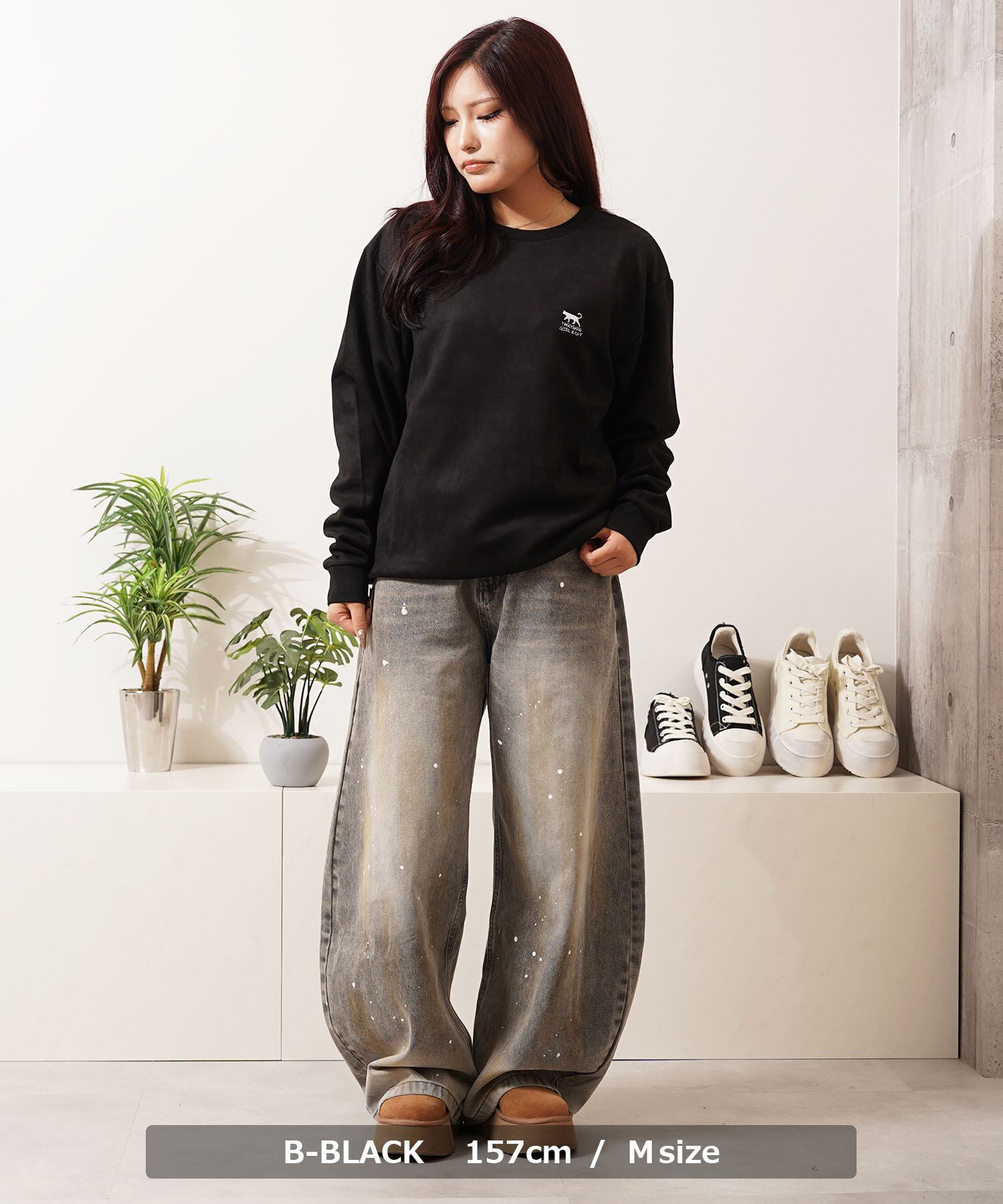スエード スウェード 少女 女の子 猫?イラスト バックプリント プリント 刺繍 ワンポイント ロゴ LOGO ビッグシルエット スウェット スエット トレーナー 長袖 秋服 冬服 秋 冬 新作 オーバーサイズ