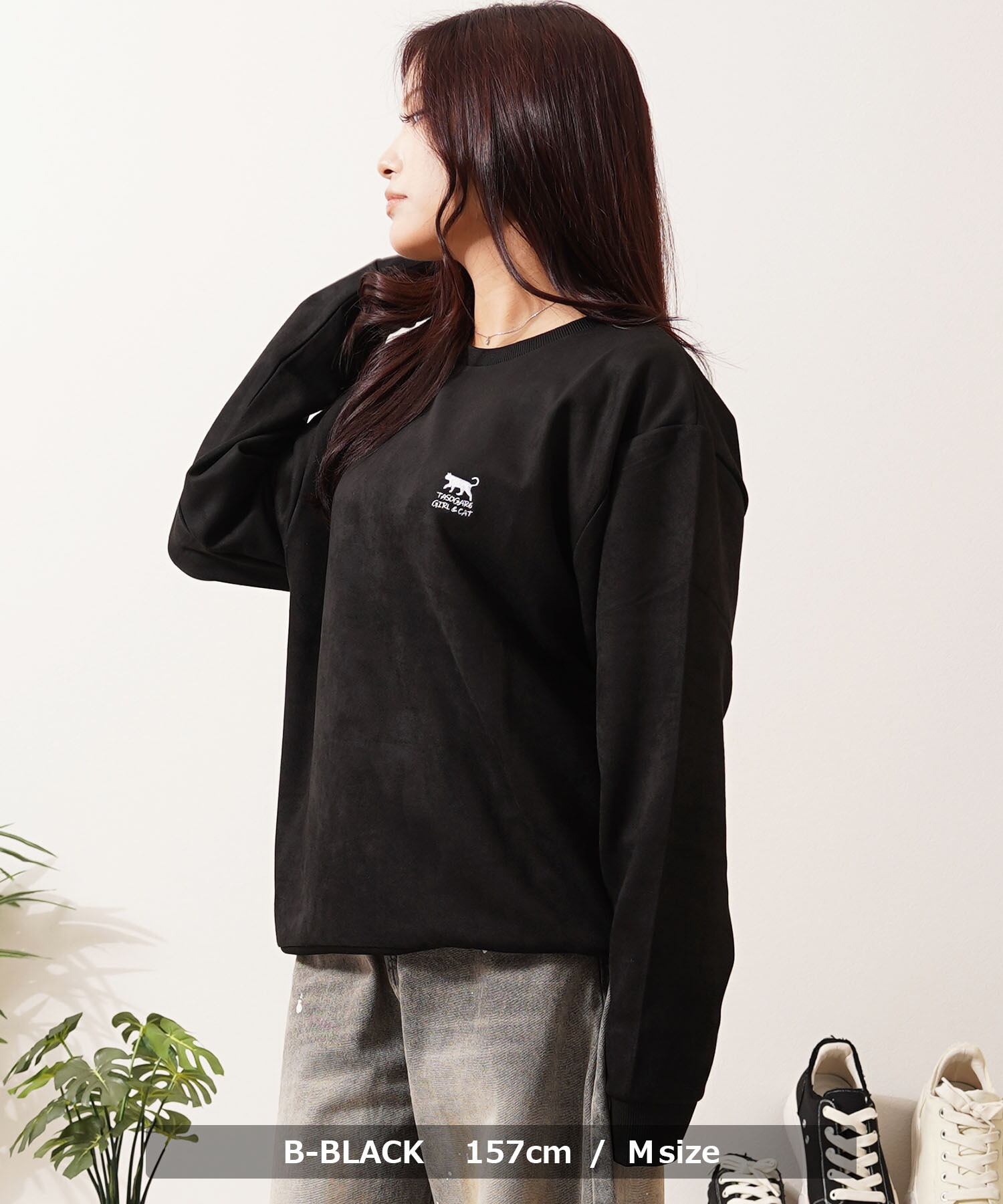 ◆ガール&ネコ フェイクスエード トレーナー◆si-30700725