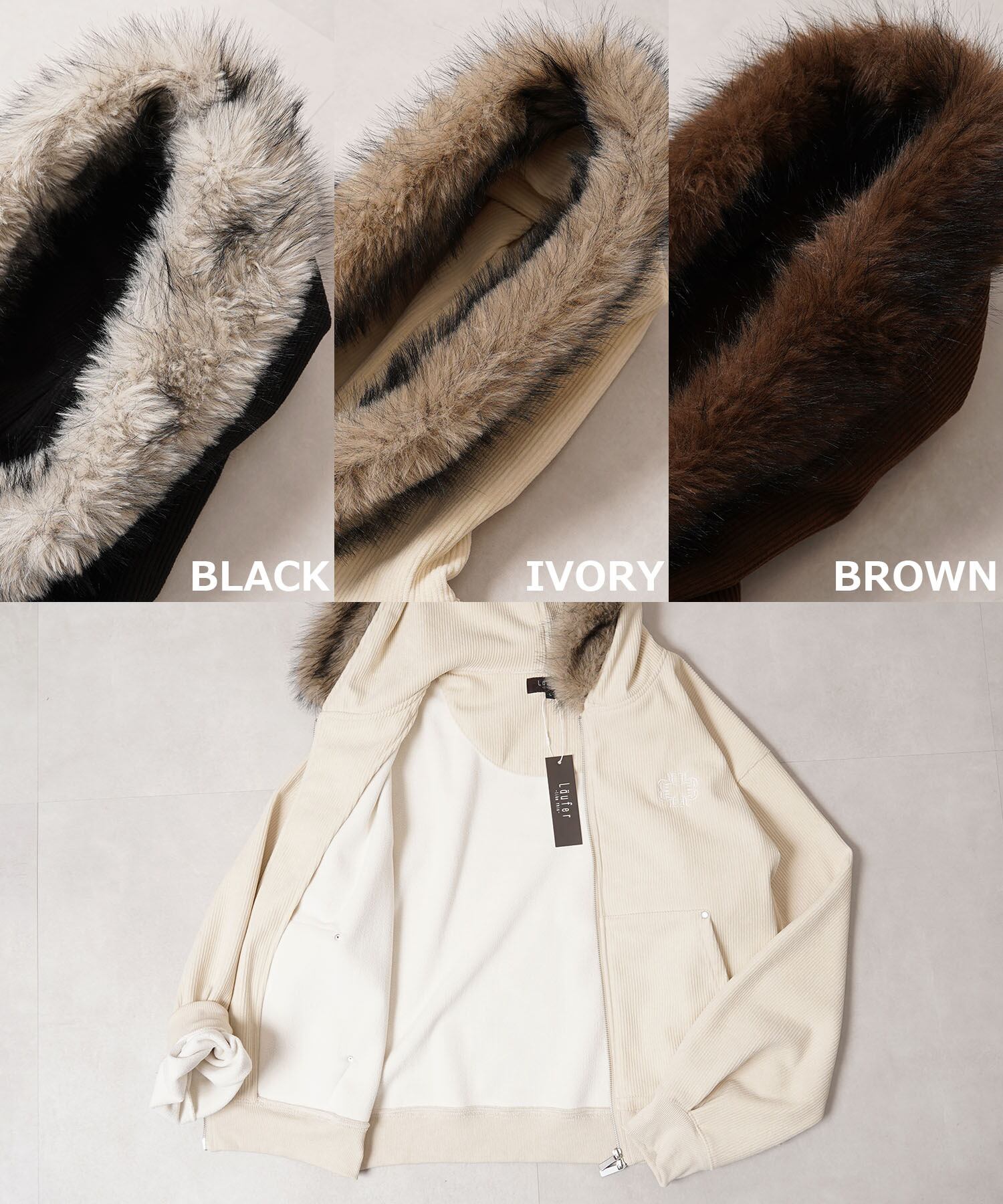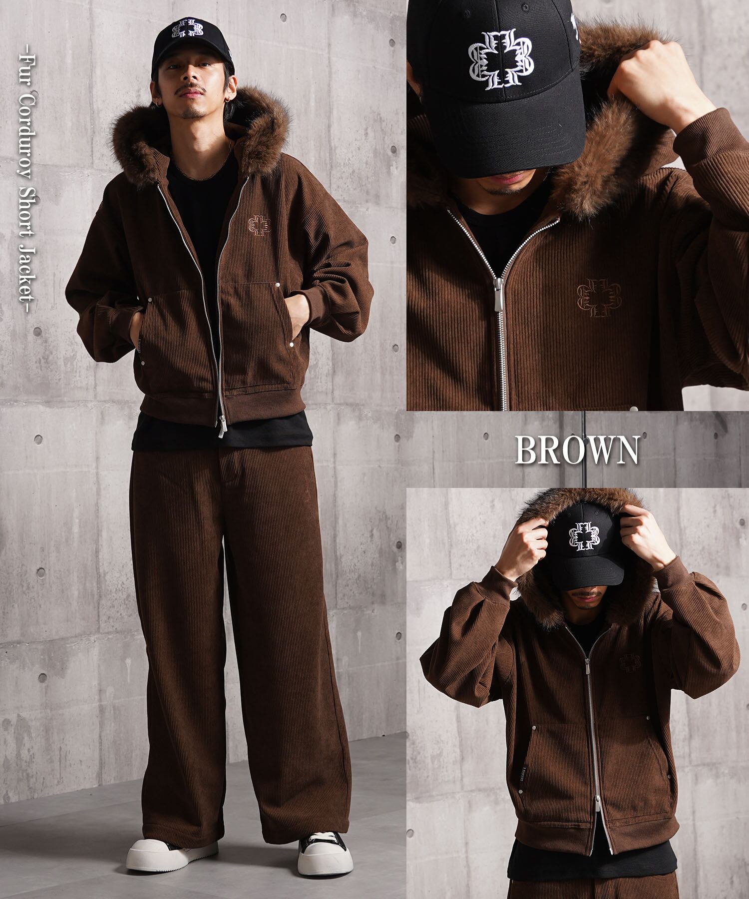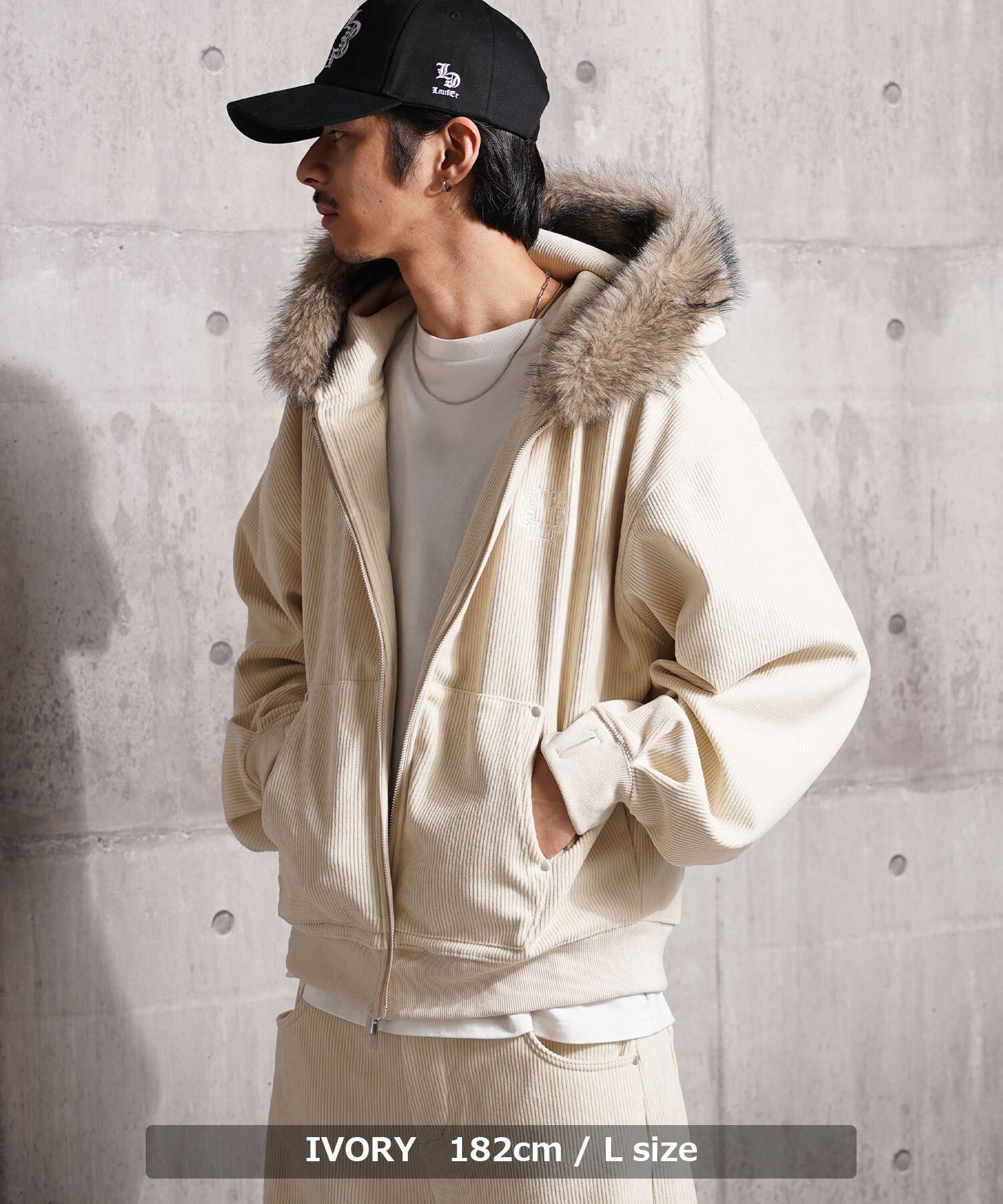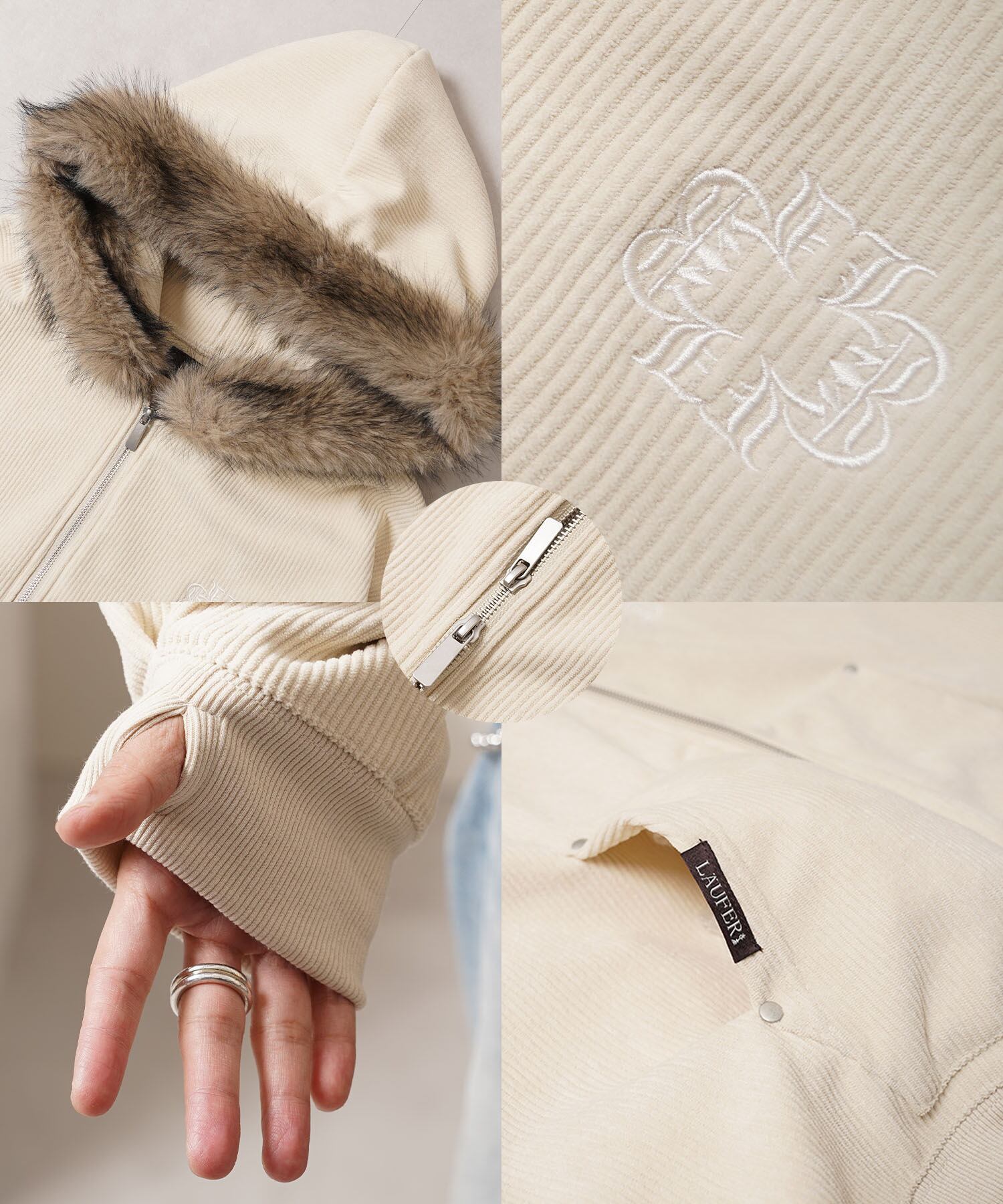 ファージャケット ファー ブルゾン ジャケット アウター トップス コーデュロイ コール天 コールテン 羽織 刺繍 ロゴ刺繍 ブランドロゴ オリジナル オリジナルブランド