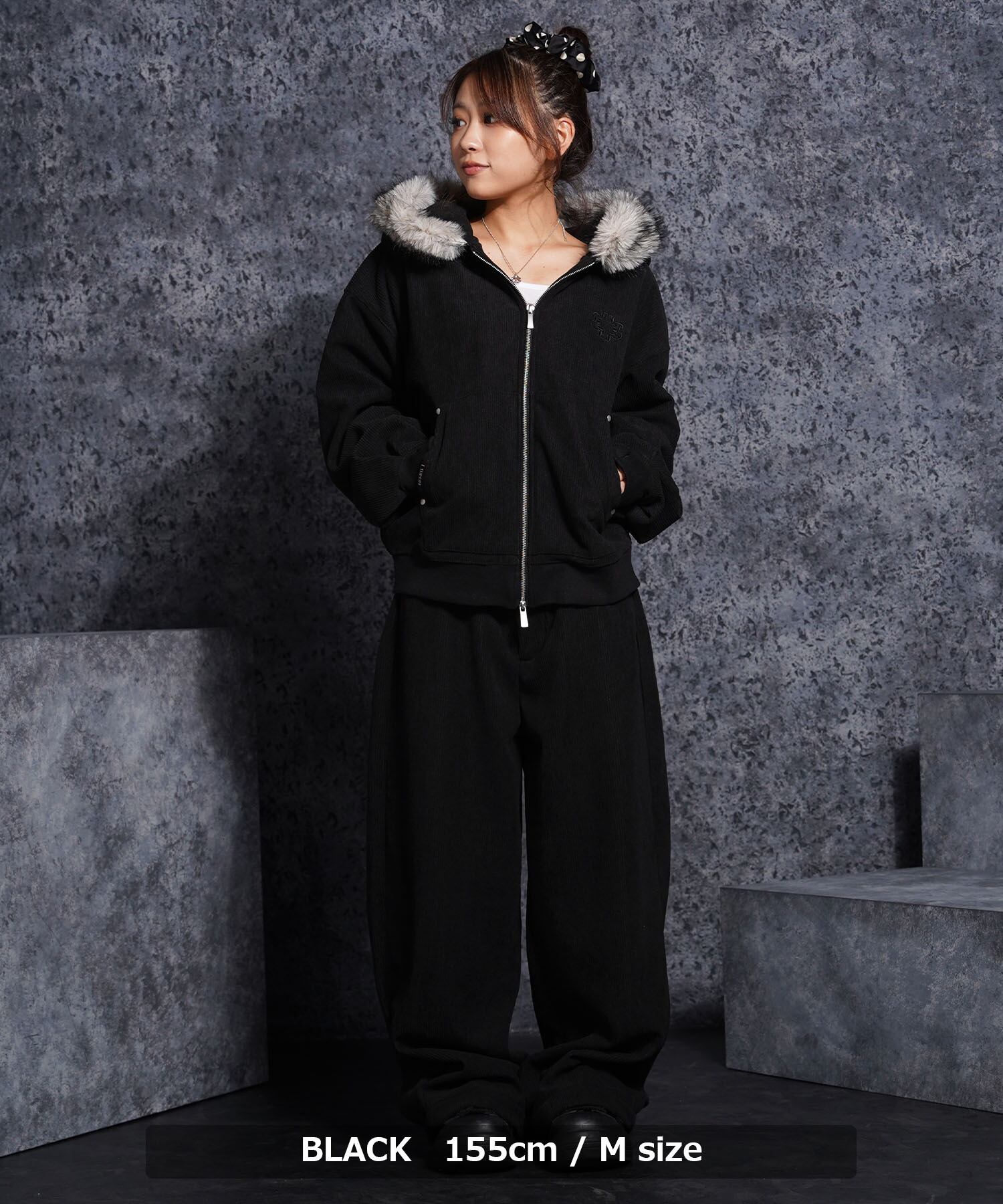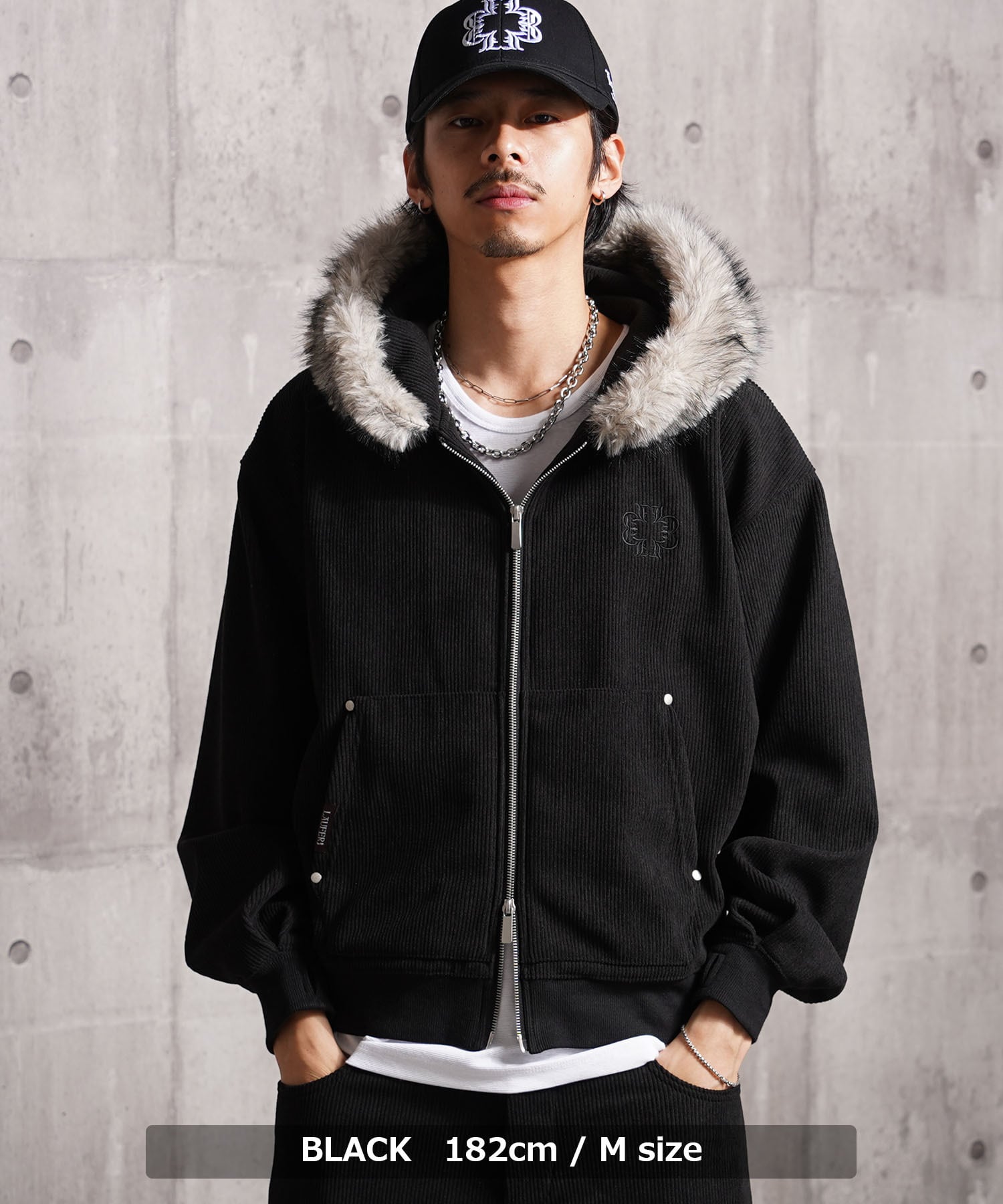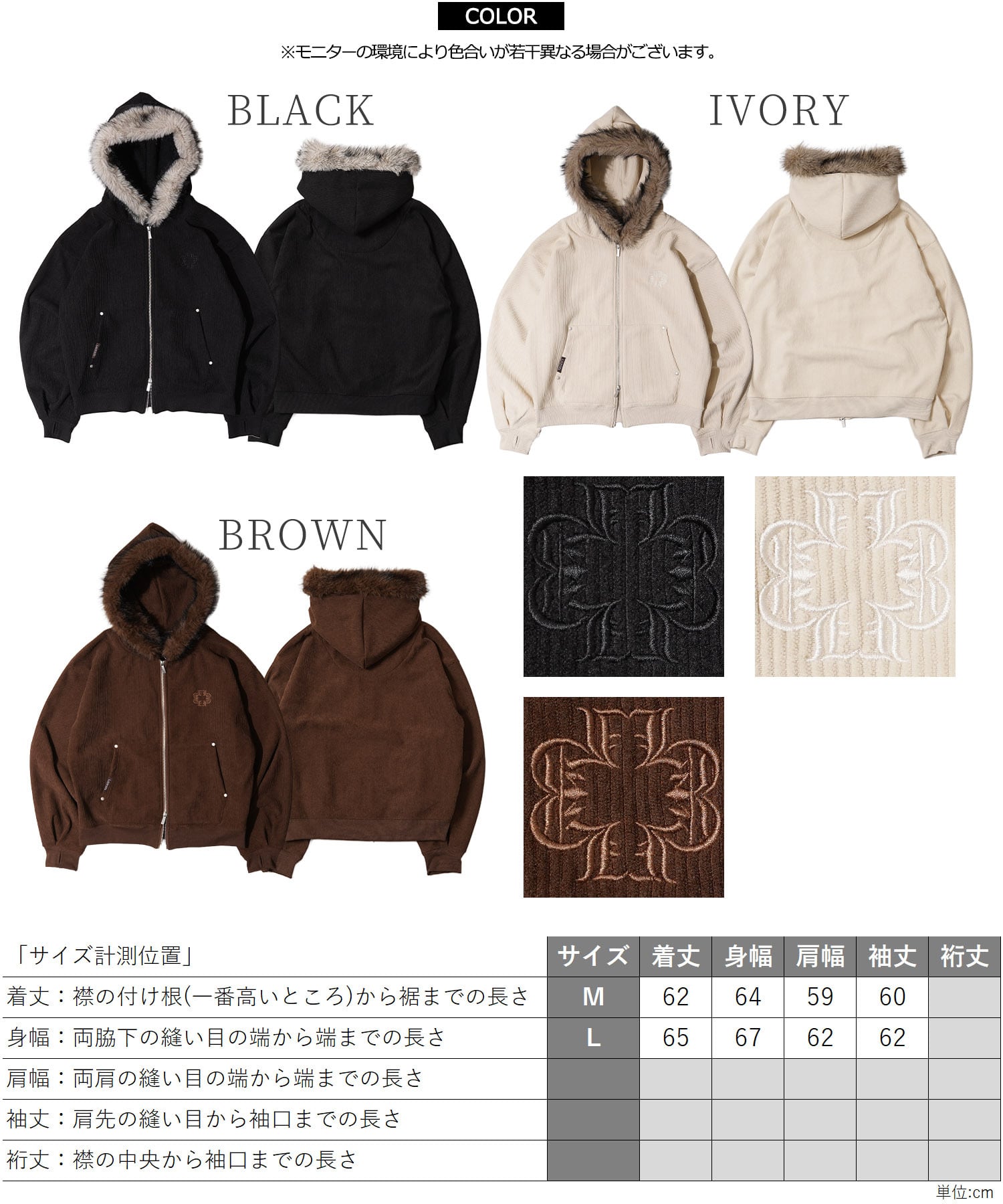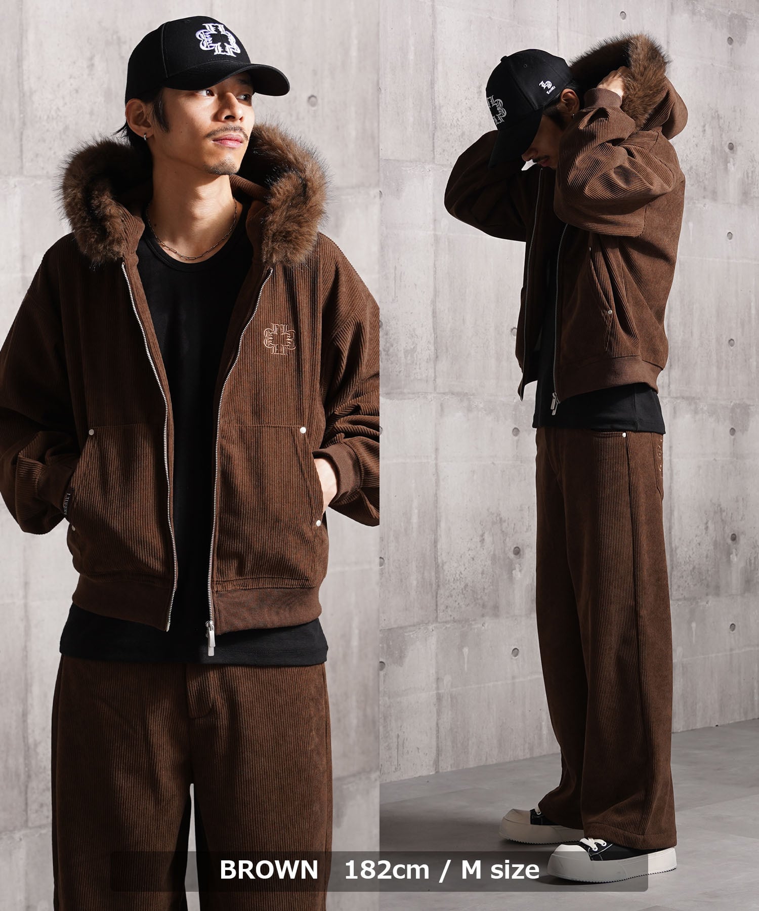 ファージャケット ファー ブルゾン ジャケット アウター トップス コーデュロイ コール天 コールテン 羽織 刺繍 ロゴ刺繍 ブランドロゴ オリジナル オリジナルブランド