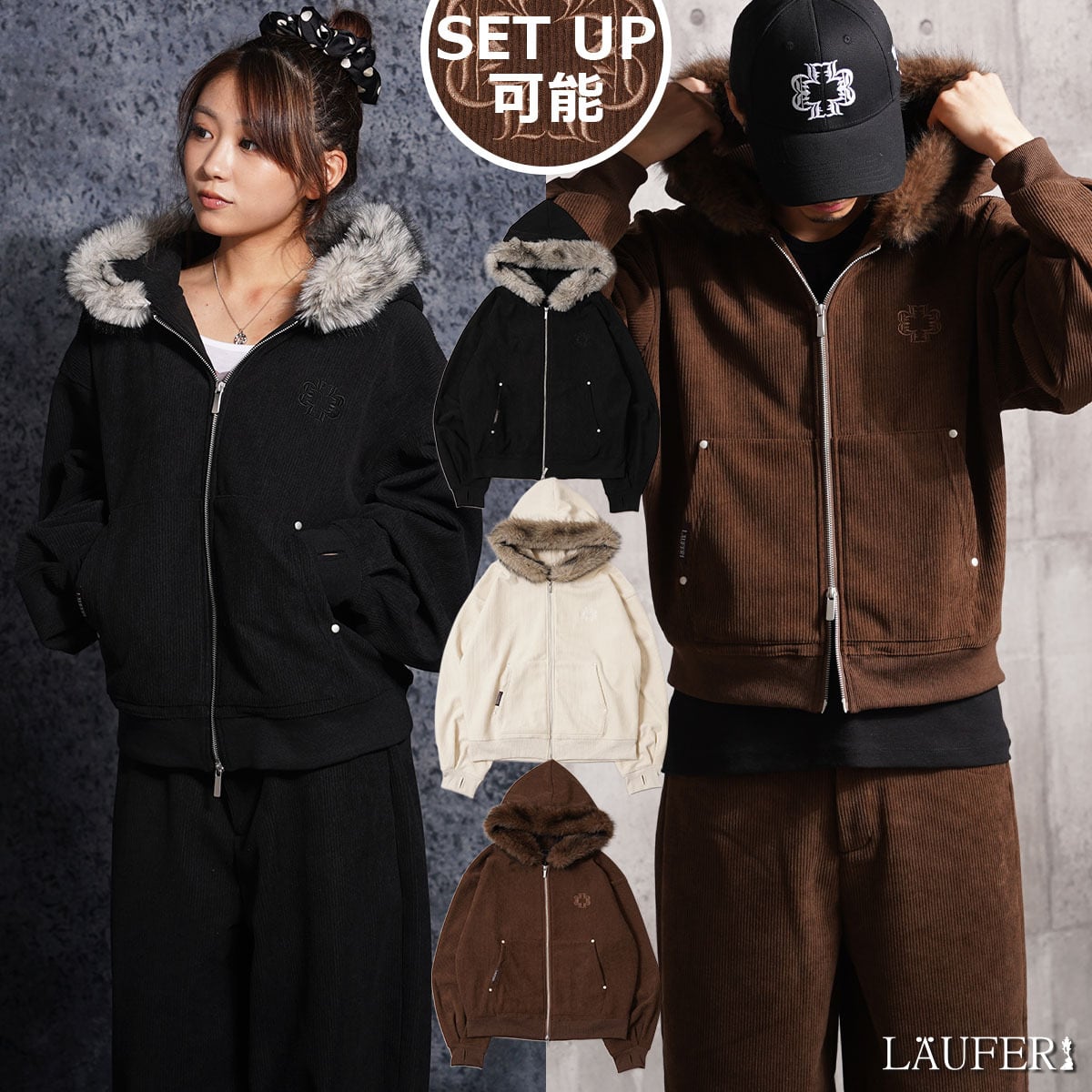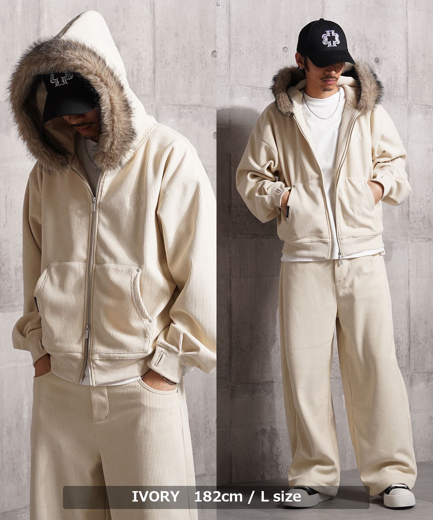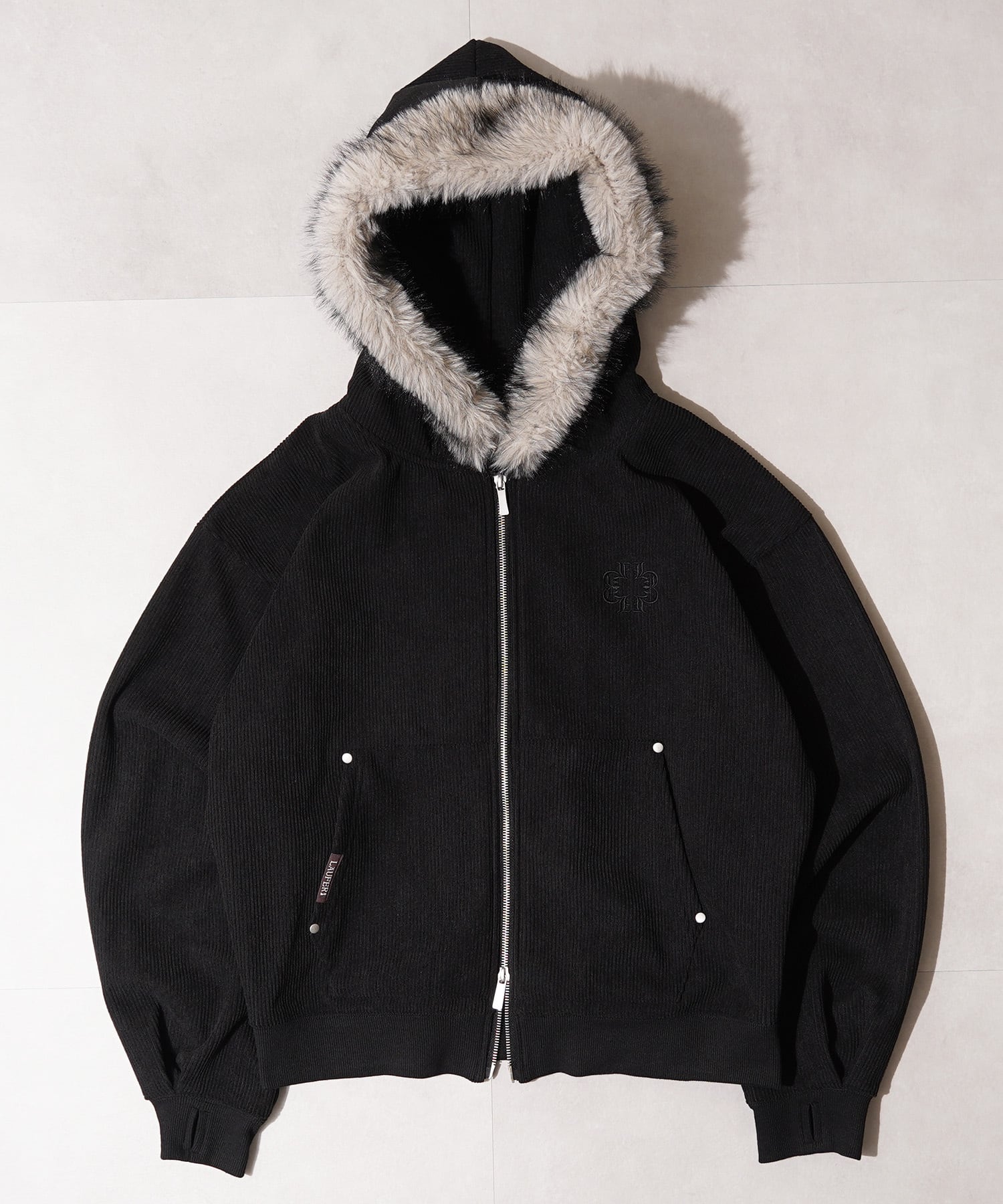 季節感溢れる細畝のコーデュロイ生地を使用した、ダブルジップフーディー。