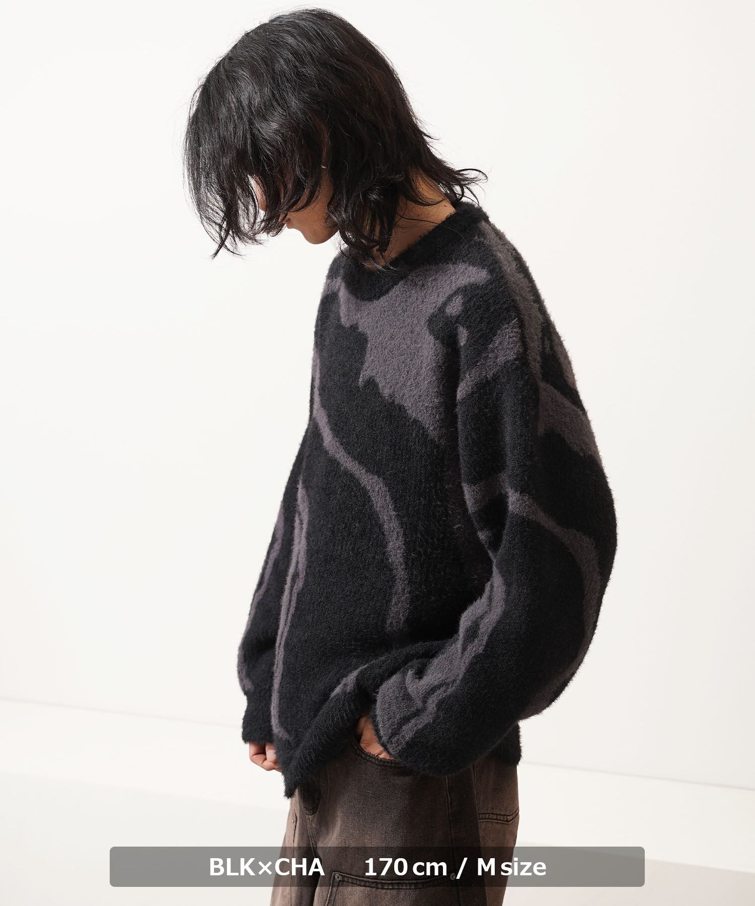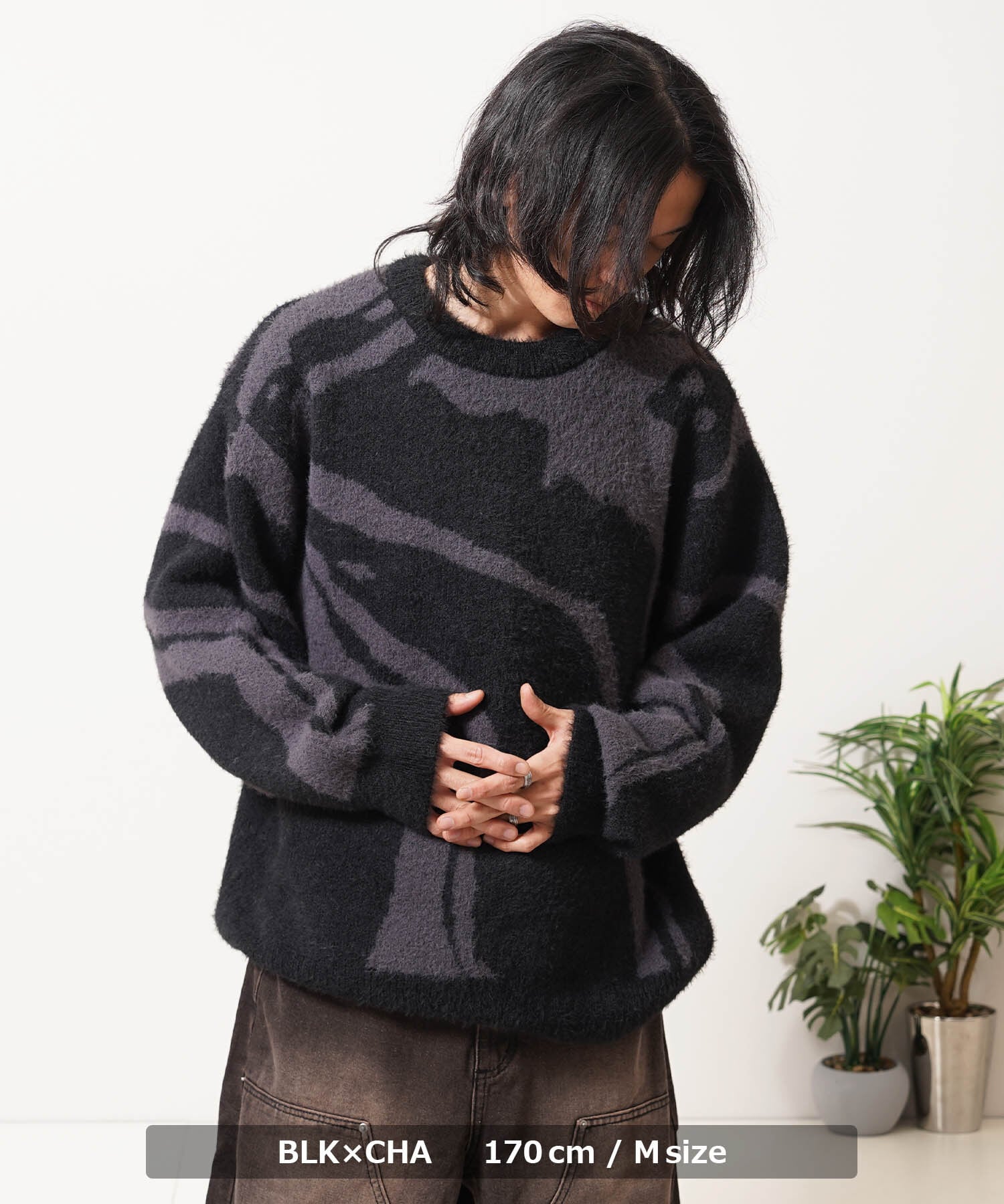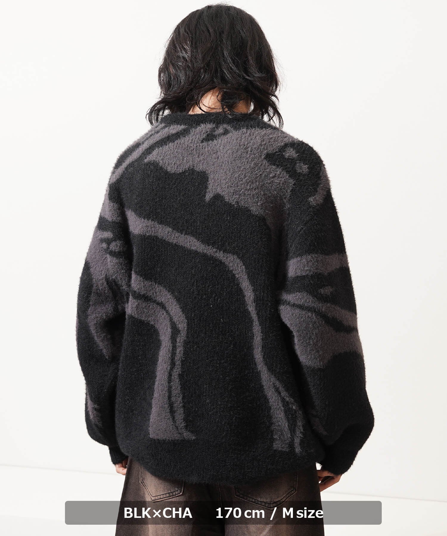 ニット セーター トップス 長袖 フェザー マーブル マーブル柄 総柄 メンズ レディース 新作 トレンド 秋 冬 秋服 冬服