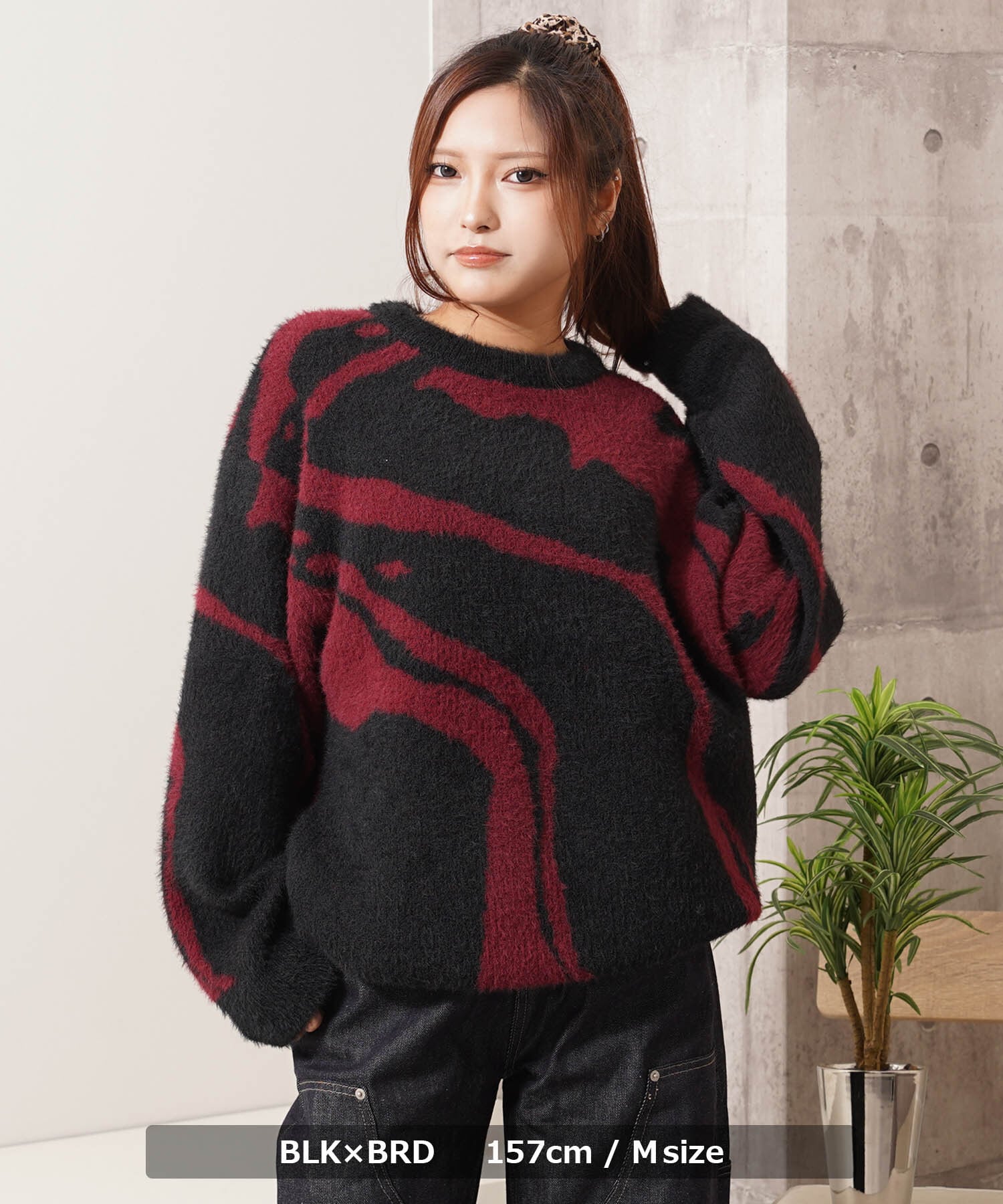 ◆マーブル柄 ルーズ フェザーニット◆si-10060725
