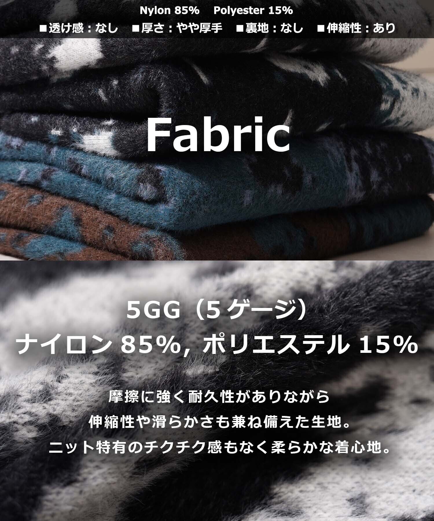 ジャカード編みの技法を使って編み込まれたデザインニットで、