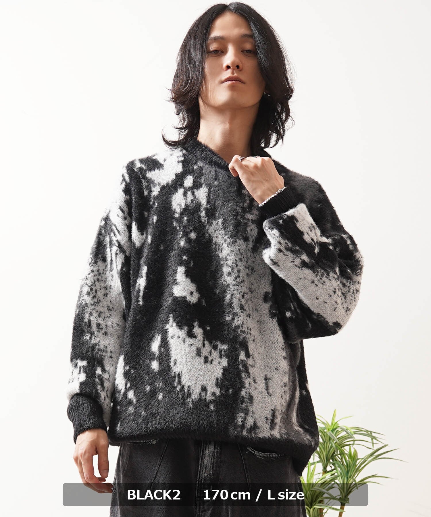 ◆アブストラクト柄 シャギーニット◆bl-808527