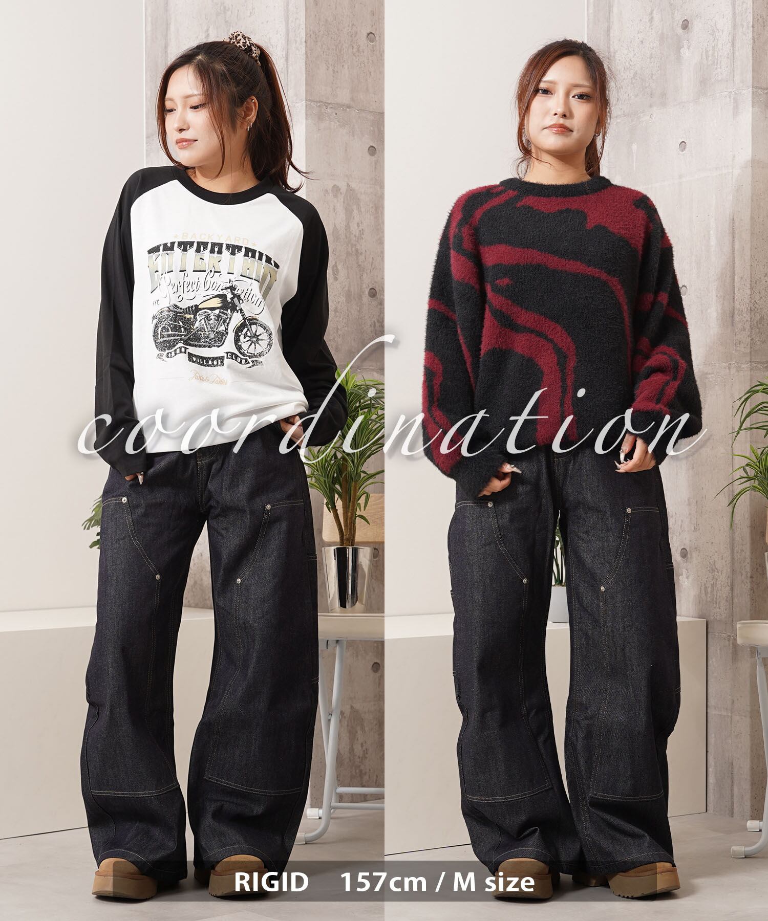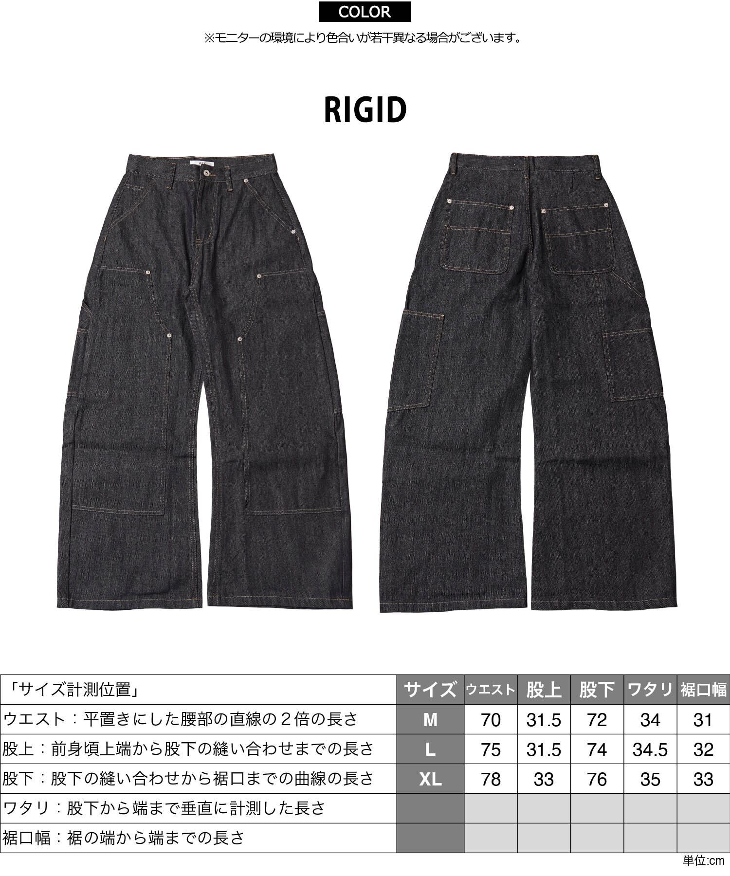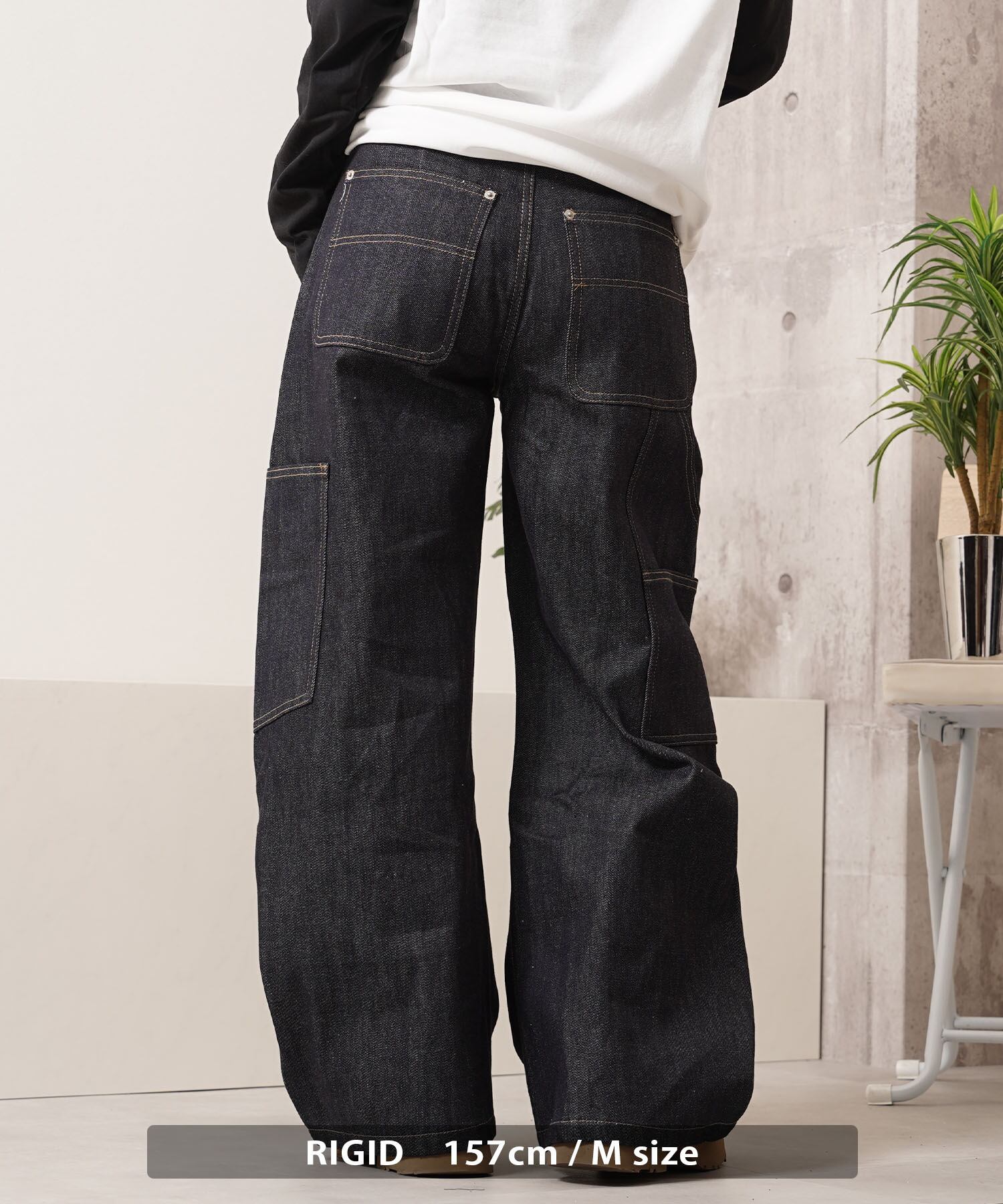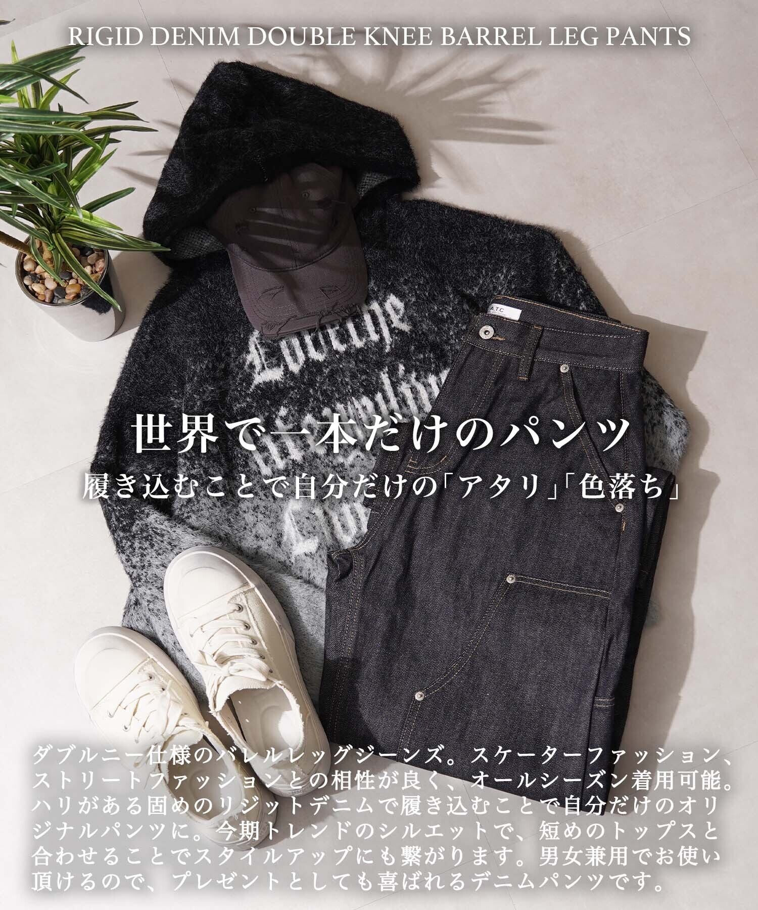 ダブルニー ワークパンツ リジット リジットデニム デニム ジーンズ バレルレック ワイドデニム バギーパンツ 太め ボトム ボトムス パンツ メンズ レディース 新作 トレンド オールシーズン インディゴ