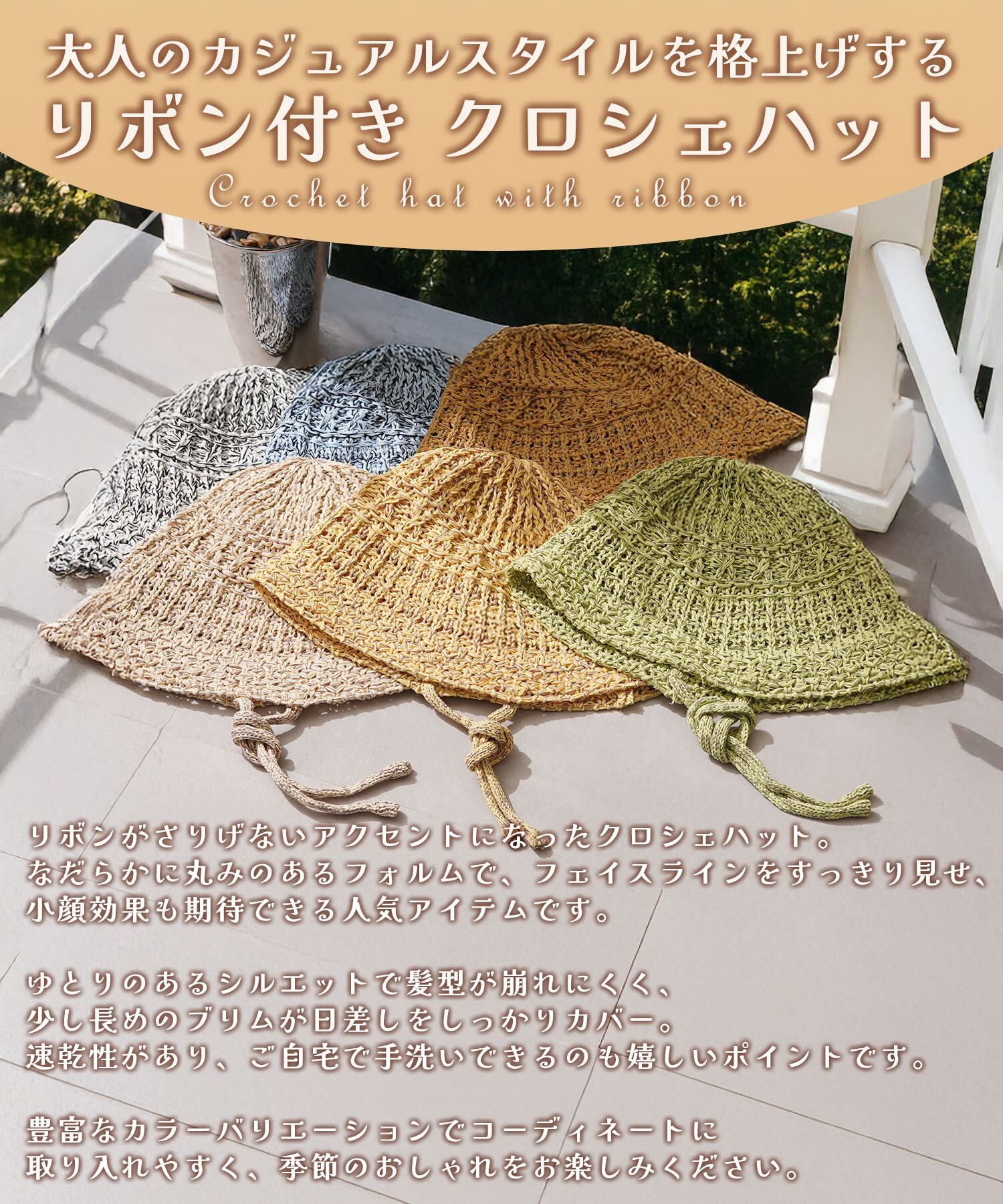 リボンがアクセントになったクロシェハット。