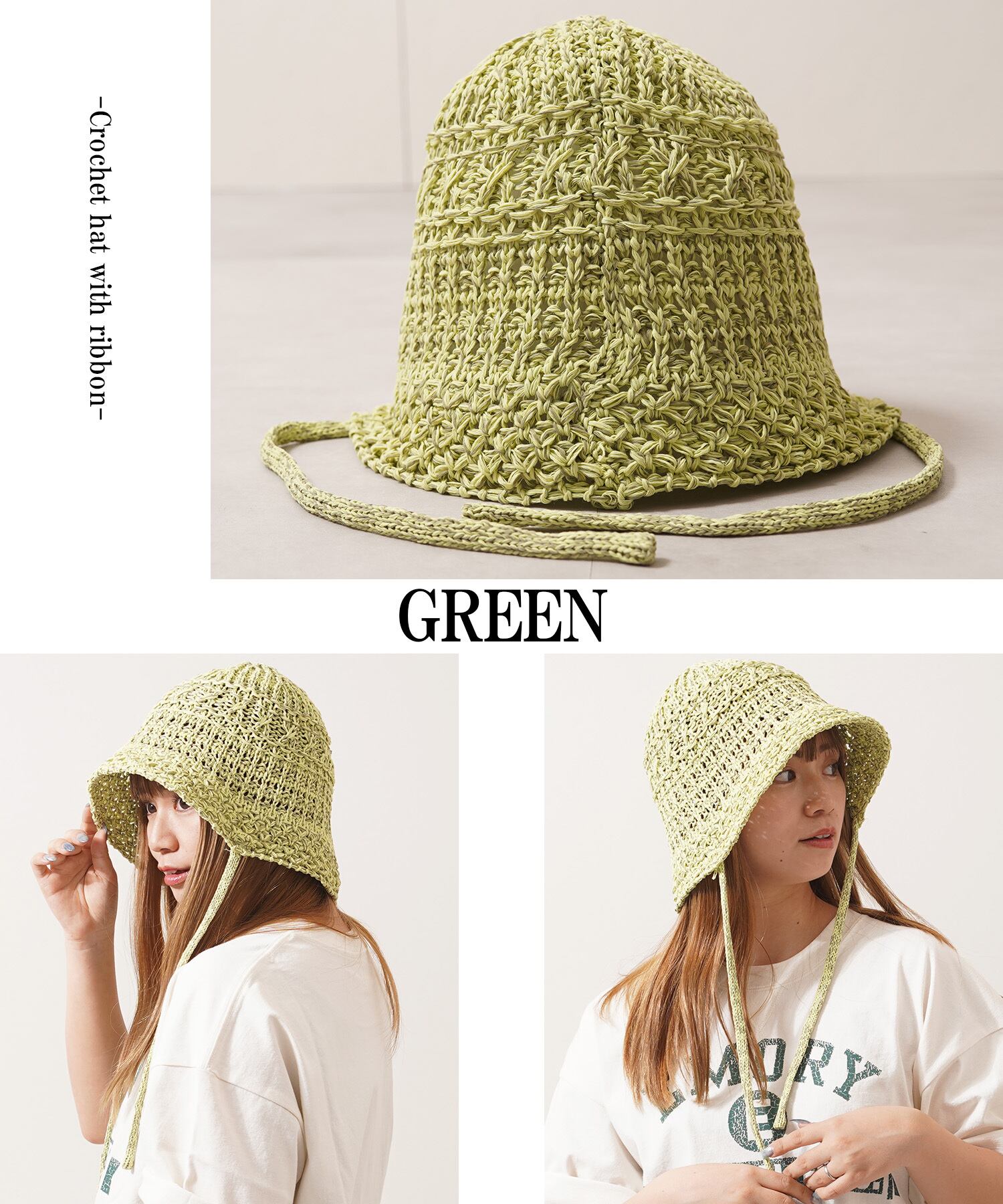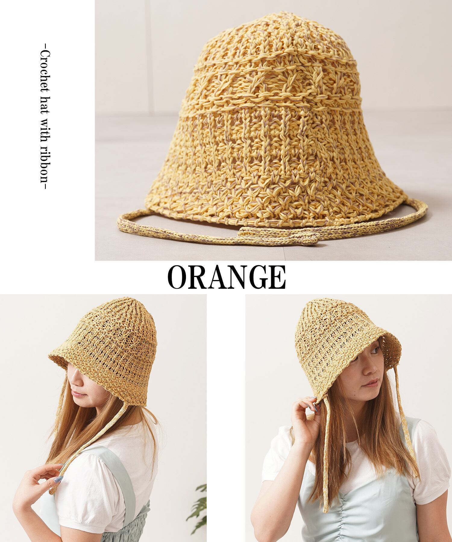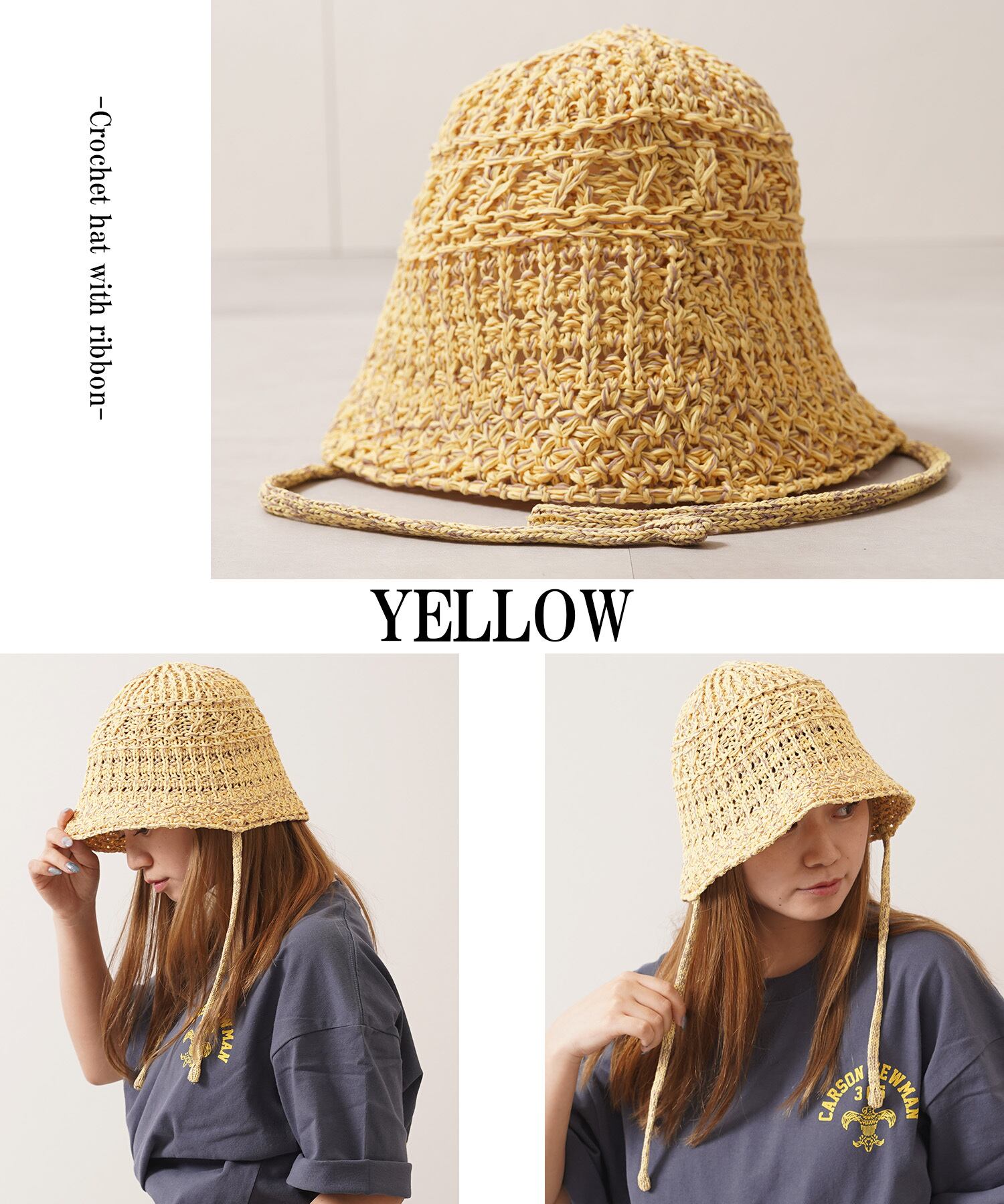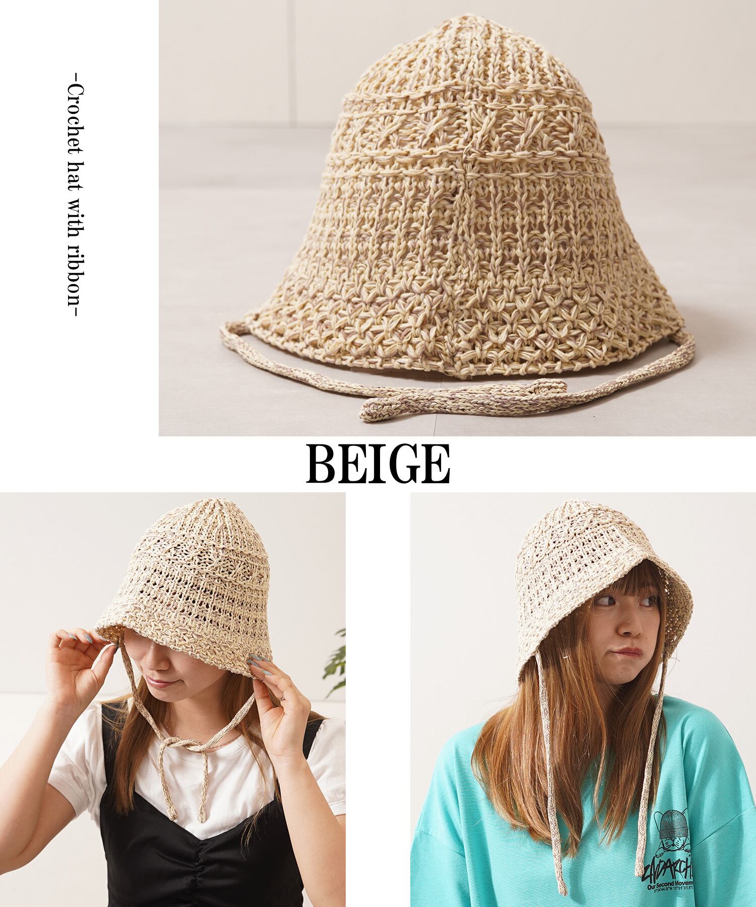 【1111clothing】Crochet hat with ribbon