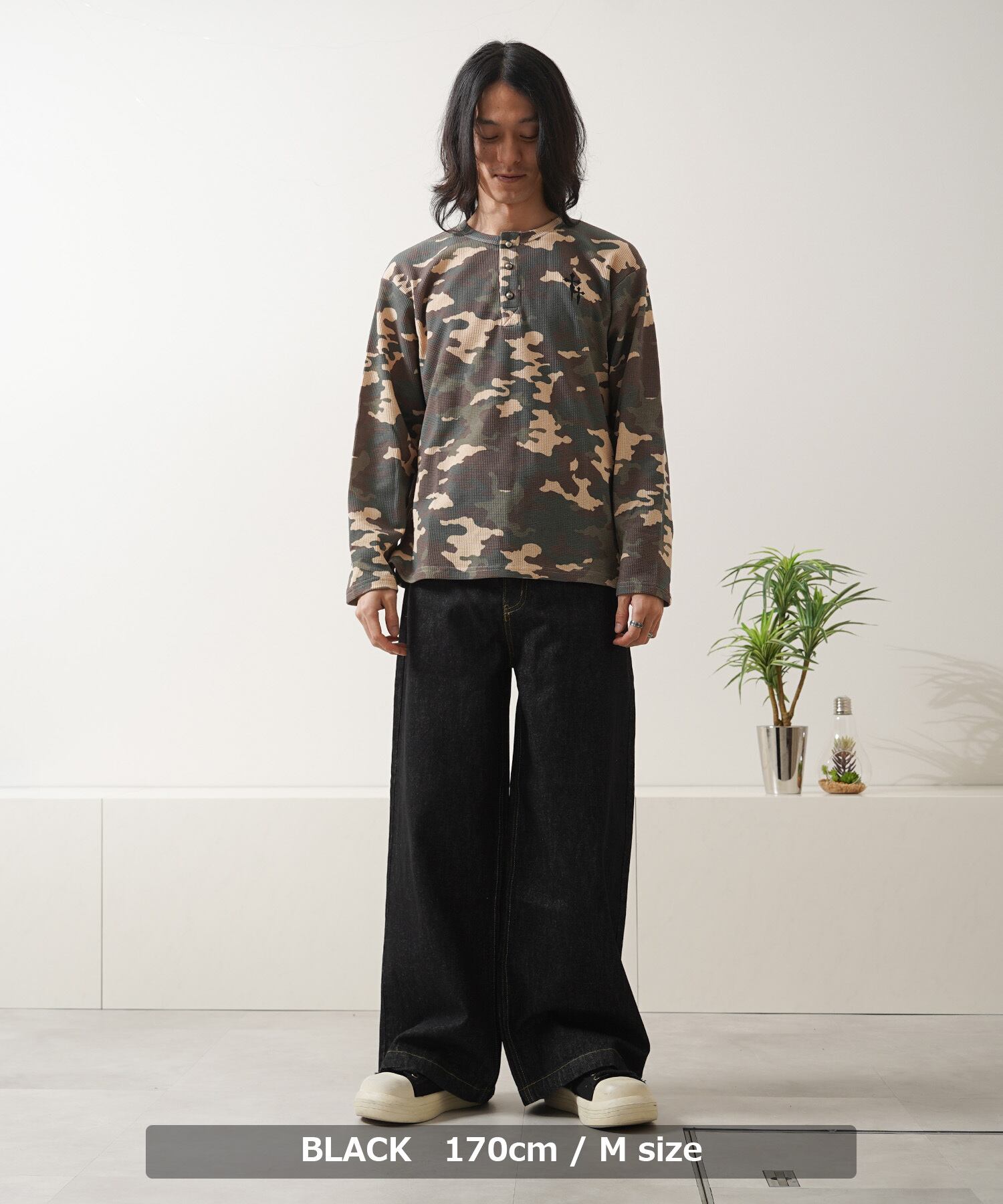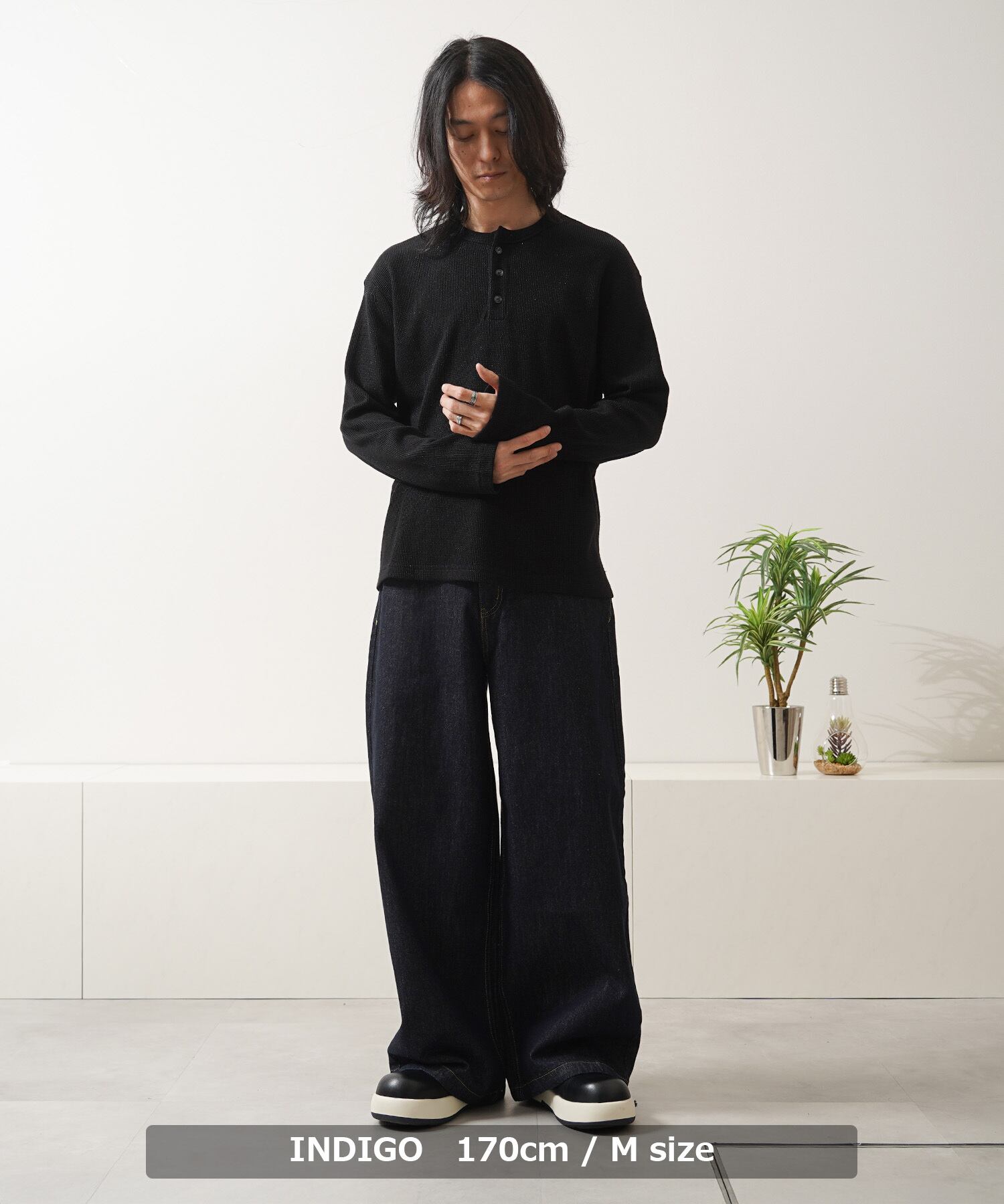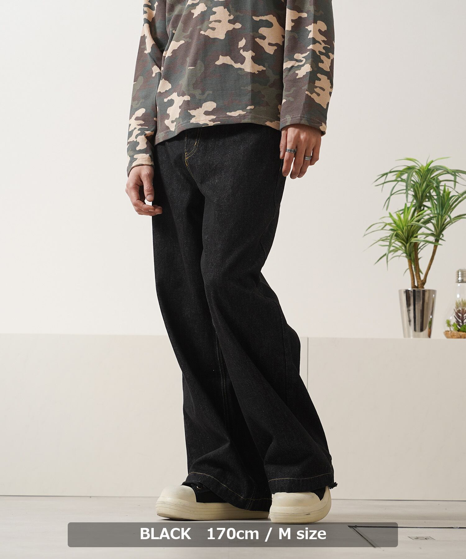 ストンと落ちたワイドストレートシルエットで、スタイルをすっきりと見せてくれます。