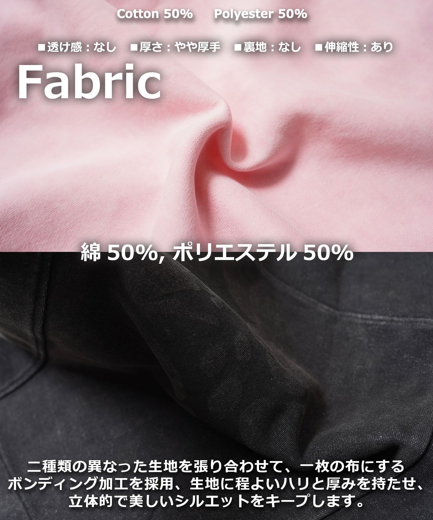 二種類の異なった生地を張り合わせて、一枚の布にするボンディング加工を採用、