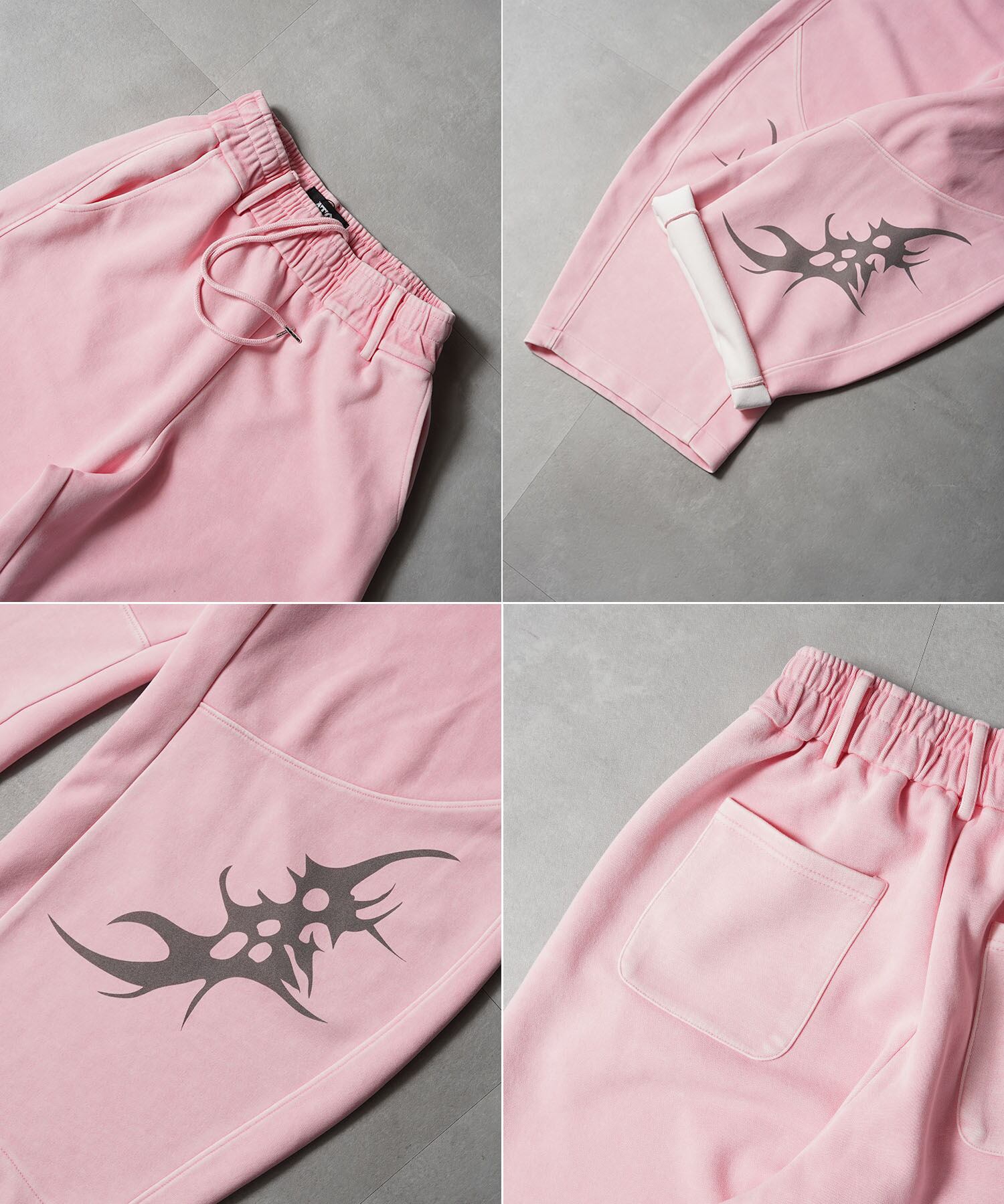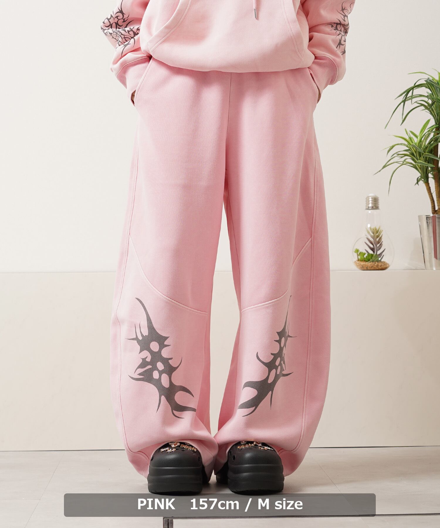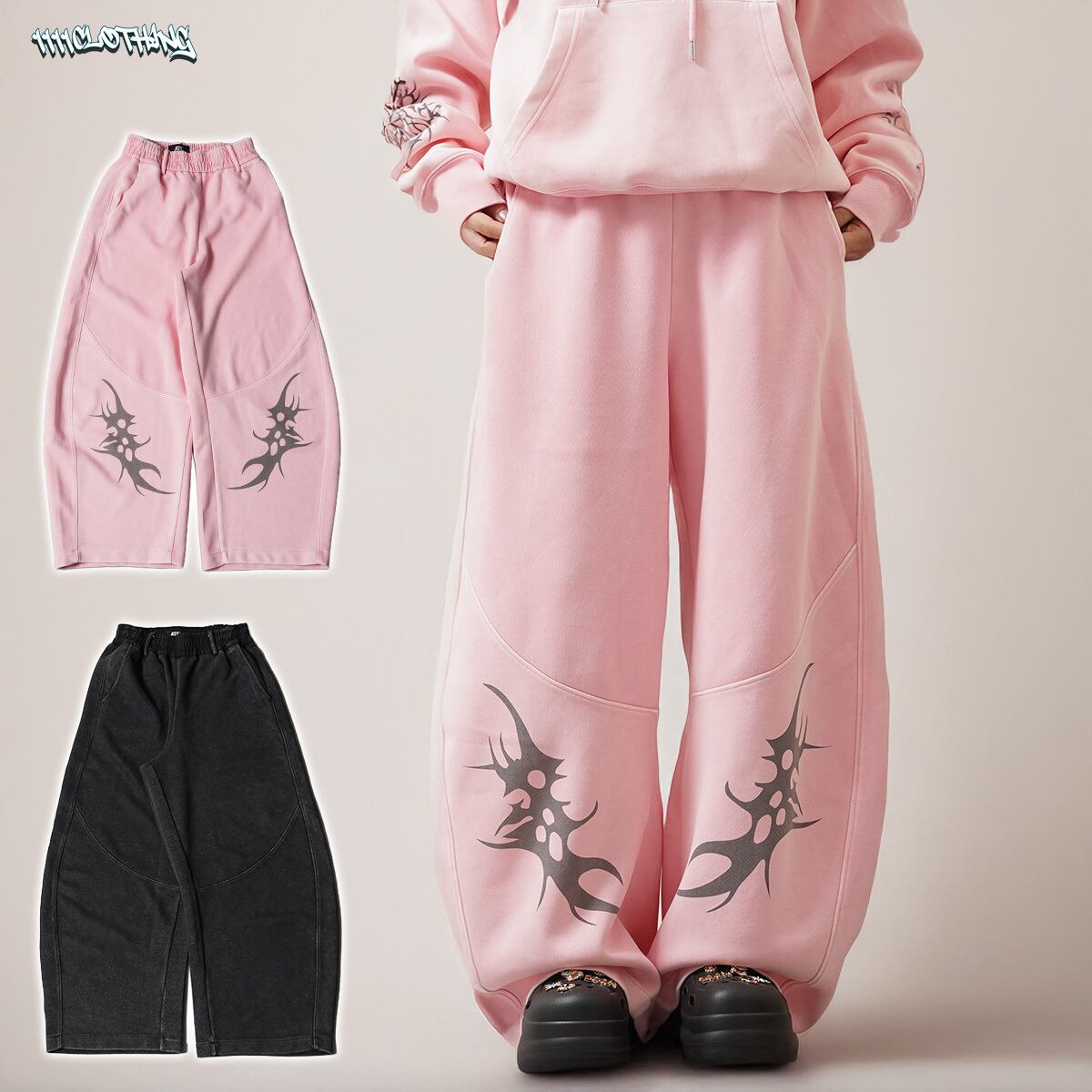 スウェット スエット スウェットパンツ スエットパンツ バレルレッグ パンツ カーブパンツ ワイドパンツ バギーパンツ 長ズボン プリント メンズ レディース ベルトループ 紐 新作 トレンド
