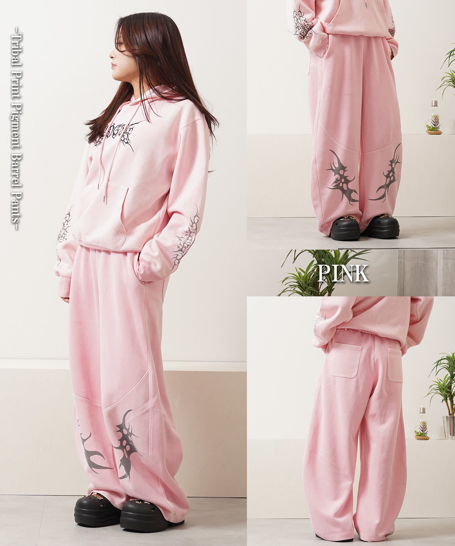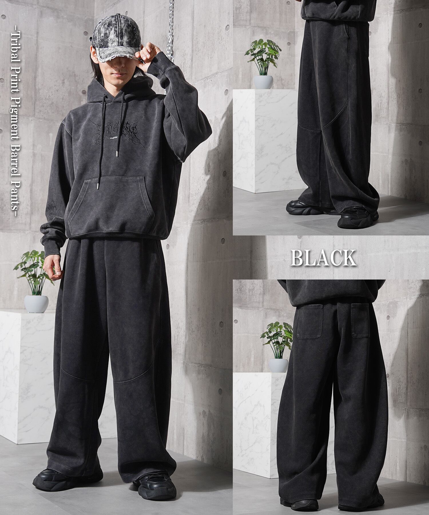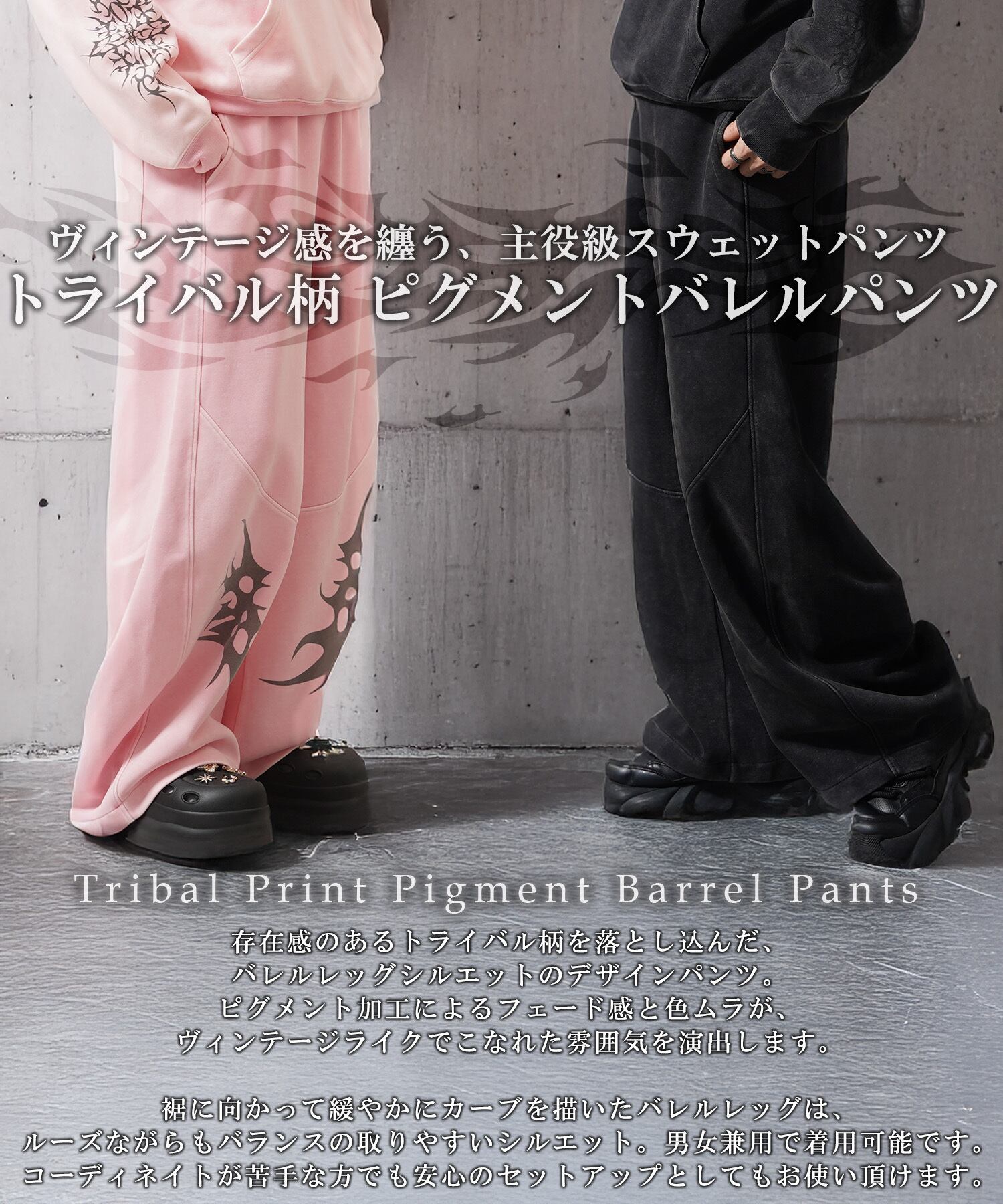 存在感のあるトライバル柄を落とし込んだ、バレルレッグシルエットのデザインパンツ。