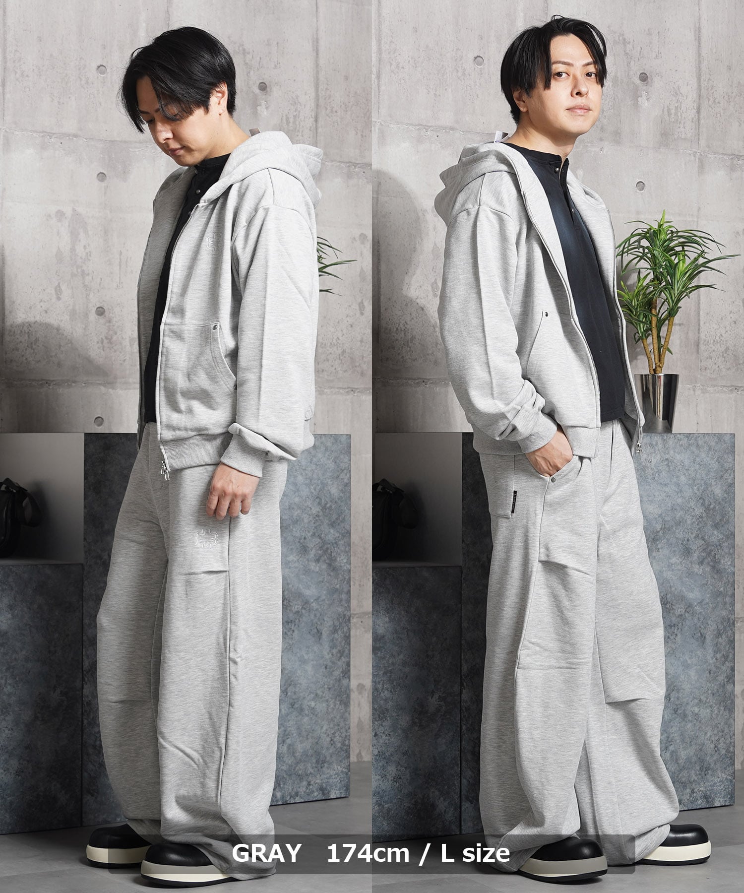 カラー展開: シックな「ブラック」、都会的な「グレー」、深みのある「ブラウン」の3色展開。セットアップはもちろん、単体でも主役級の存在感を放ちます。