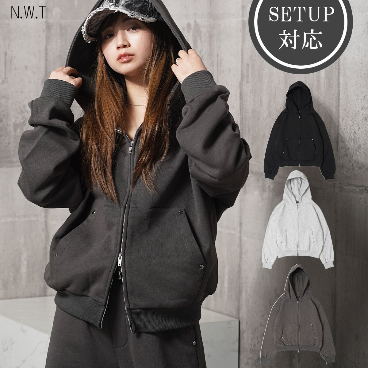 ◆【N.W.T】スタッズ ダブルジップパーカー / セットアップ対応◆nt-26001